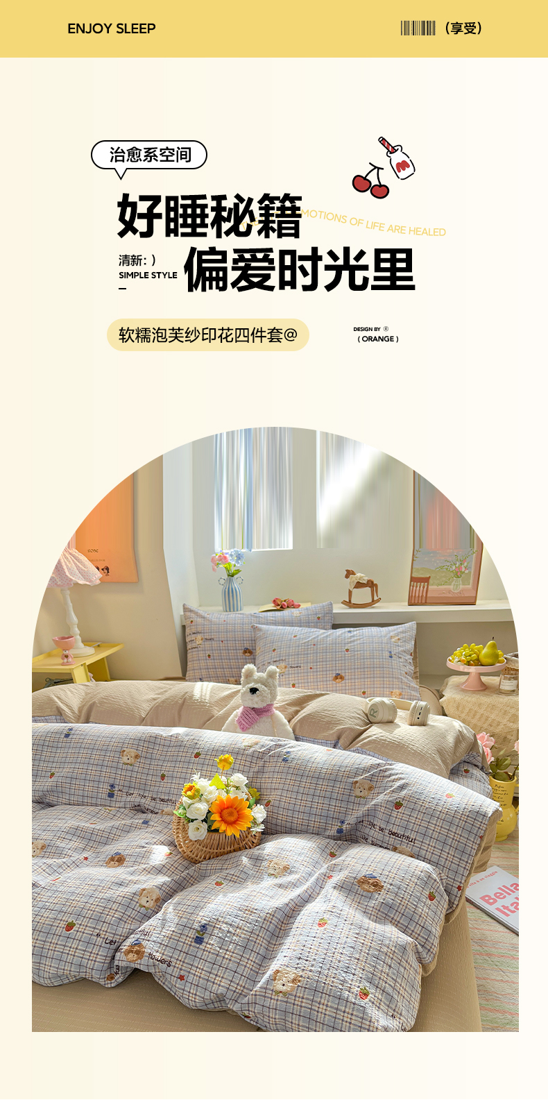 当前位置: 91家纺网 > 商品网购 > 床品套件 > 四件套 > 其它四件套 > 彩韵家纺 2026新款软糯泡芙纱印花四件套 狗狗乐园