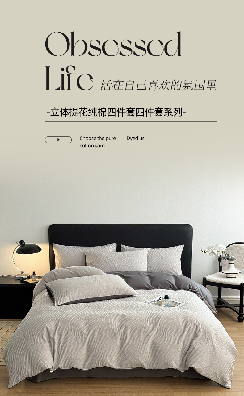 (总)简宜家居(朝初家纺) 2026新款60立体提花全棉四件套,灰绿肌理,可可肌理,鎏金棕韵,烟墨波纹
