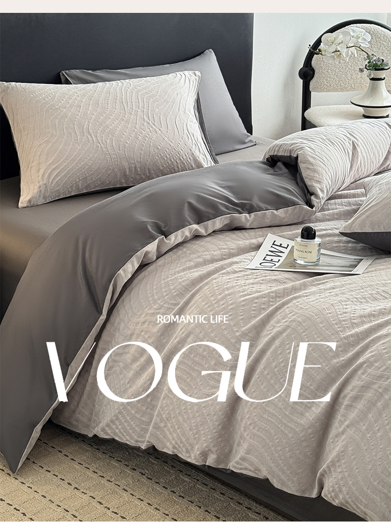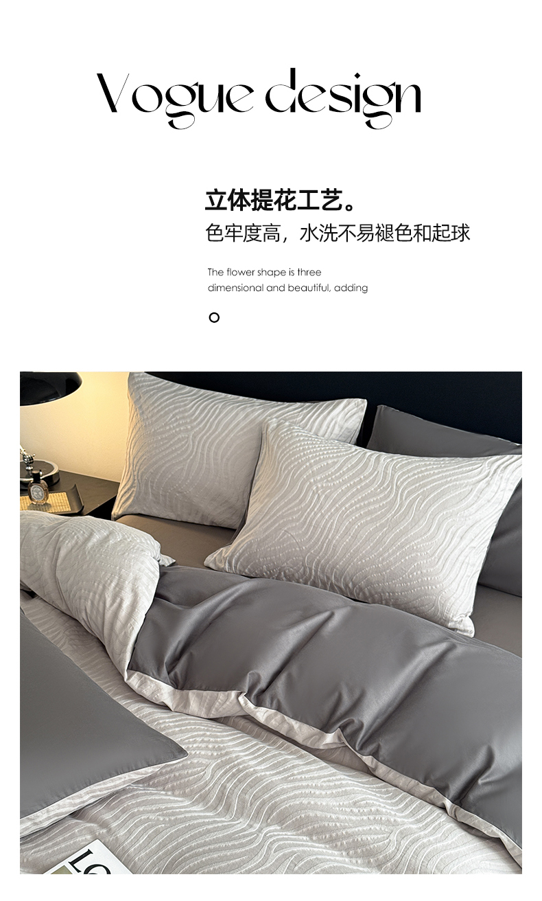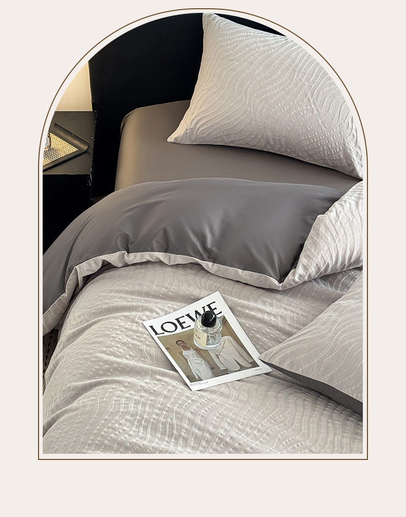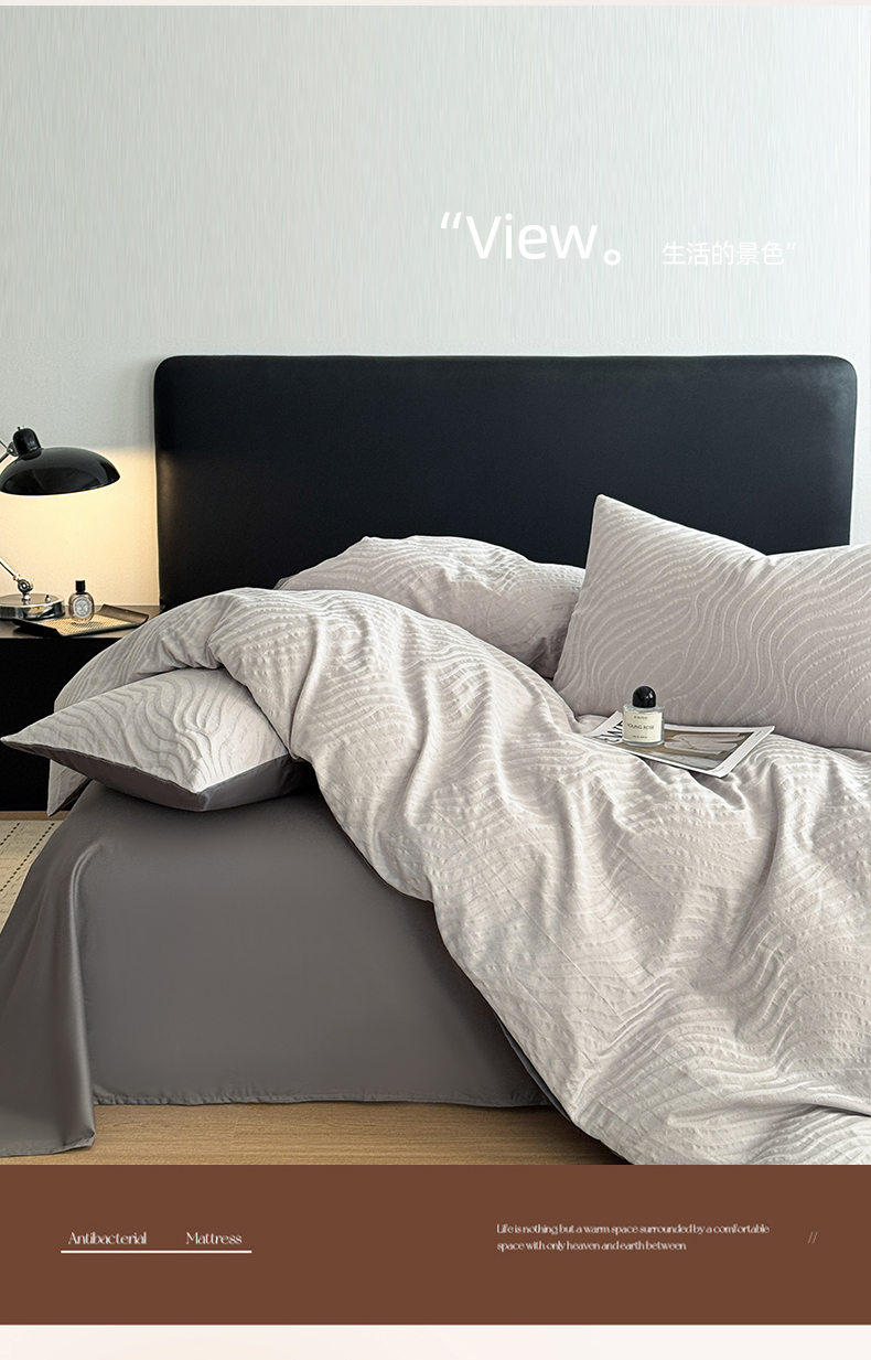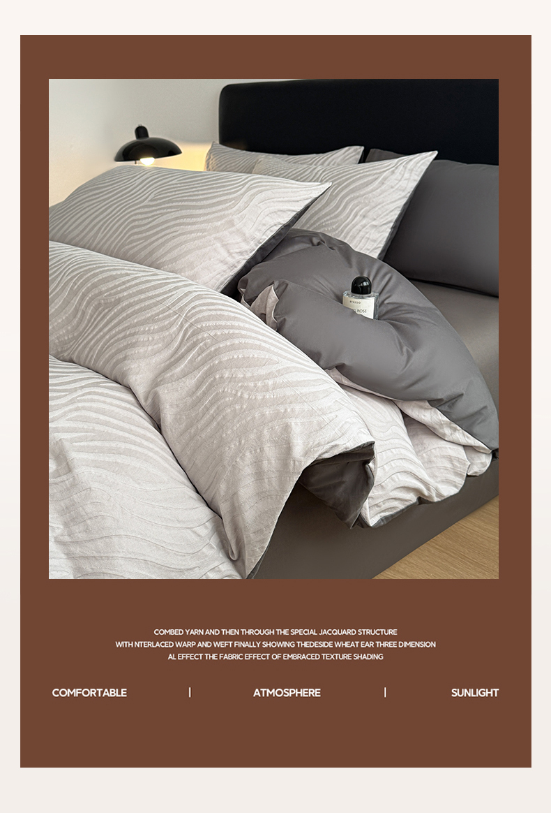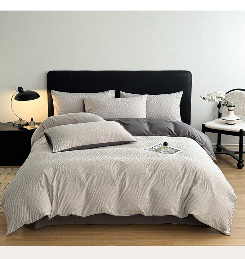 简宜家居(朝初家纺) 2026新款60立体提花全棉四件套 烟墨波纹