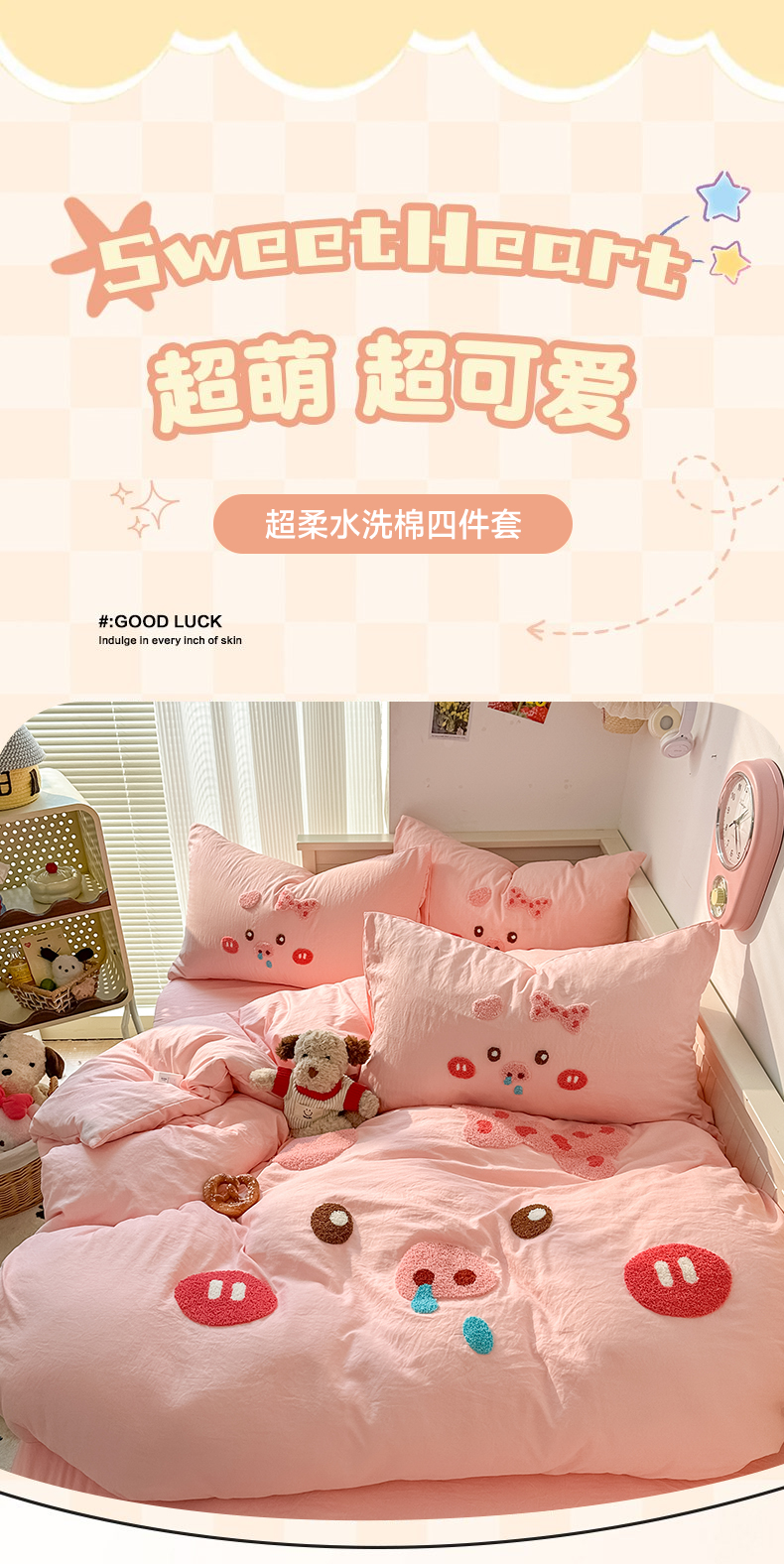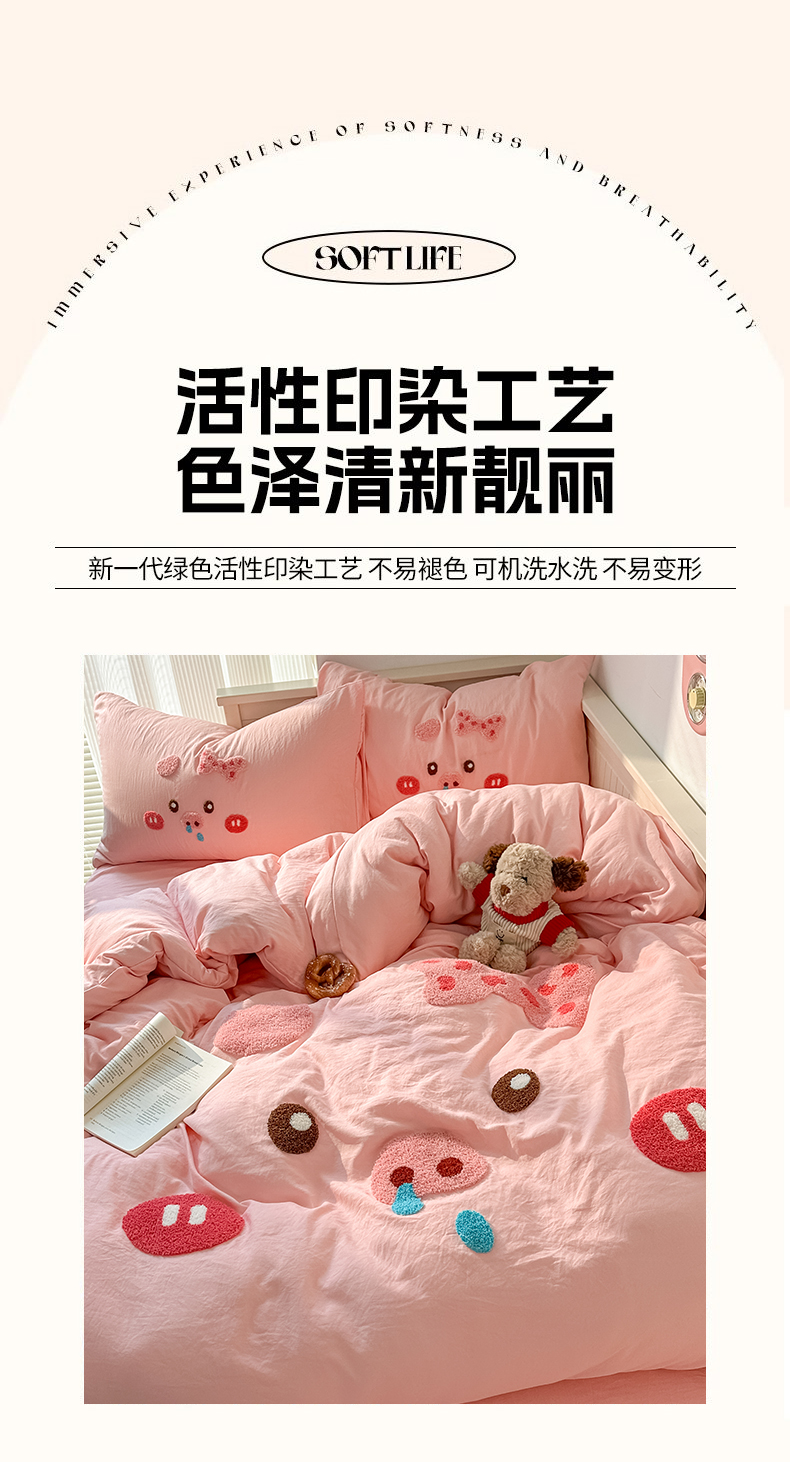 当前位置: 91家纺网 > 商品网购 > 床品套件 > 四件套 > 水洗棉四件套 > 易辰美 2026春夏新款超柔水洗棉四件套 流涕猪-玉