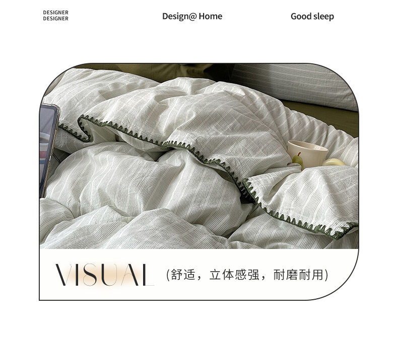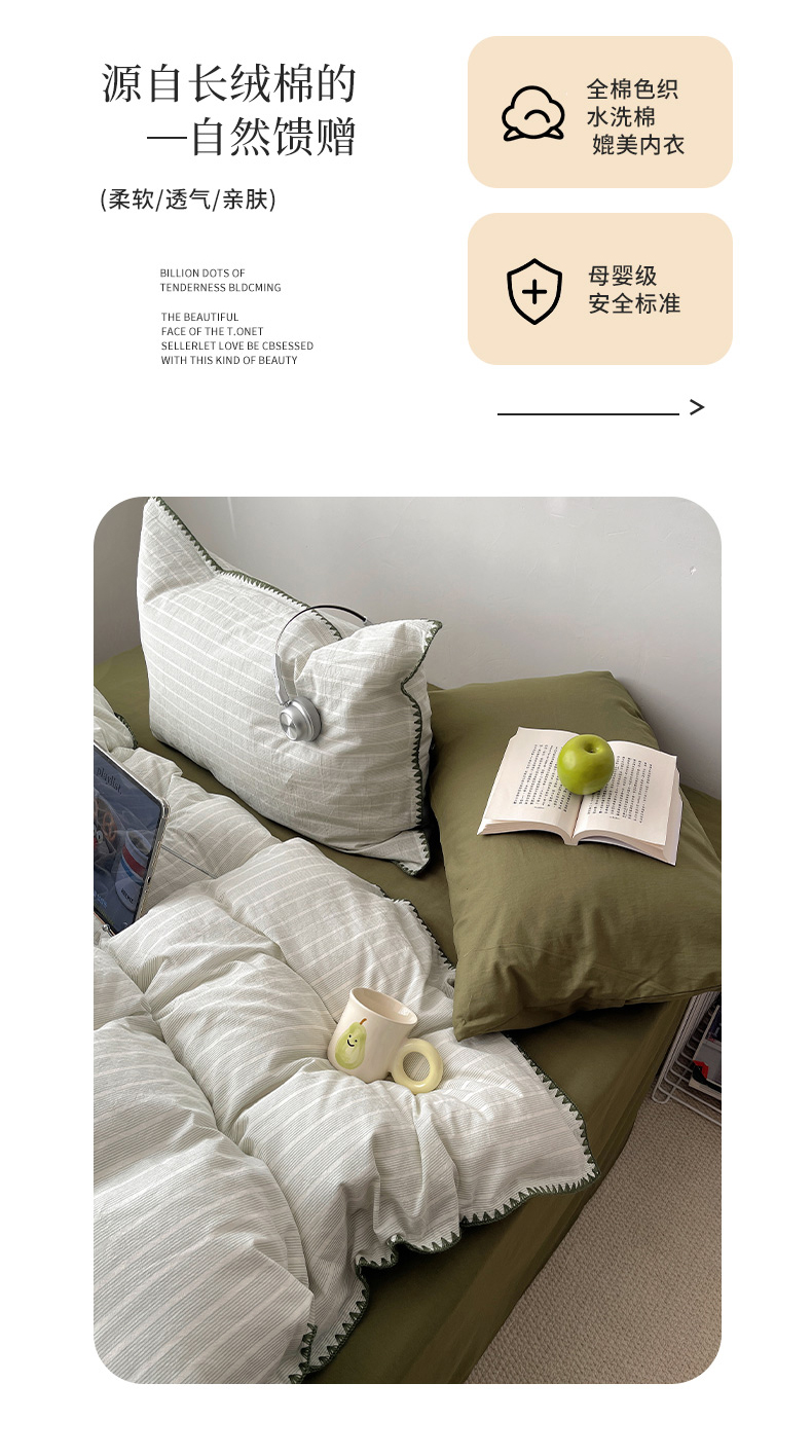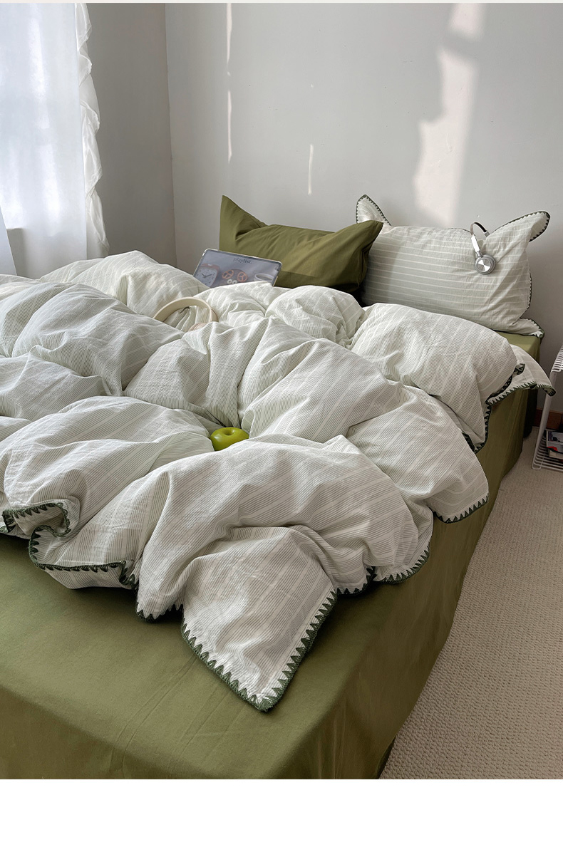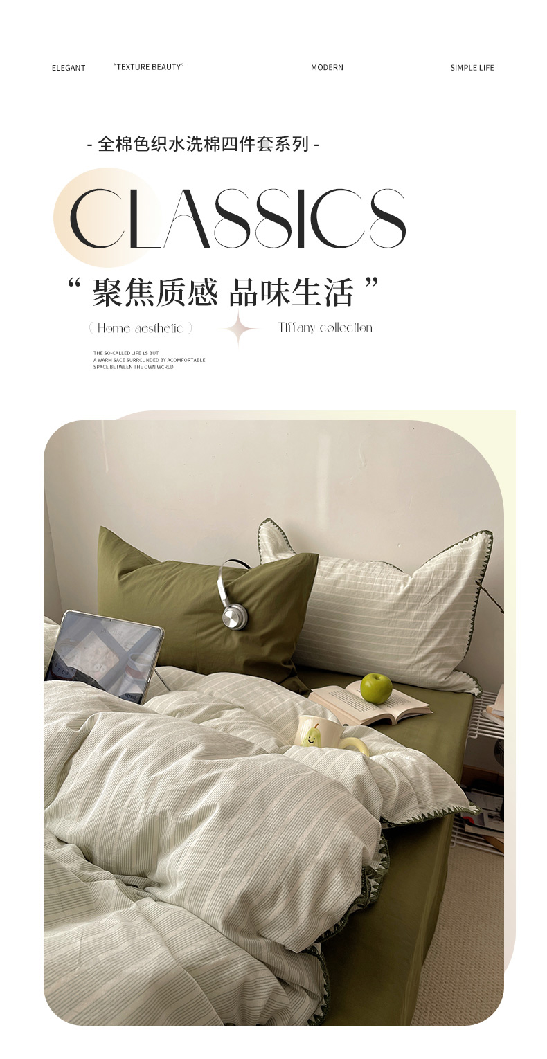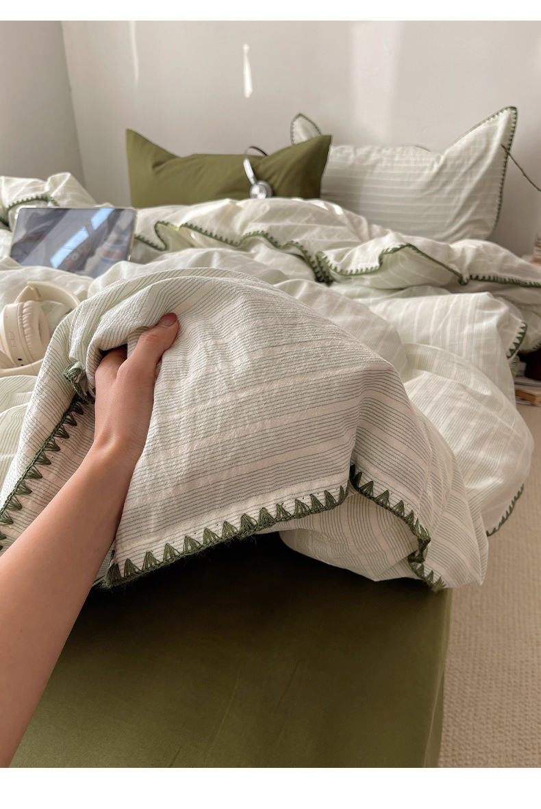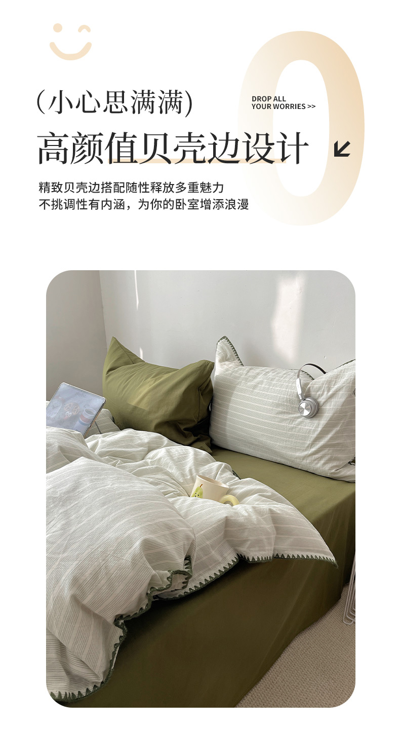 当前位置: 91家纺网 > 商品网购 > 床品套件 > 四件套 > 全棉普通四件套 > 瑞莱 2026年新款全棉纯棉水洗棉贝壳边四件套 岸屿青芒