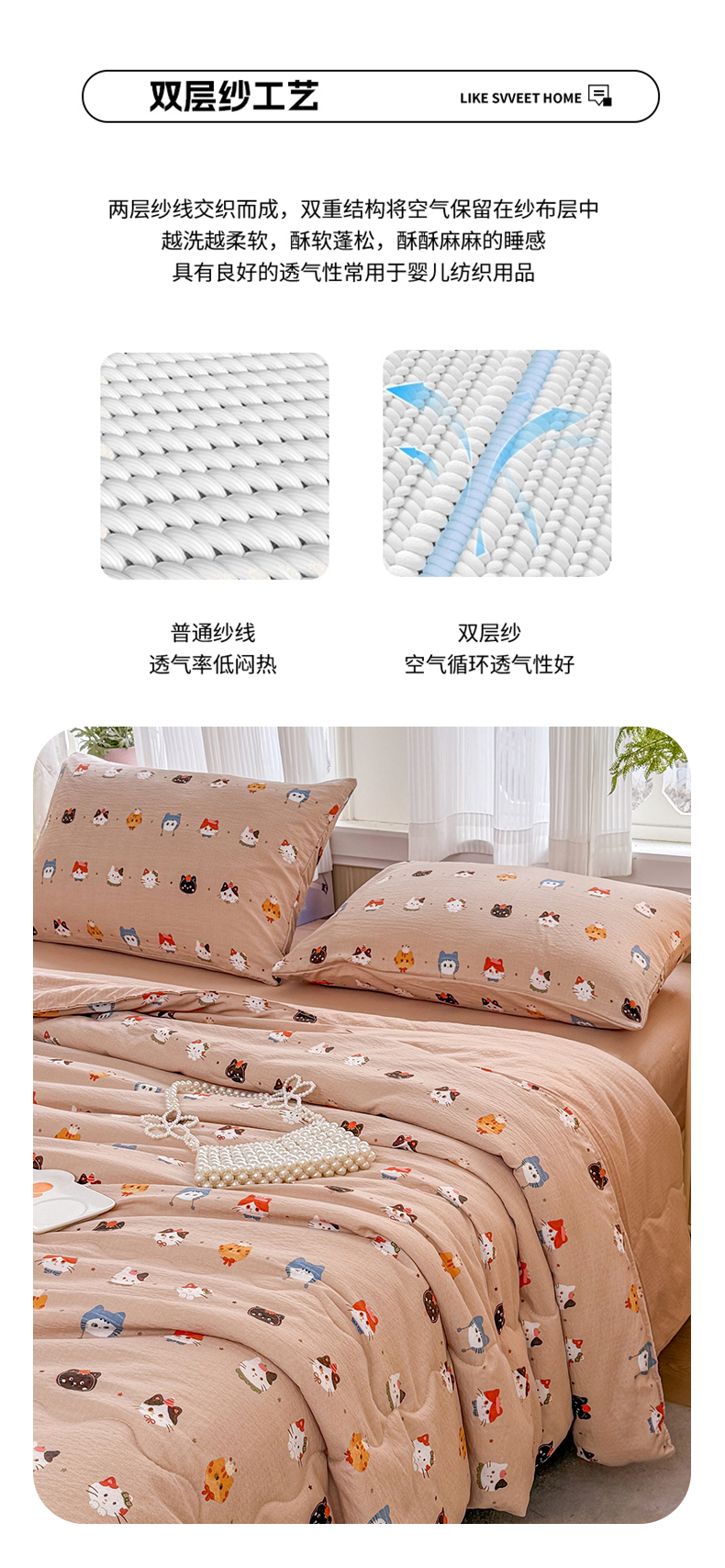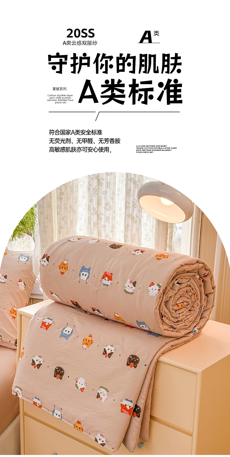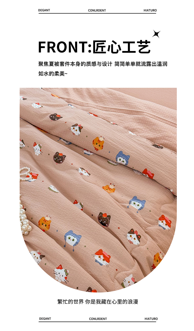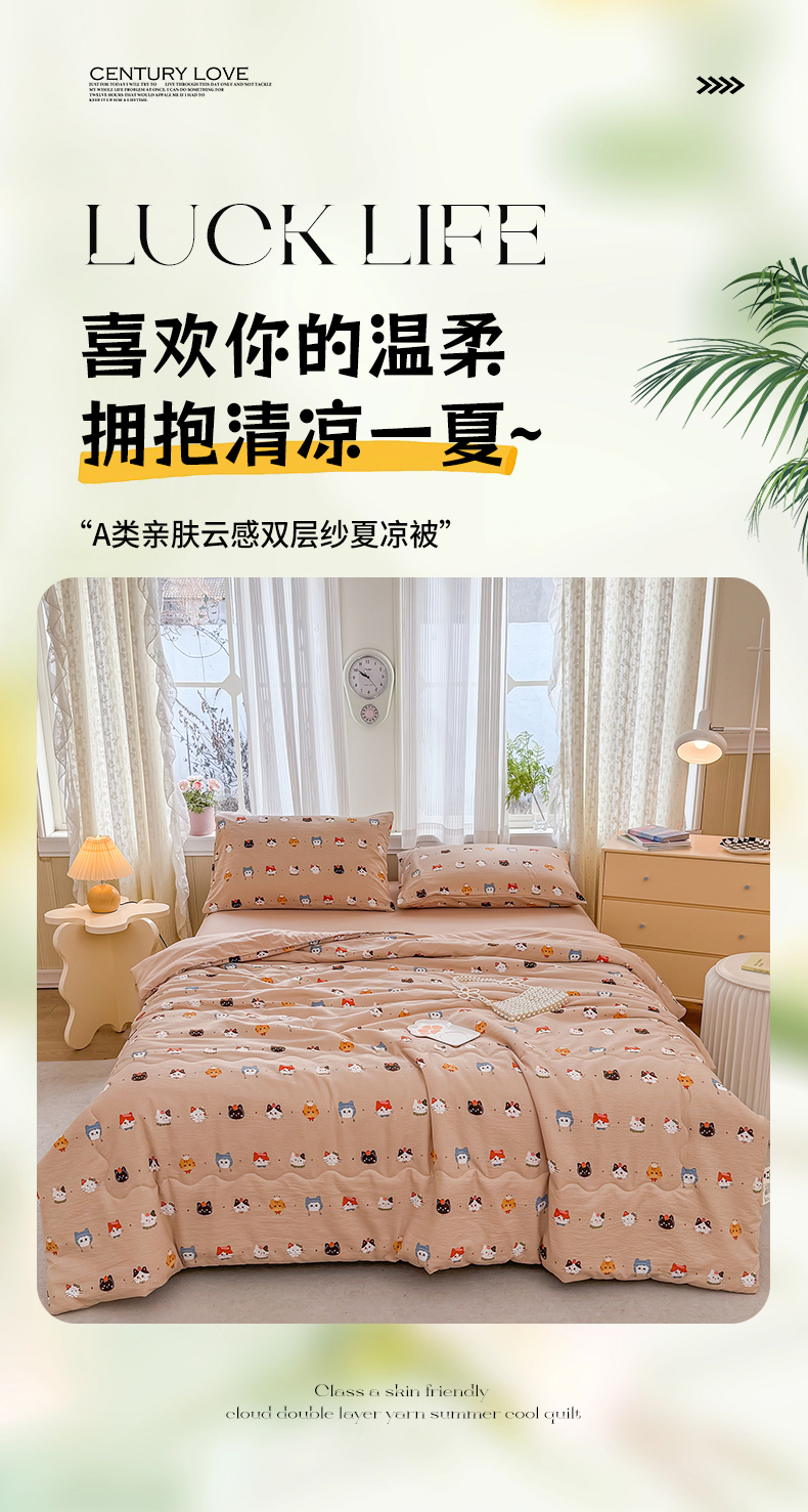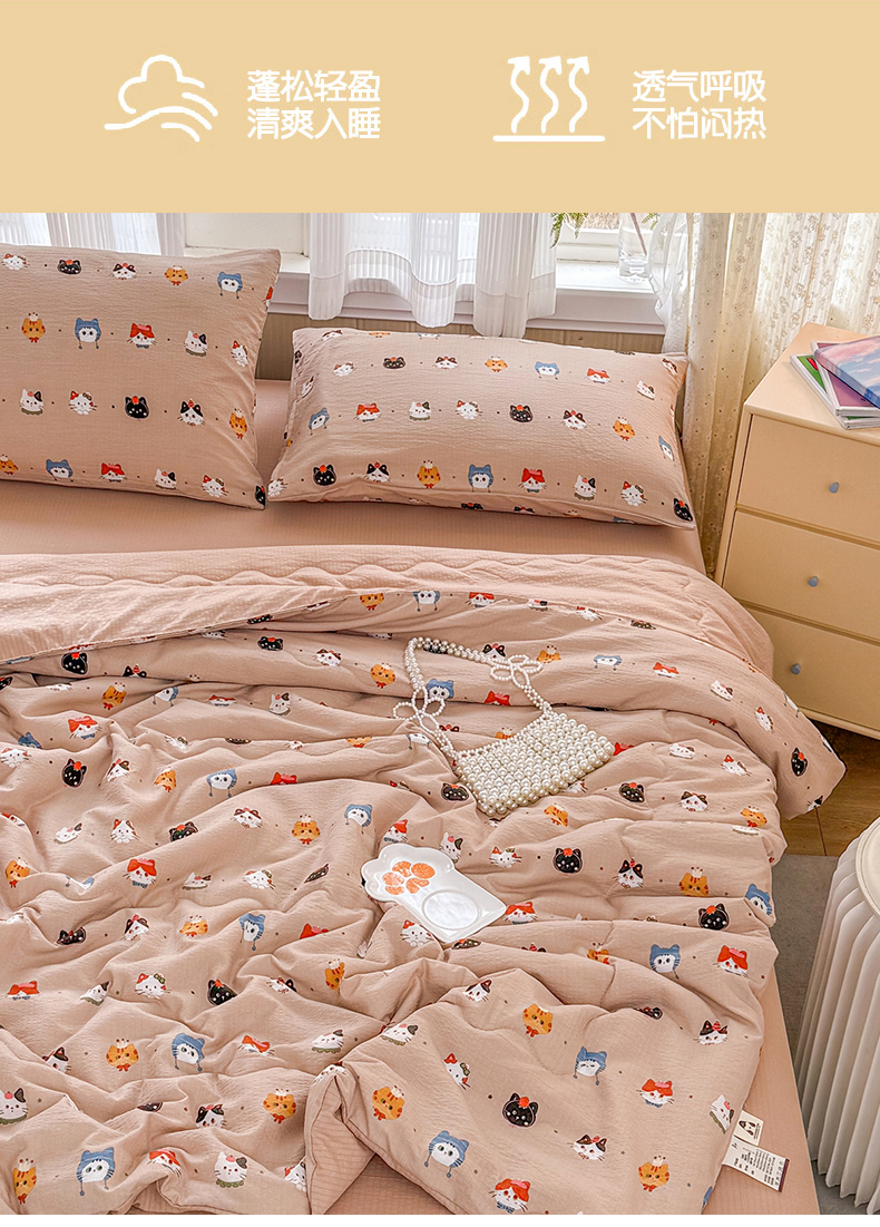 商品名称:艺菲阁家纺 2026新款云感双层纱夏被夏凉被空调被 萌猫来袭