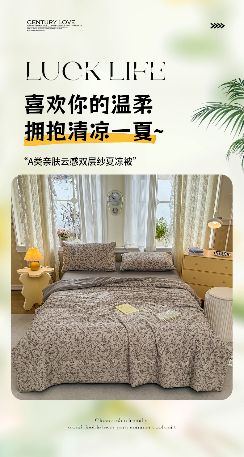(总)艺菲阁家纺 2025新款花边款小碎花A类云感双层纱夏被,春风十里,海像深林,偏偏宠爱,倾心-米,人间草木,森田野园,相思-粉,相思-蓝