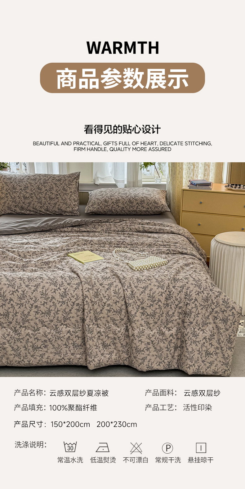 艺菲阁家纺 2026新款云感双层纱夏被夏凉被空调被 竹歆花语