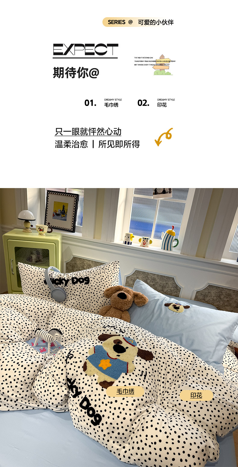 当前位置: 91家纺网 > 商品网购 > 床品套件 > 四件套 > 全棉普通四件套 > 怡家居 2026新款全棉纯棉印花立体毛巾绣四件套 马上好运