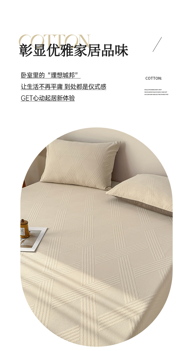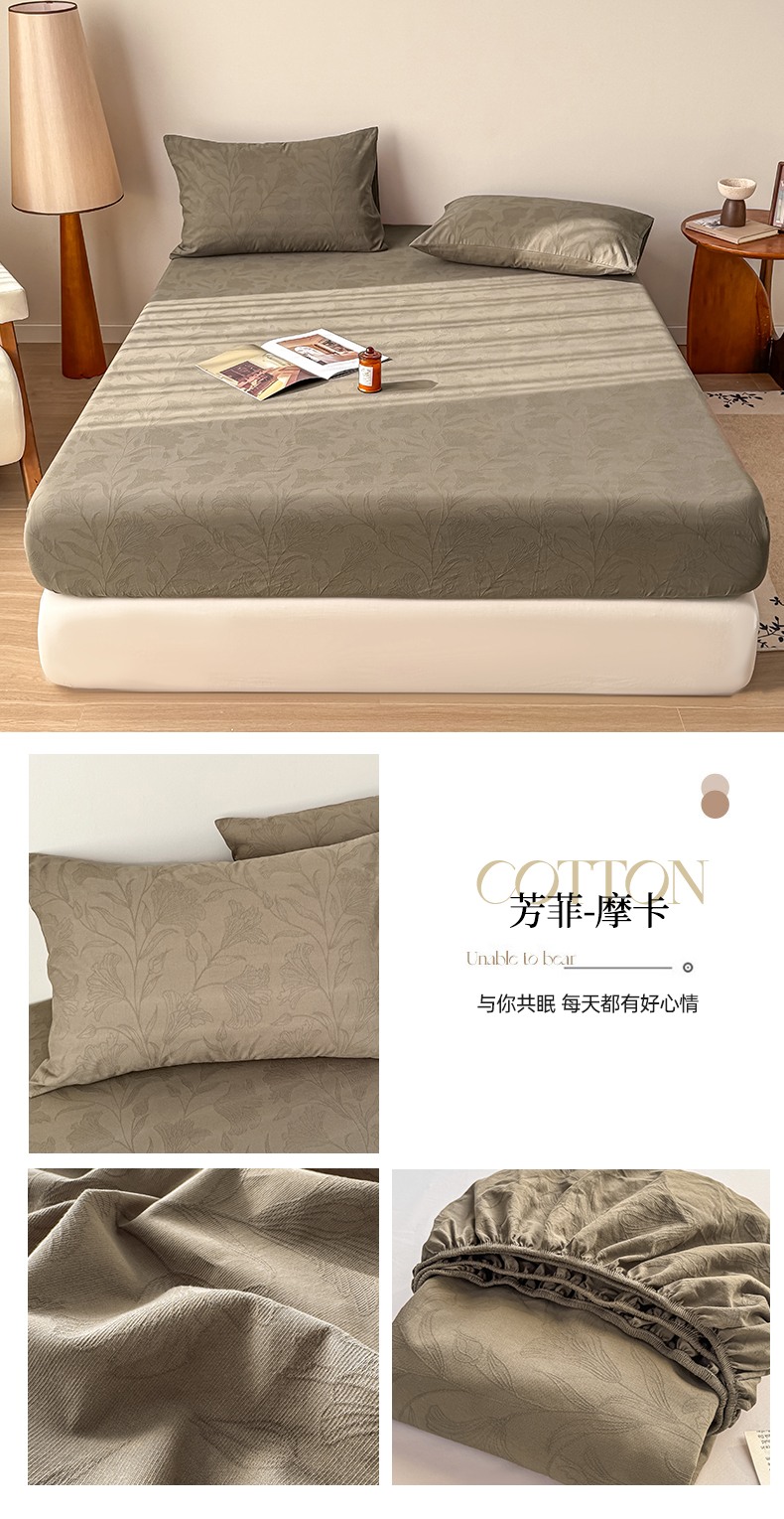 • 91家纺网 家纺一手货源 找家纺 灰鲸 2026新款全棉纯棉厚织三层水洗色织提花床笠单品床笠床笠单件 维希-可可奶咖