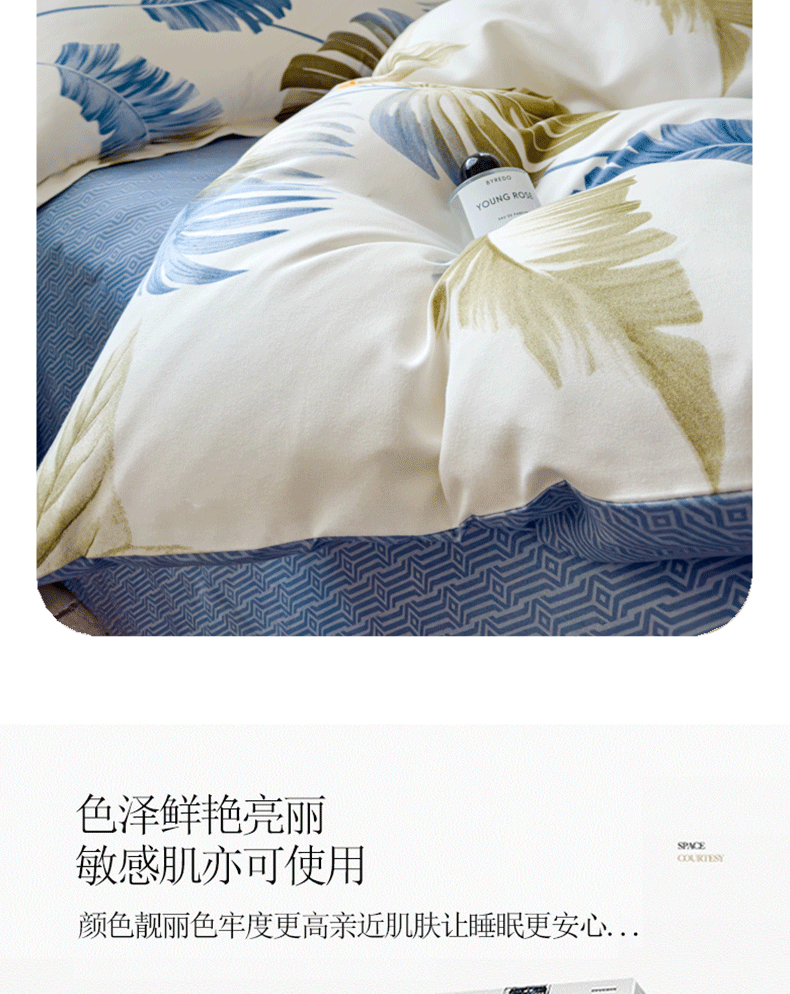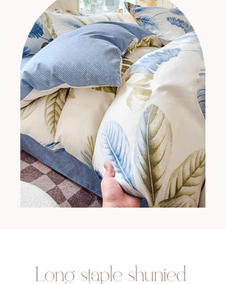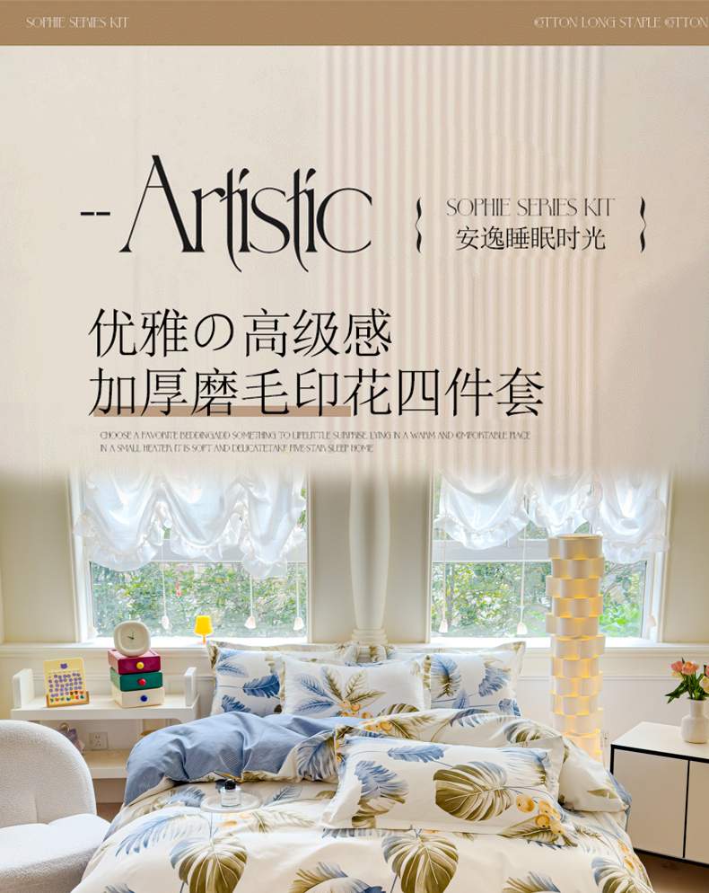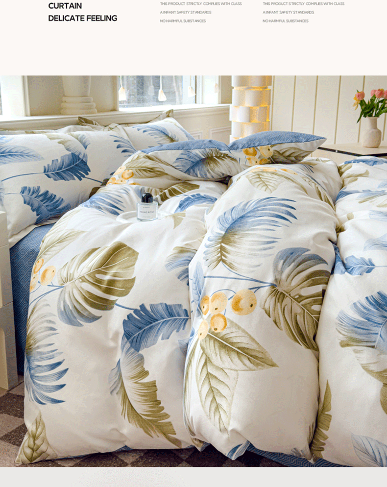 商品名称:佑佳2024新款140克磨毛印花植物羊绒四件套直播 千叶寻梦