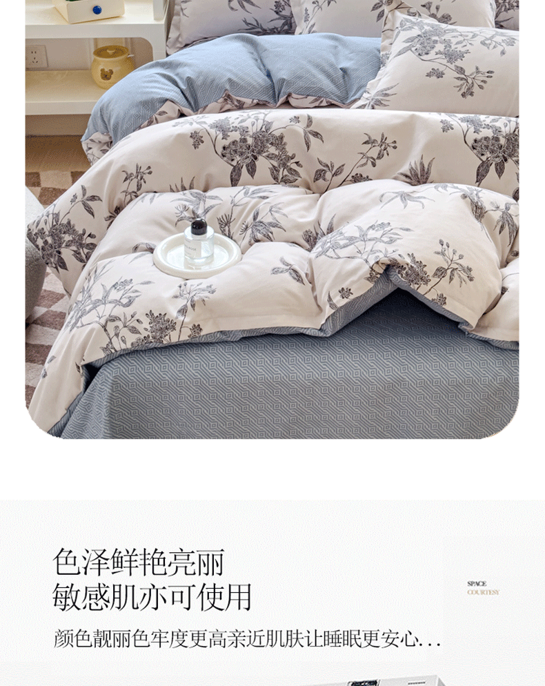 商品名称:佑佳家纺 2024新款磨毛印花植物羊绒单被套 朵朵华林
