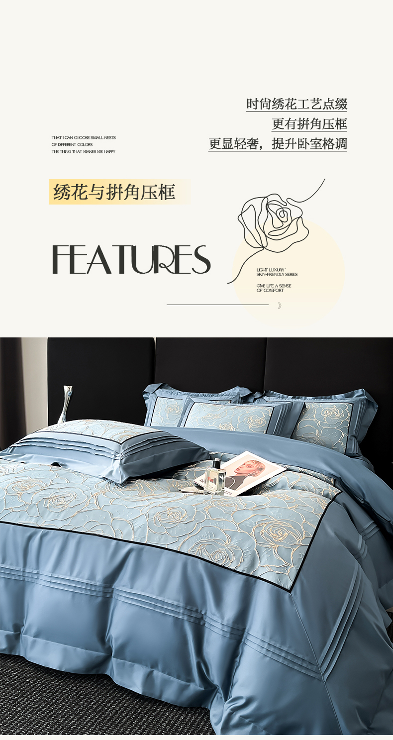 当前位置: 91家纺网 > 商品网购 > 床品套件 > 四件套 > 其它四件套 > (总)置顶家纺 2026新款亲肤棉玫瑰刺绣提花卡罗拉系列四件套