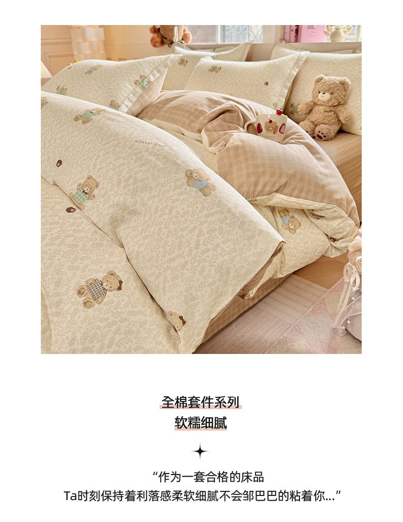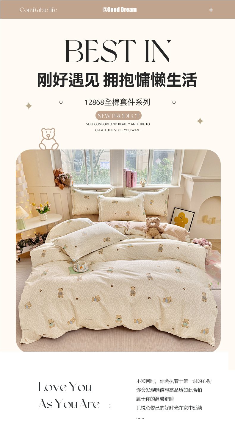 • 91家纺网 家纺一手货源 找家纺 简冠家纺 2026新款12868印花全棉单被套 布朗熊