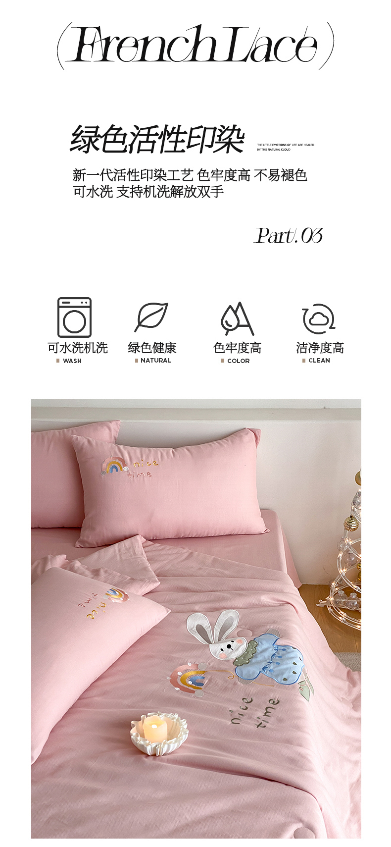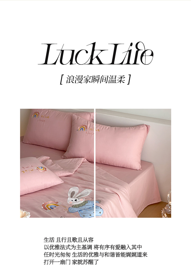 (总)鸣升家纺 2026新款全棉夏被双层纱贴布绣100%棉花夏被四件套,彩虹兔兔-粉,彩虹小熊-卡其,快乐企鹅-灰,蘑菇小兔-咖,熊熊乐园-绿,月牙兔兔-水绿,组合图