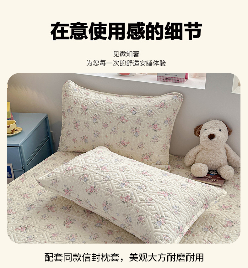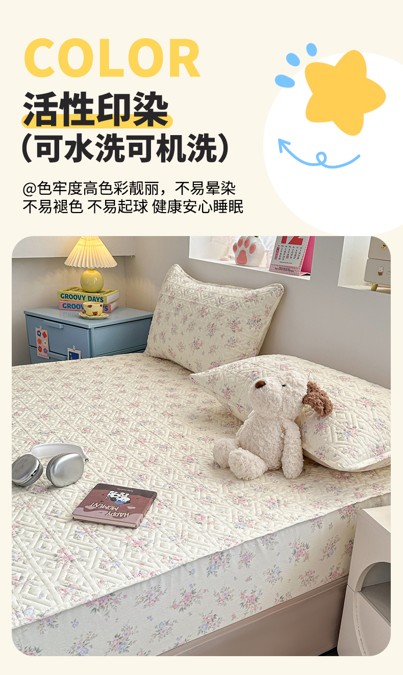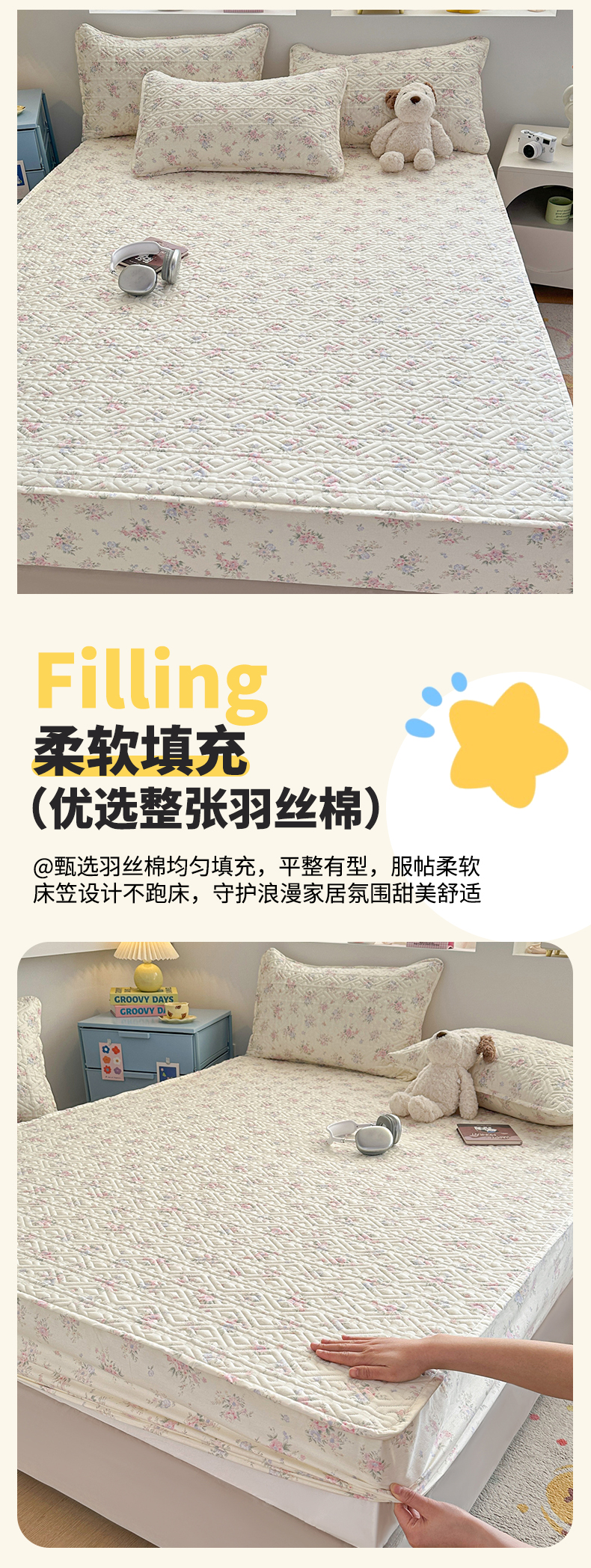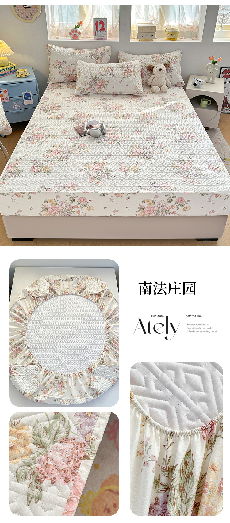 商品名称:忘忧草 2026新款清新简约全棉印花夹棉床笠 欧风花影