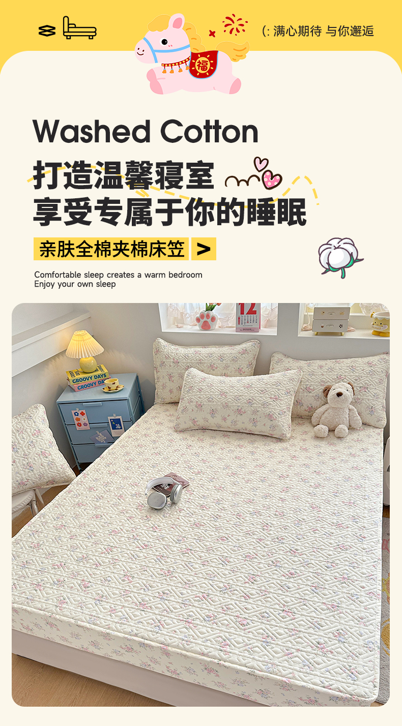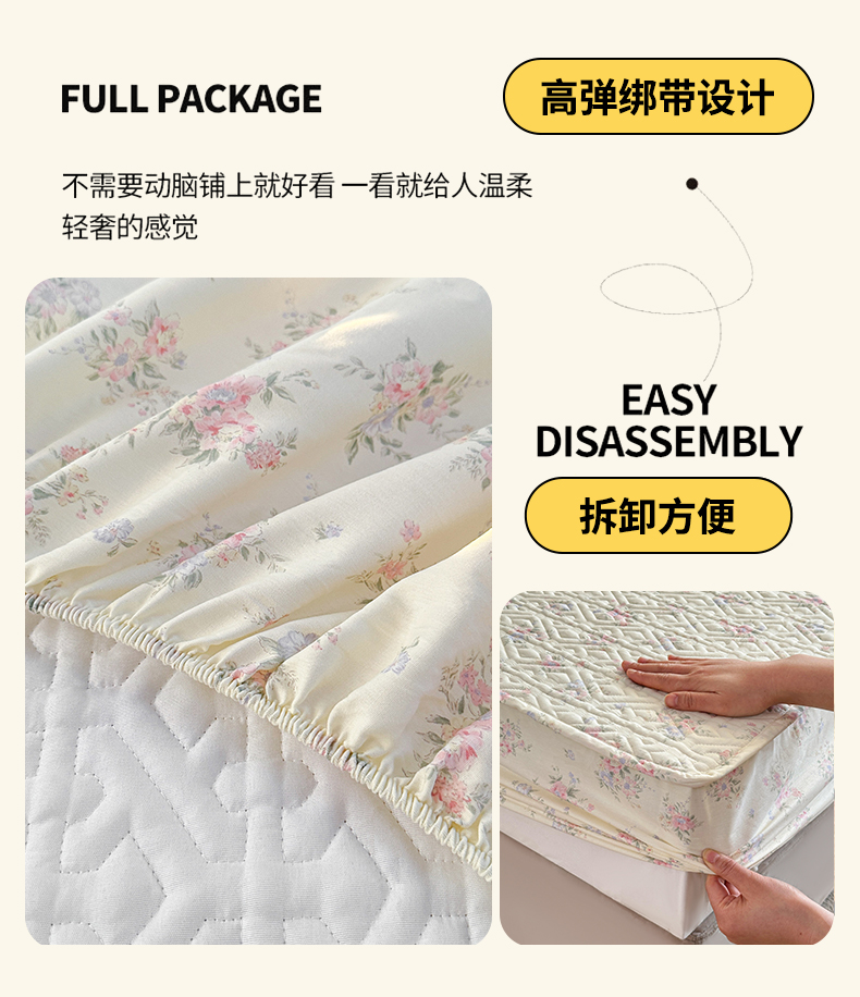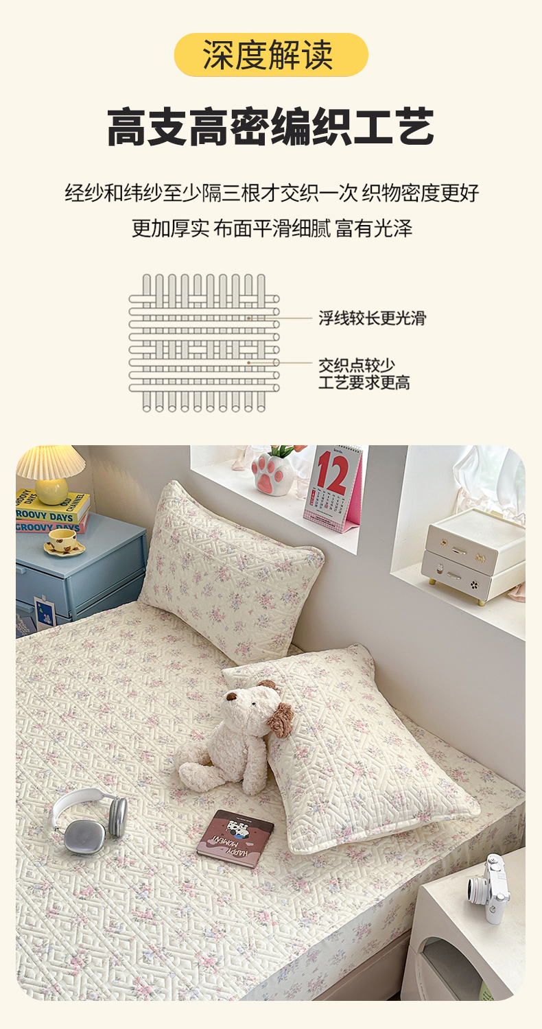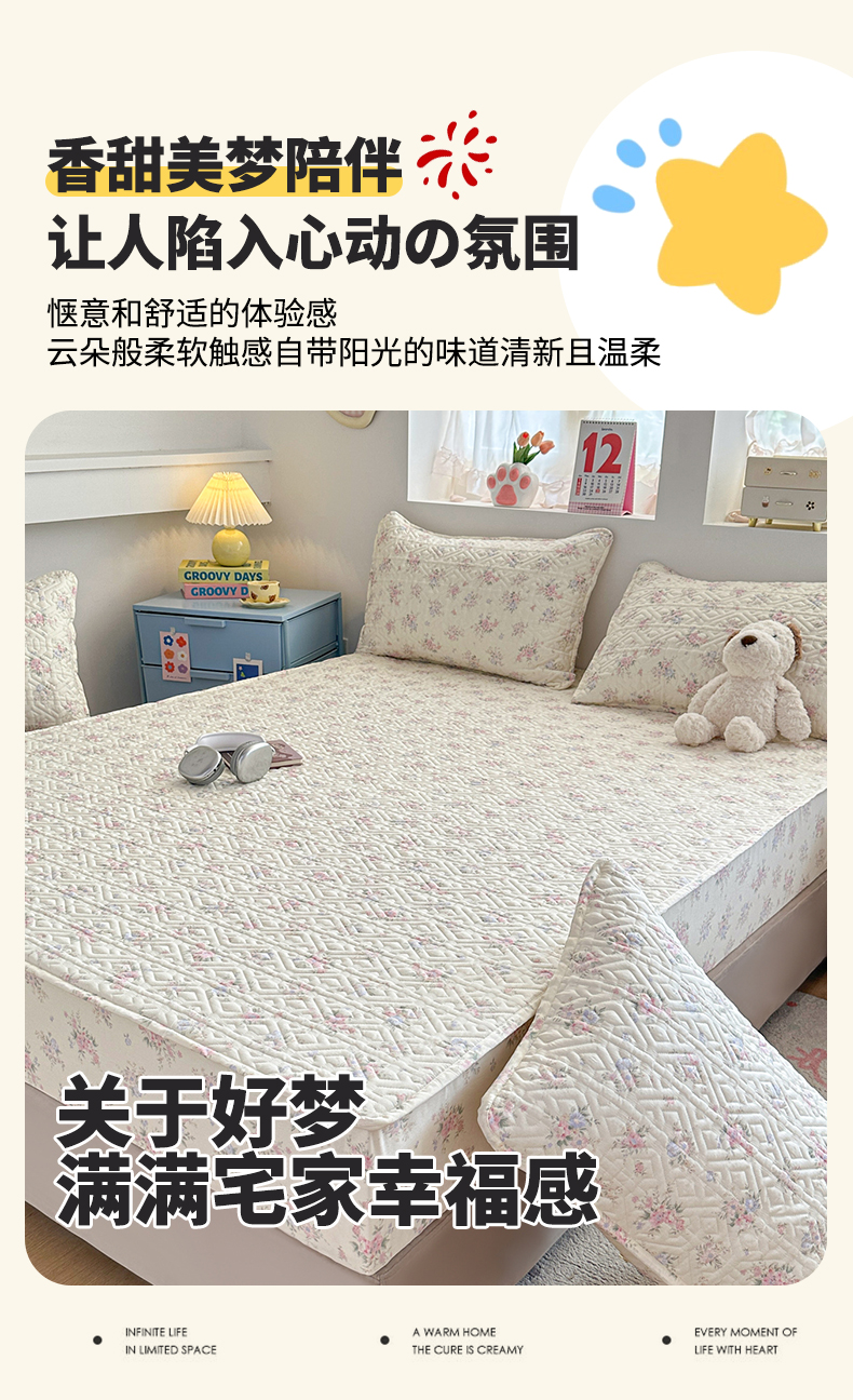 商品名称:忘忧草 2026新款清新简约全棉印花夹棉床笠 欧风花影