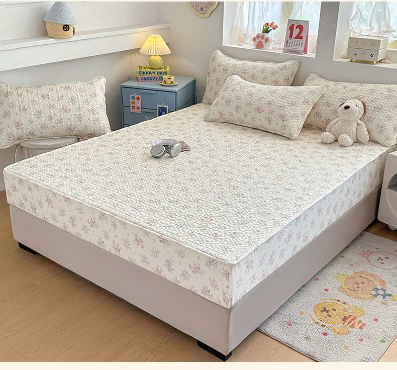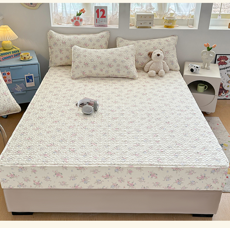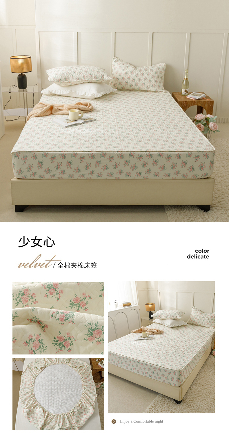 忘忧草 2026新款清新简约全棉印花夹棉床笠 欧风花影