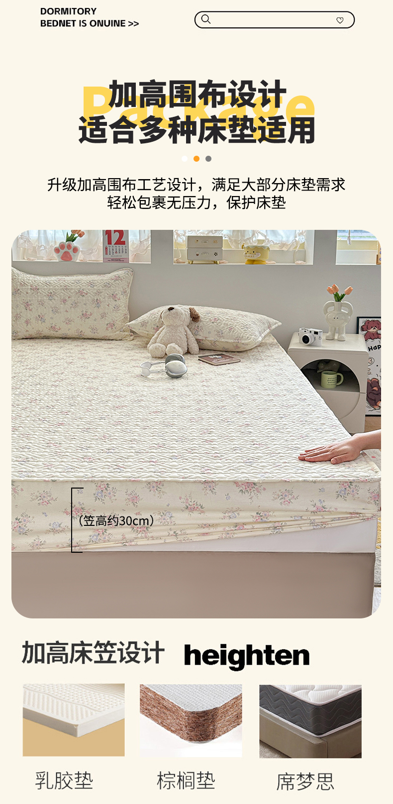 (总)忘忧草 2026新款13372全棉夹棉款床笠式床裙,1屋顶花园,2樱桃季 紫,3蜜汁 粉,4南枝,5如愿,6贝贝熊,7花簇-米,8秋洛,9少女心,10温迪