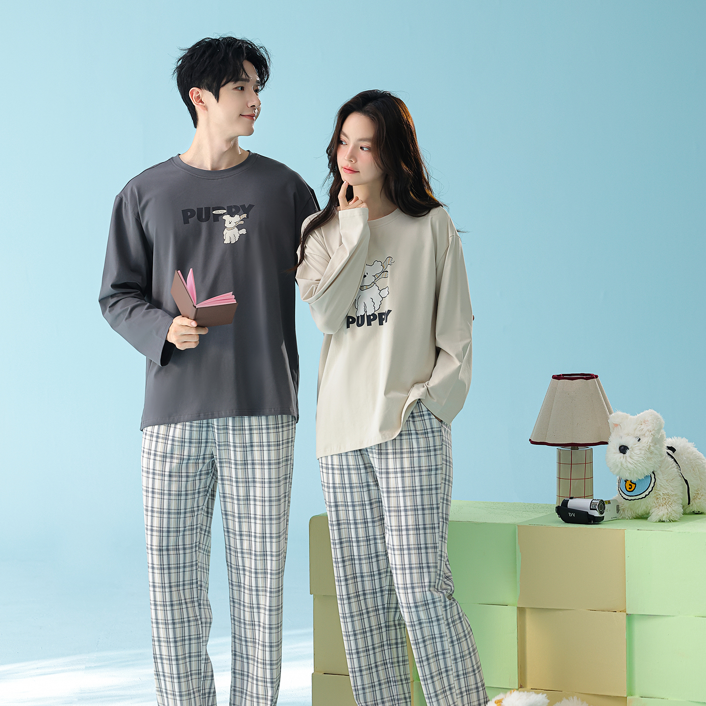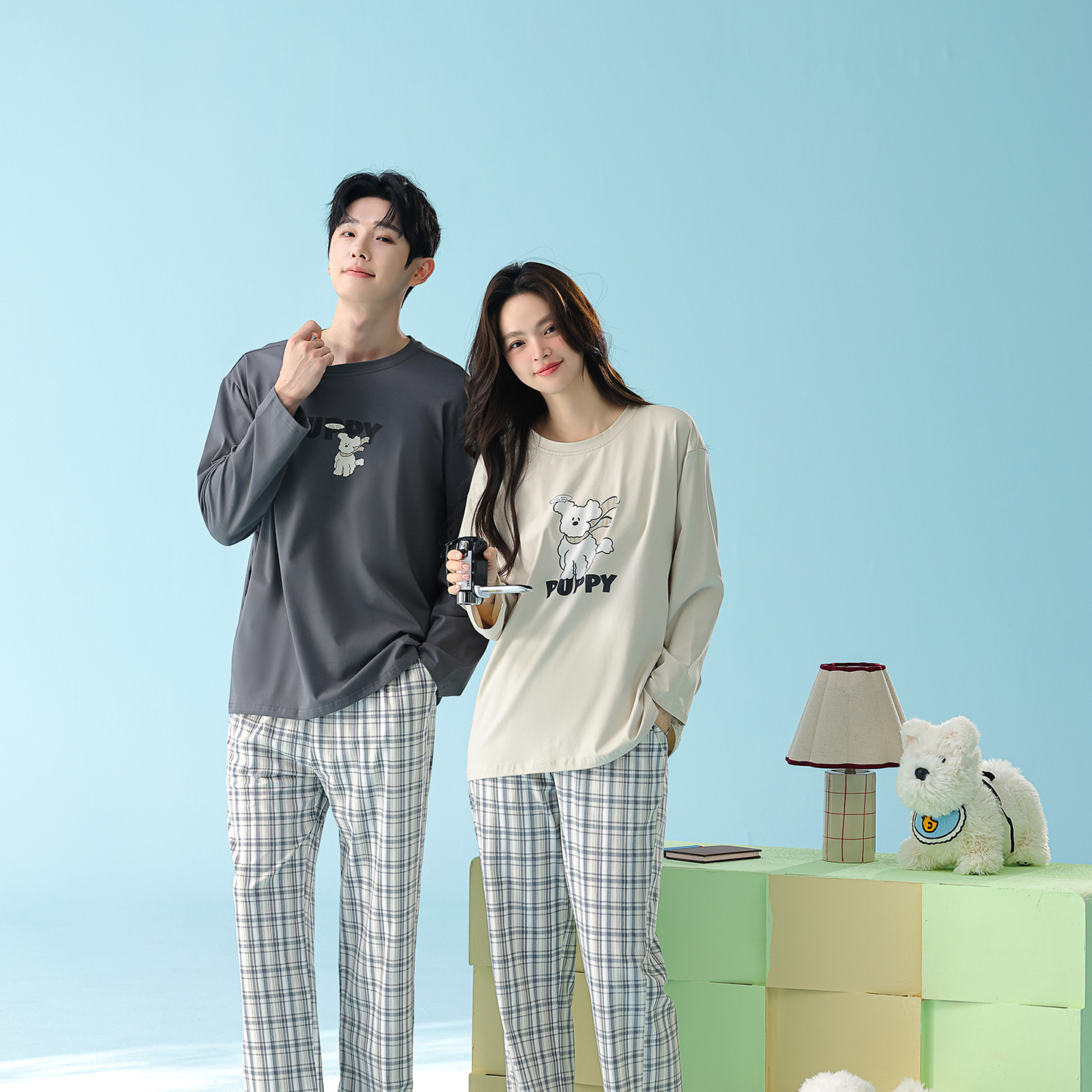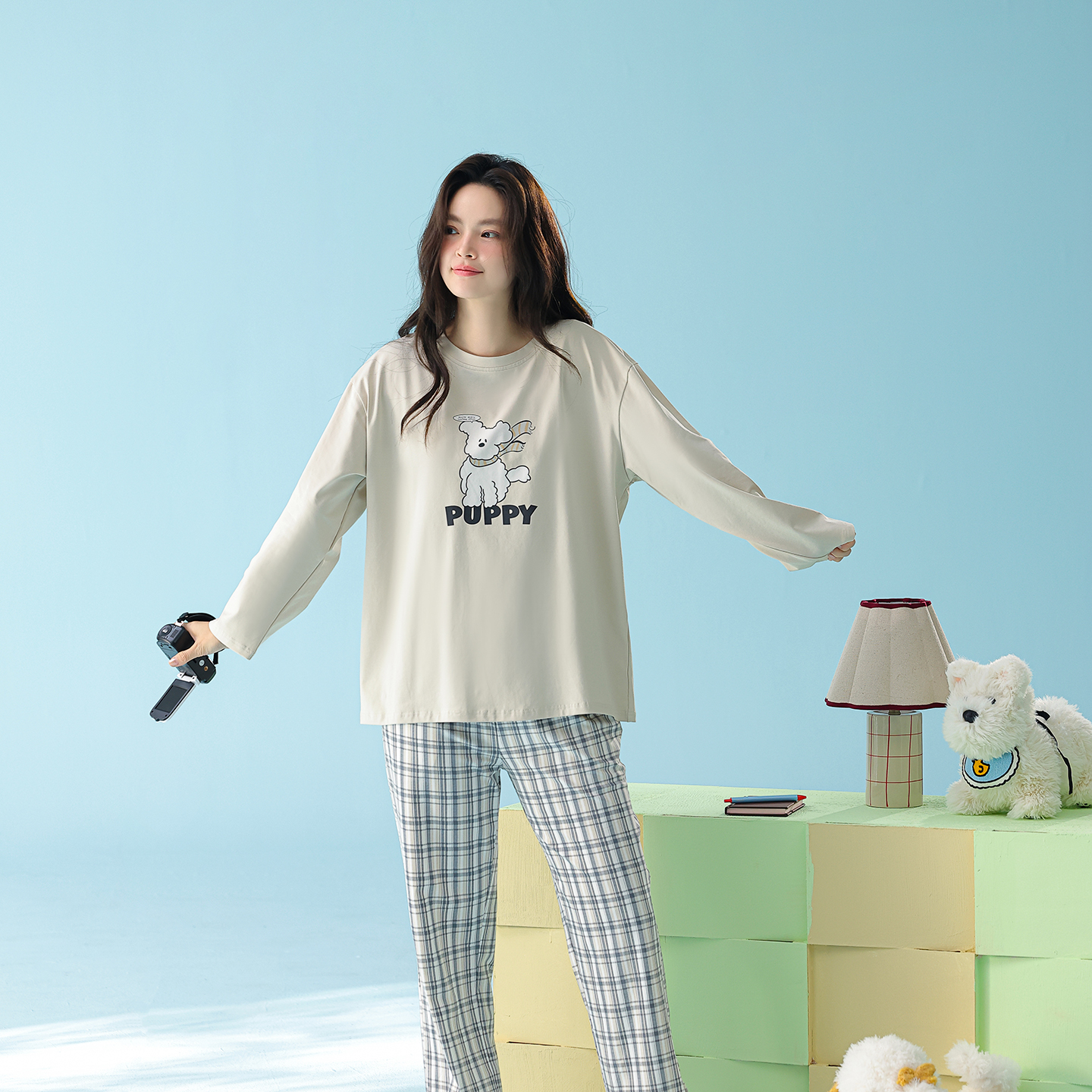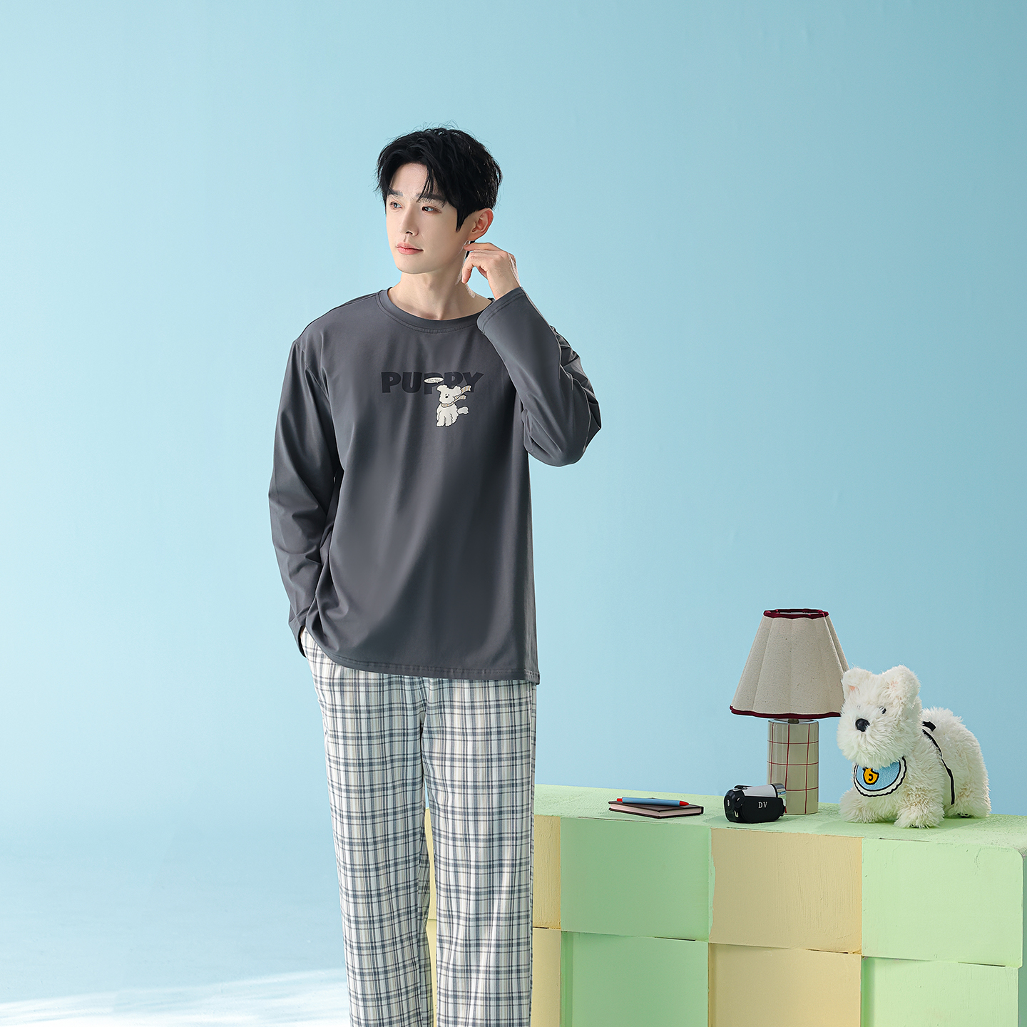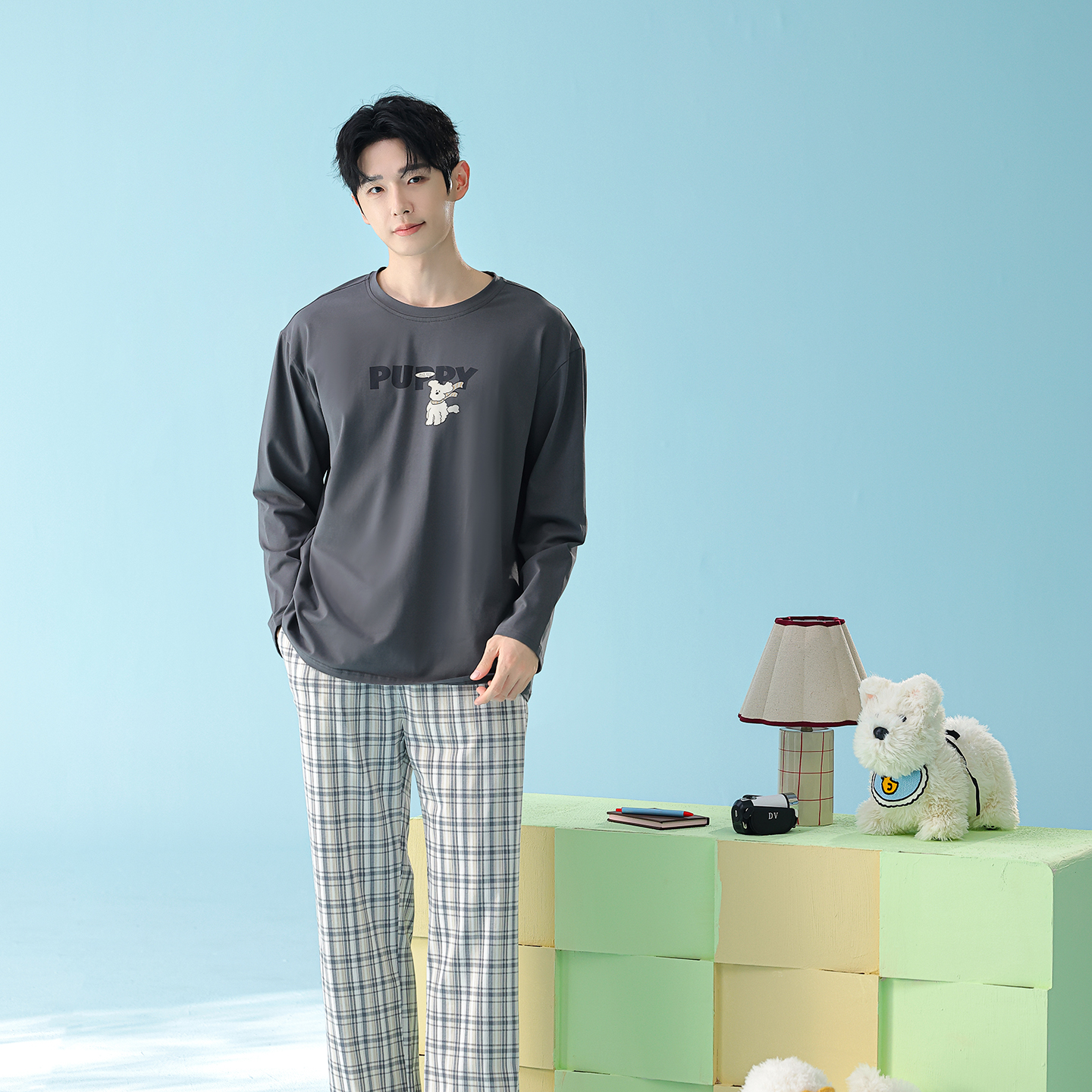 当前位置: 91家纺网 > 商品网购 > 居家日用 > 睡衣/家居服套装 > (总)妍景家居生活馆 2026新款新疆棉圆领印花格子狗狗