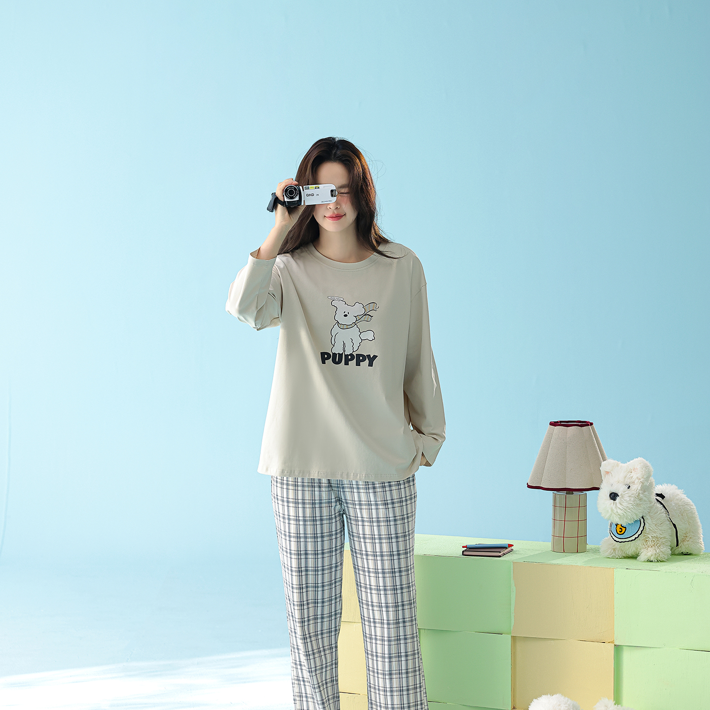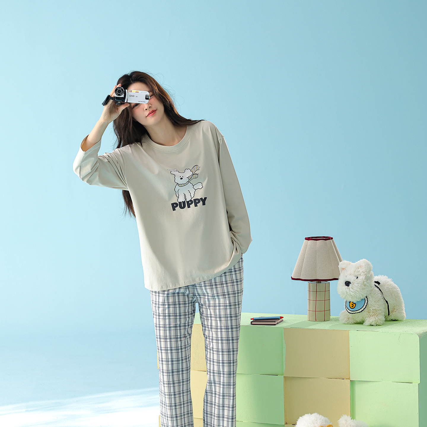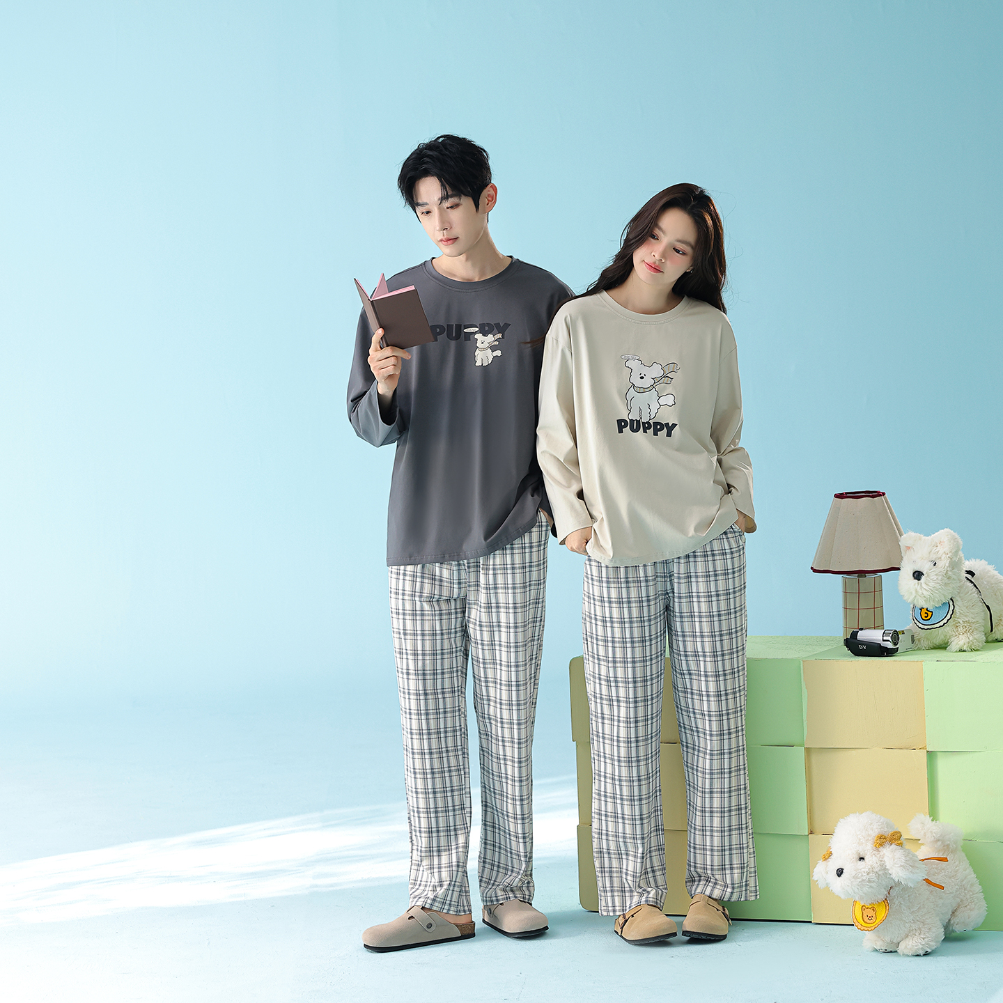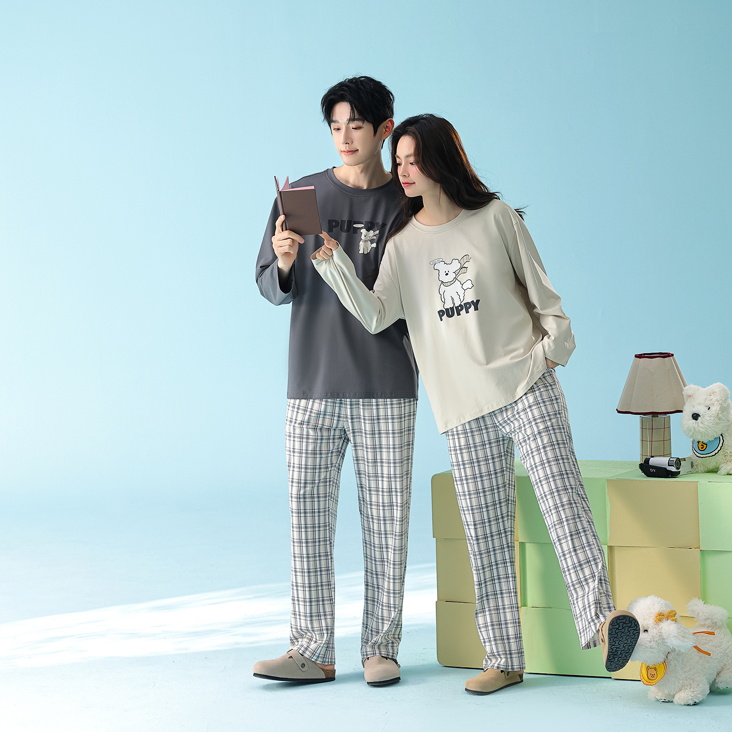 当前位置: 91家纺网 > 商品网购 > 居家日用 > 睡衣/家居服套装 > (总)妍景家居生活馆 2026新款新疆棉圆领印花格子狗狗