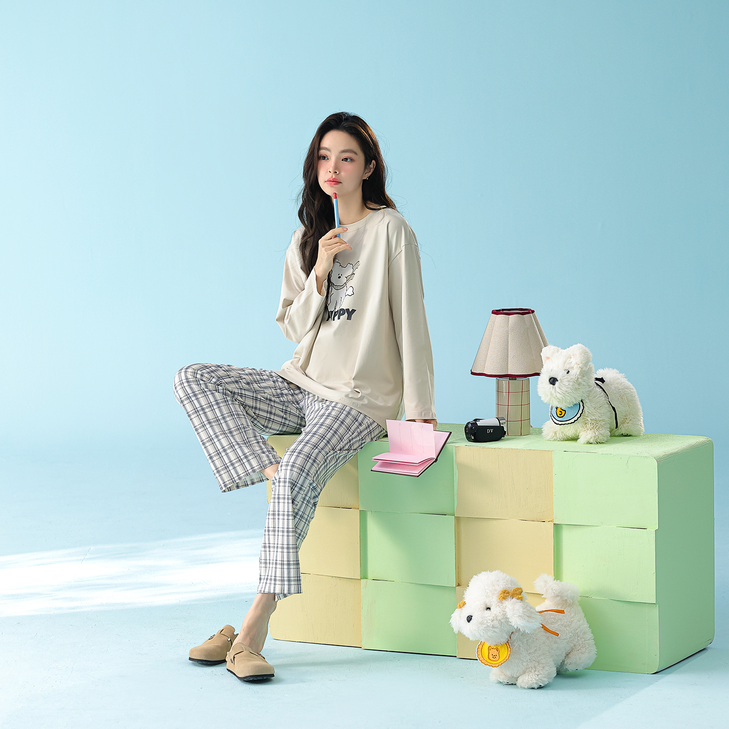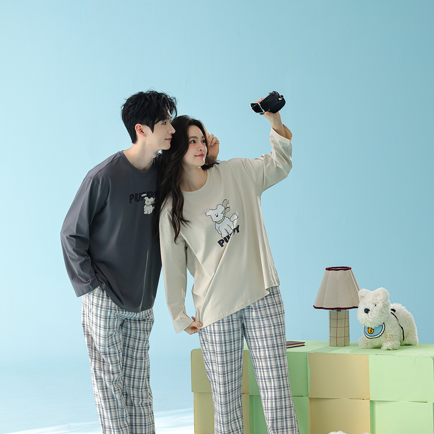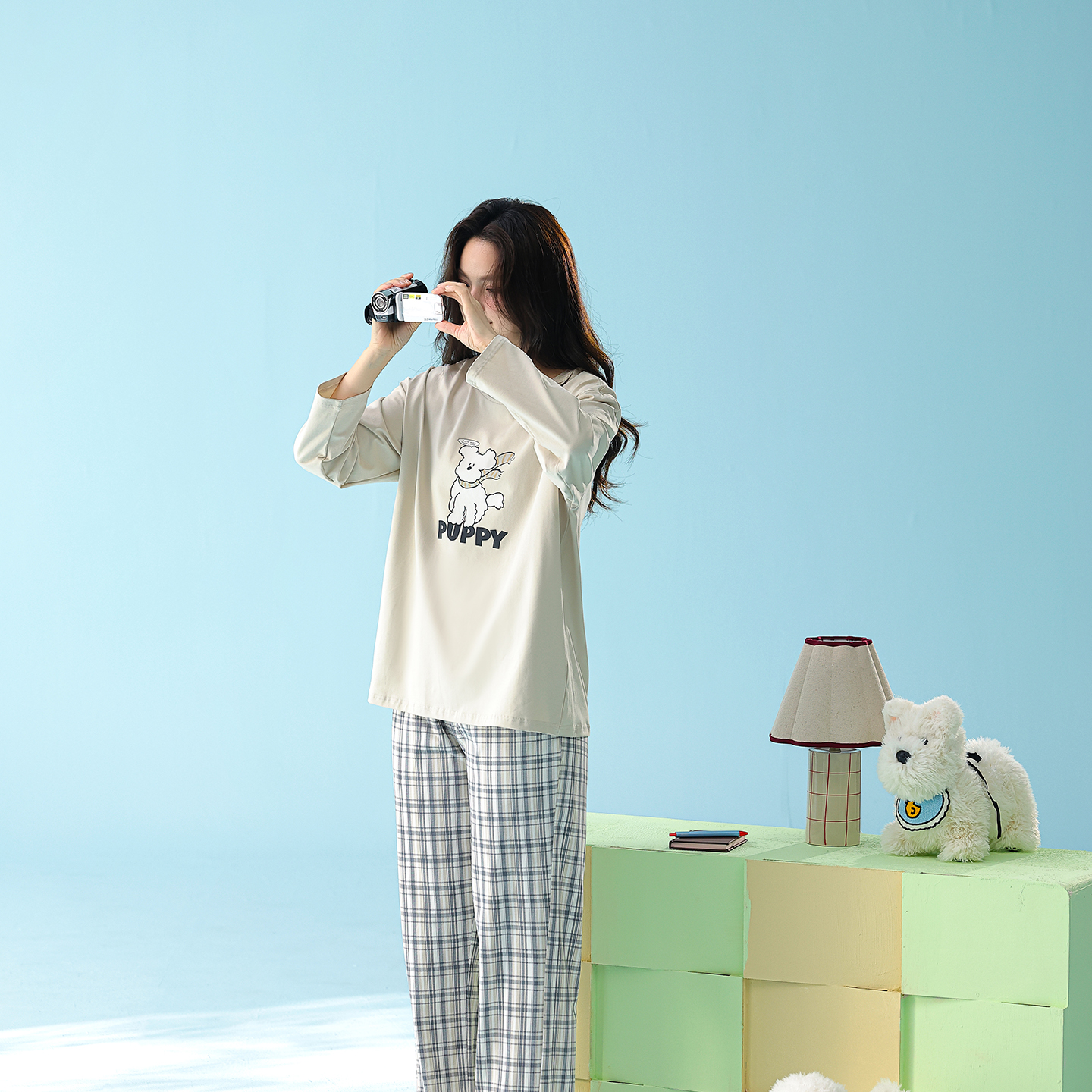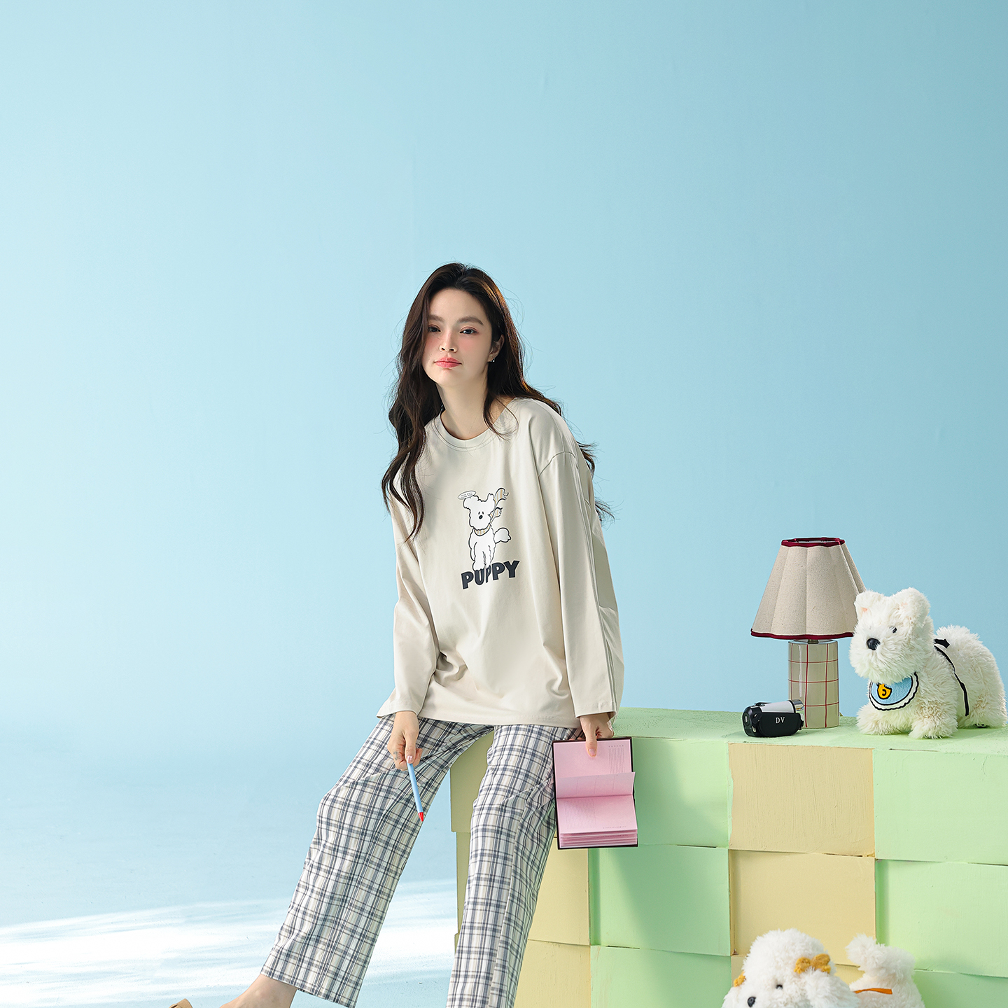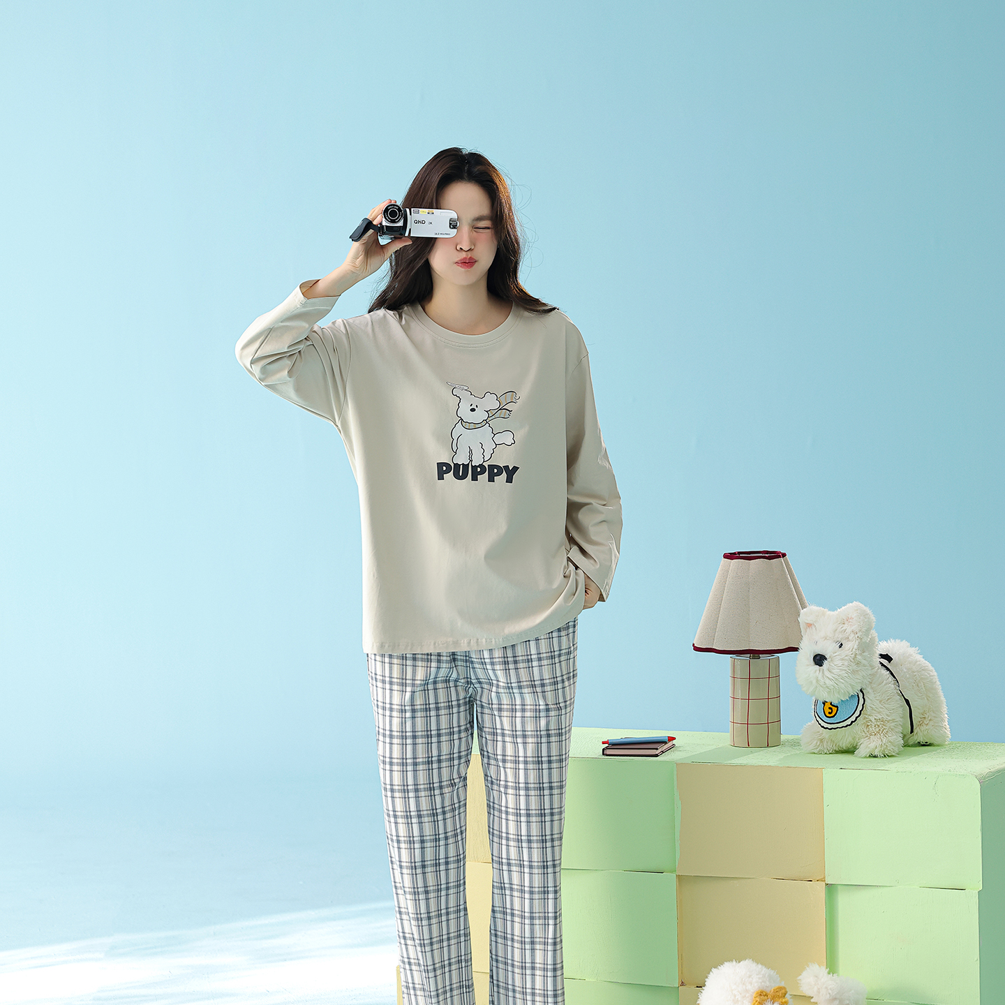 当前位置: 91家纺网 > 商品网购 > 居家日用 > 睡衣/家居服套装 > (总)妍景家居生活馆 2026新款新疆棉圆领印花格子狗狗