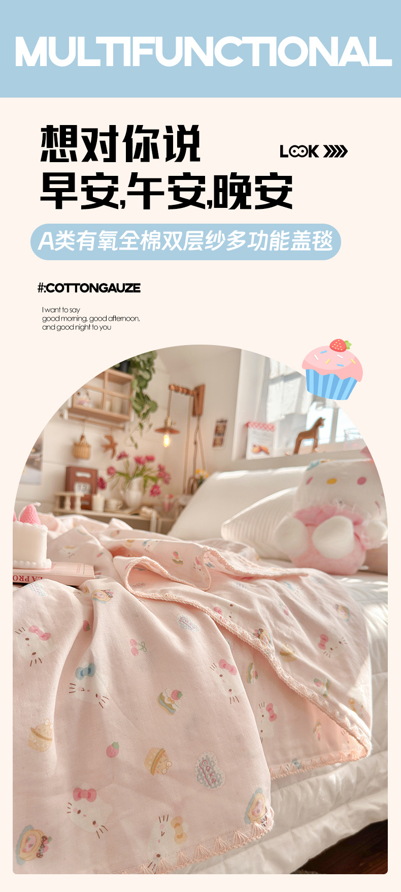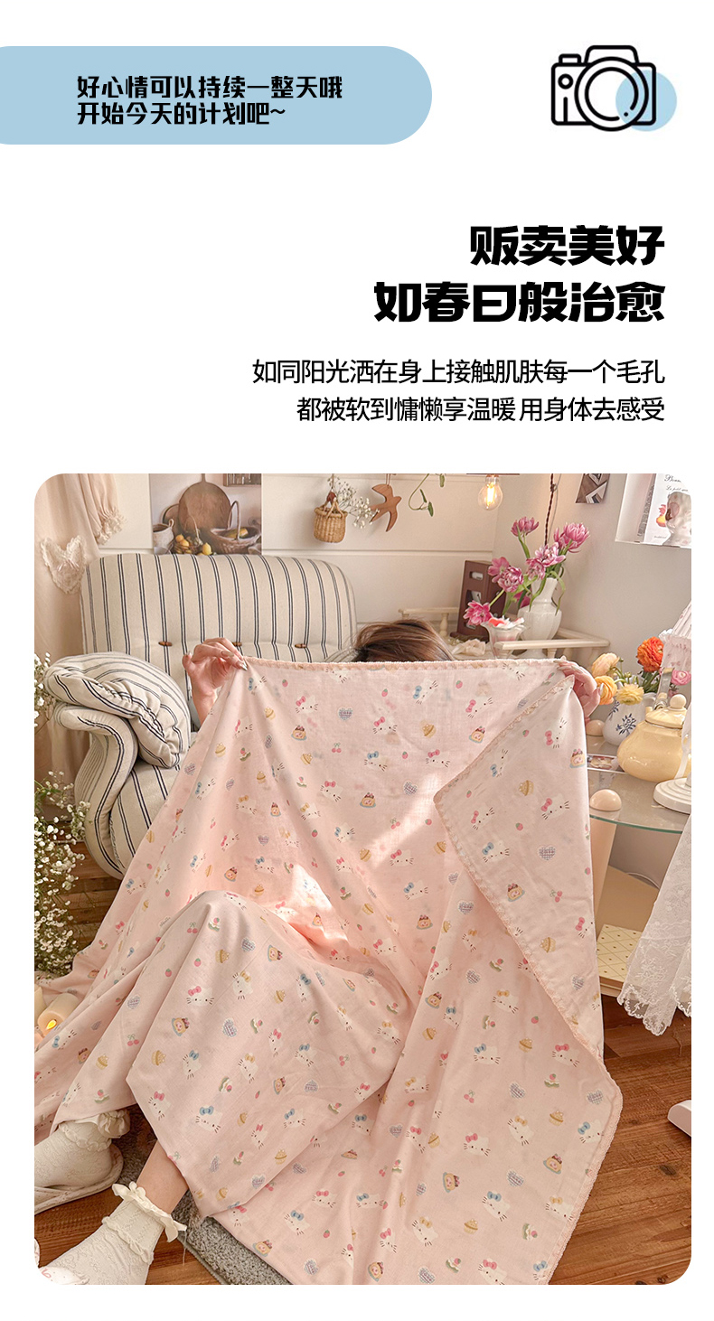 商品名称:暖阳 2026新款全棉纯棉双层纱夏季毯盖毯毯子 月铃喵喵