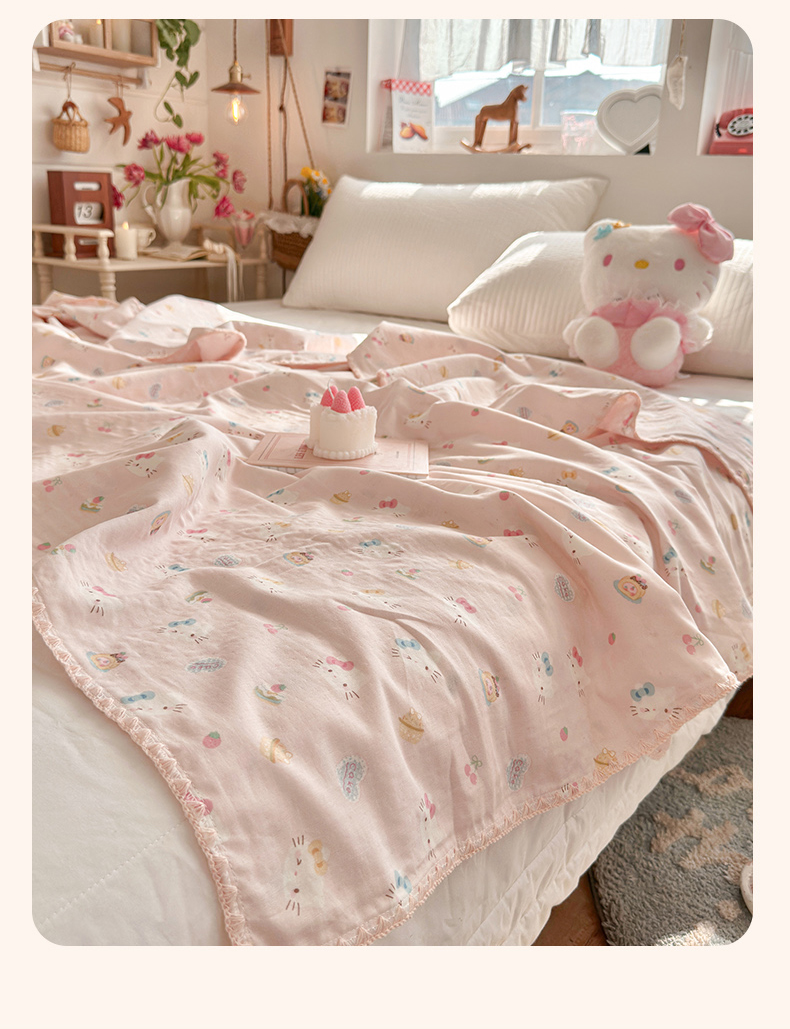 暖阳 2026新款全棉纯棉双层纱夏季毯盖毯毯子 月铃喵喵