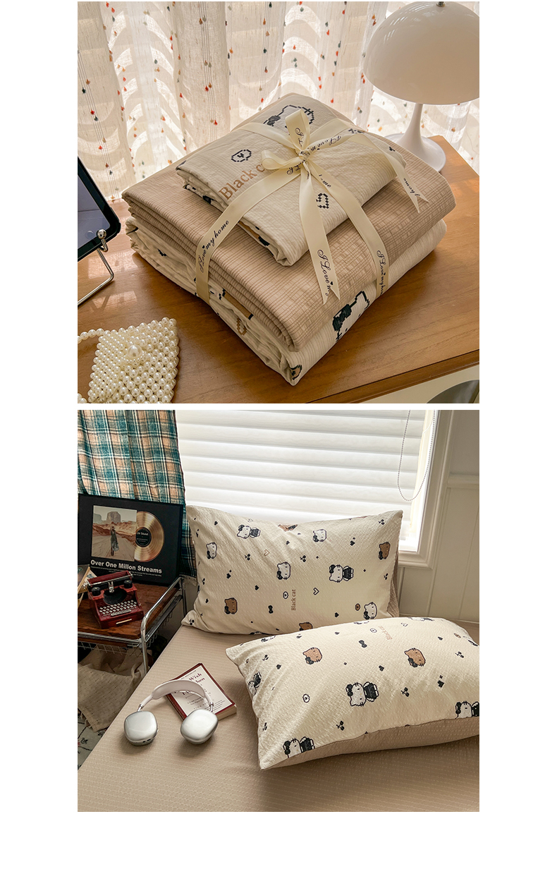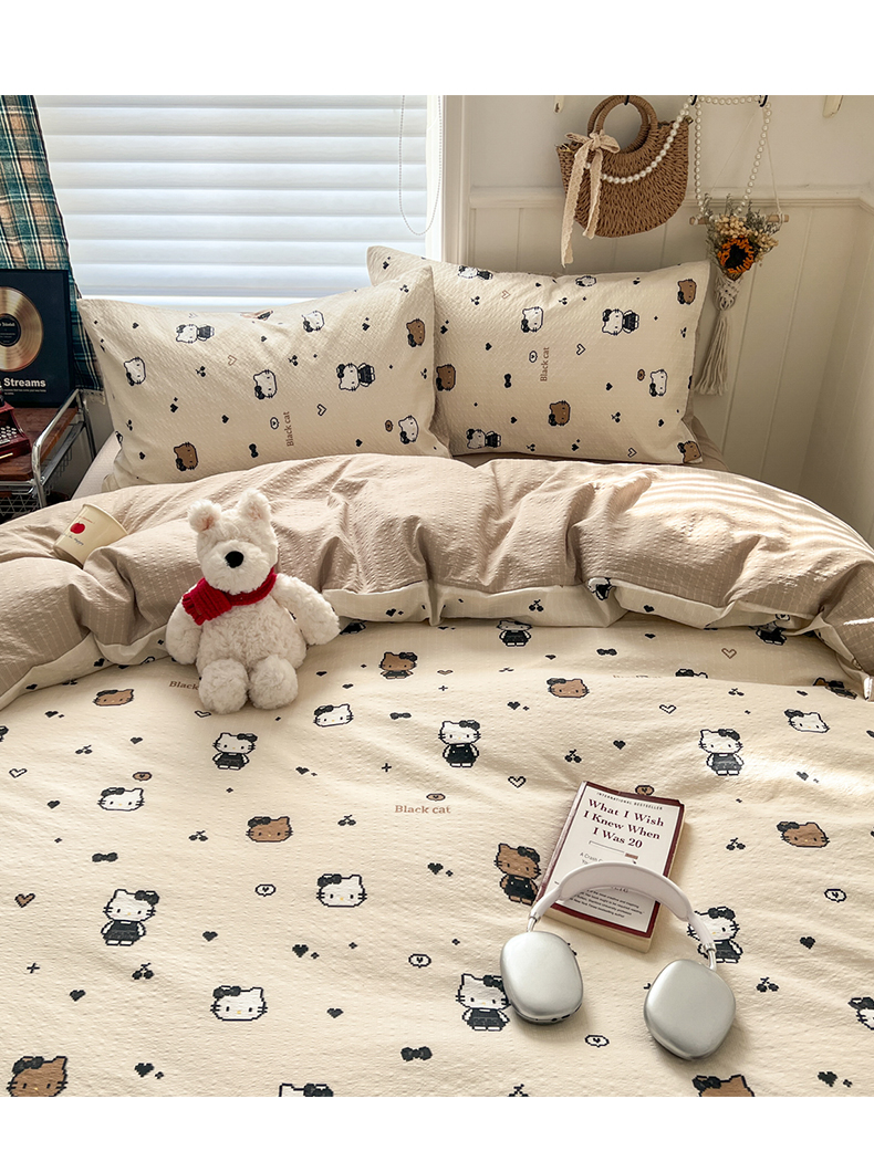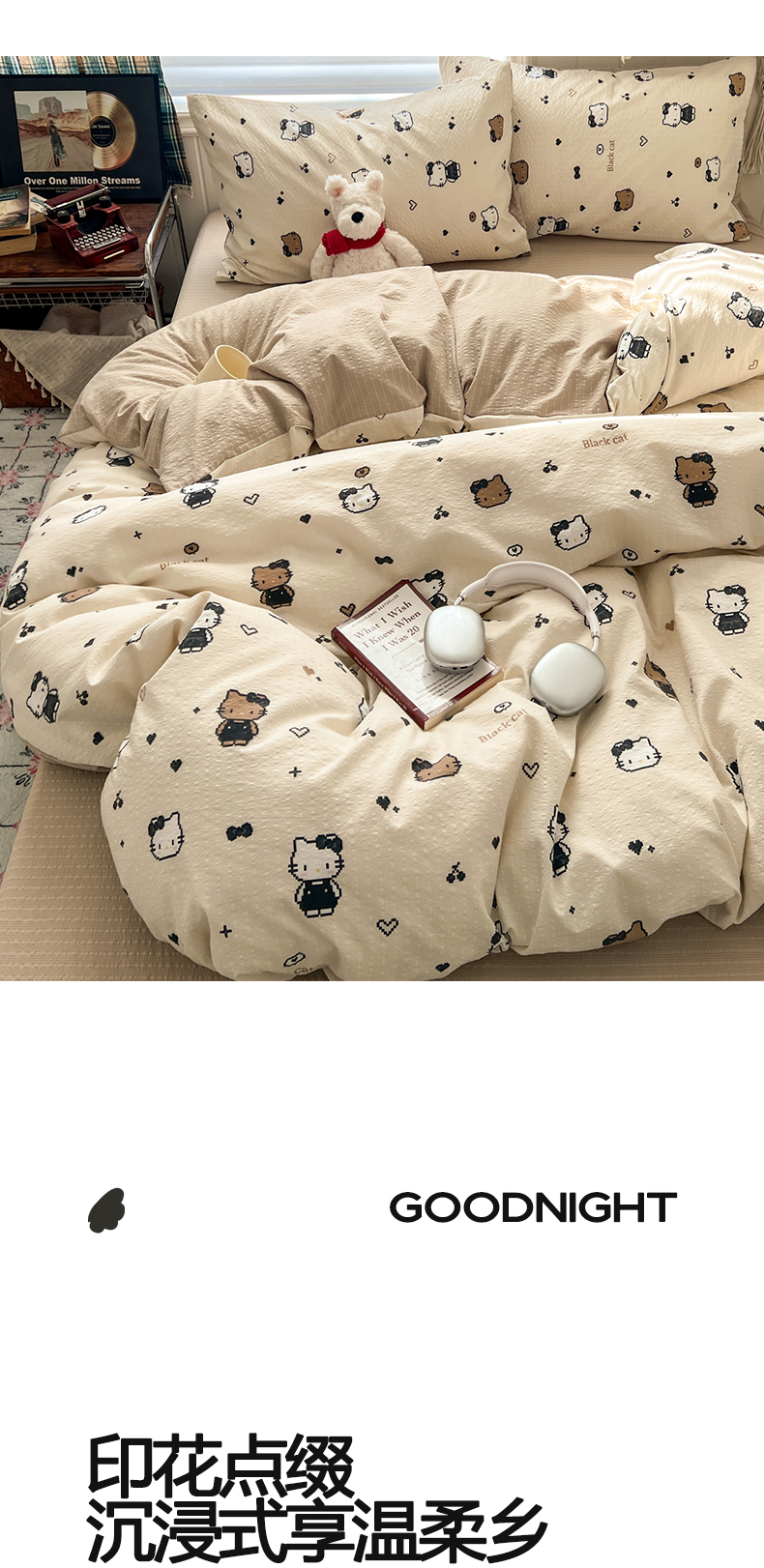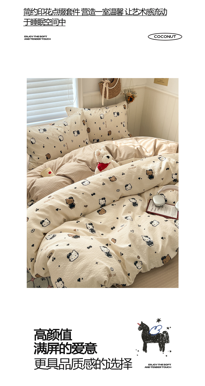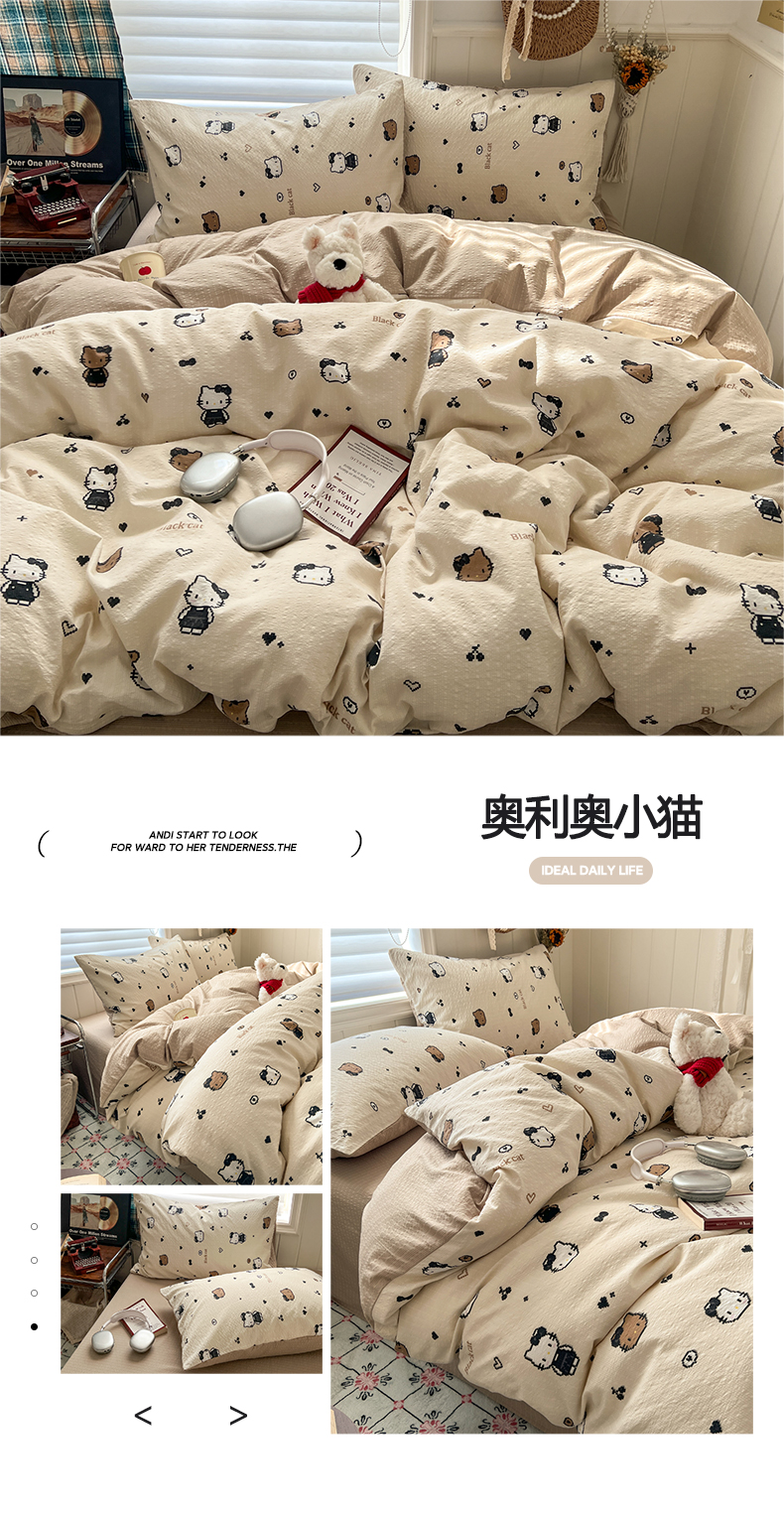 当前位置: 91家纺网 > 商品网购 > 床品套件 > 四件套 > 其它四件套 > 水木坊 2026春夏新款高品质泡芙普通款四件套 奥利奥小猫