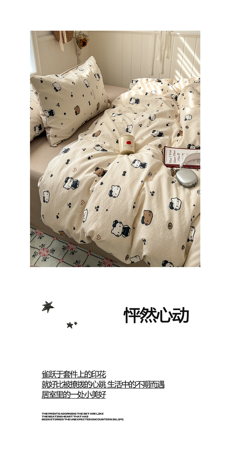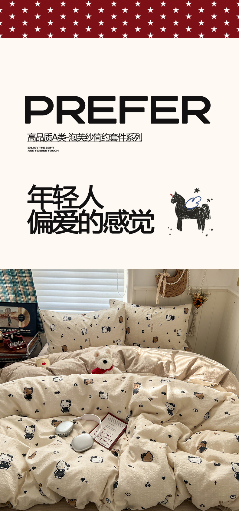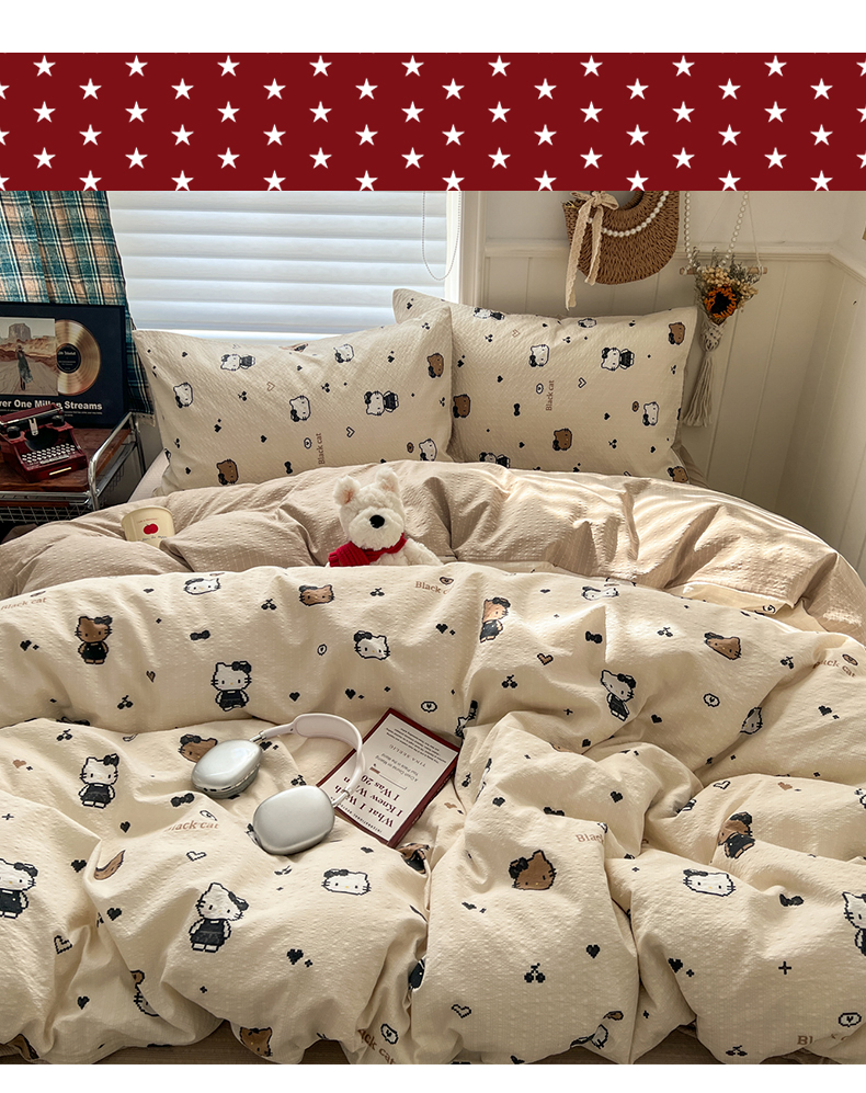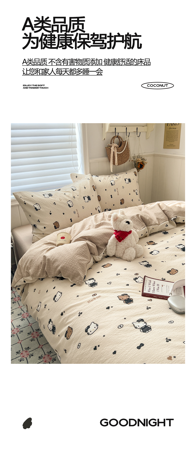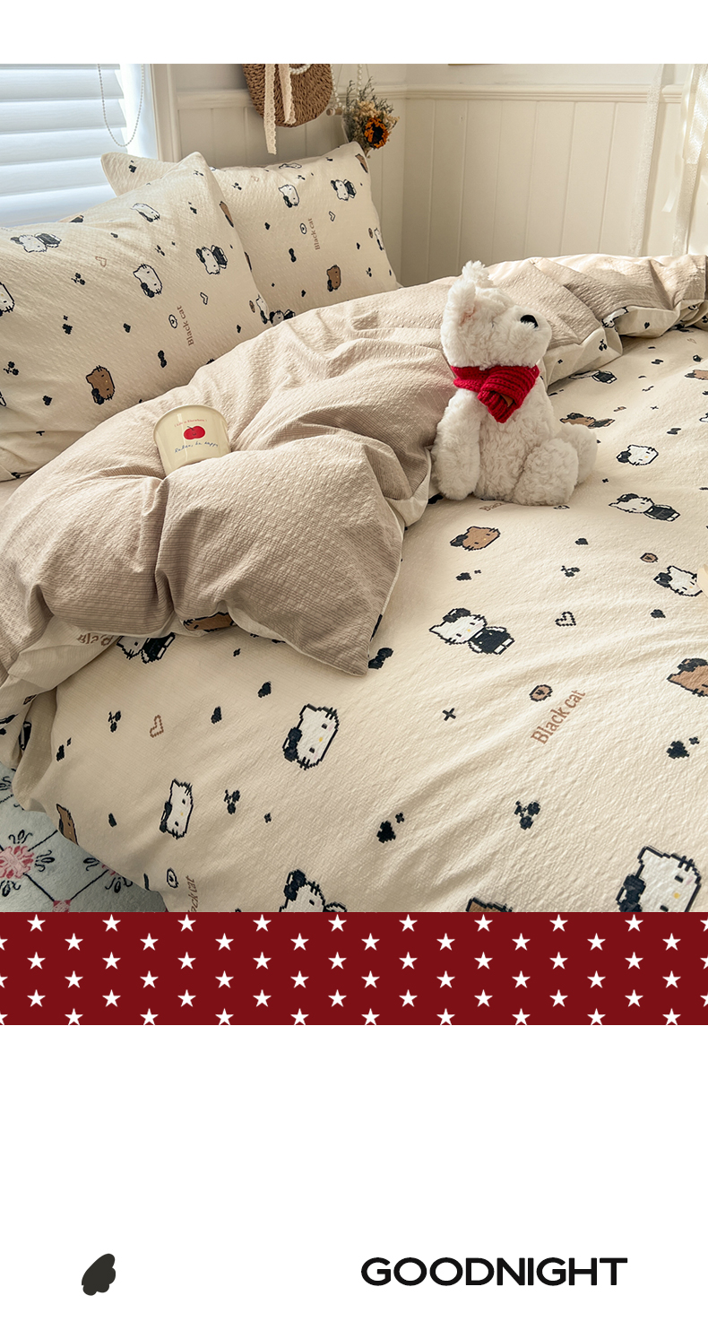 当前位置: 91家纺网 > 商品网购 > 床品套件 > 四件套 > 其它四件套 > 水木坊 2026春夏新款高品质泡芙普通款四件套 奥利奥小猫