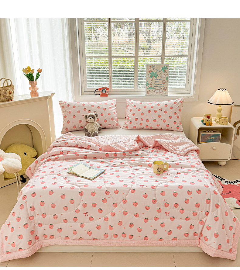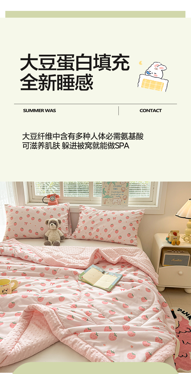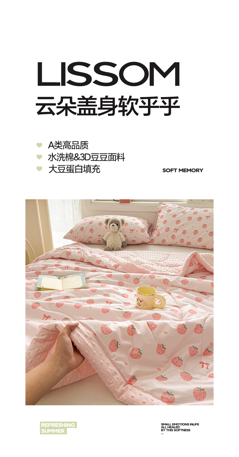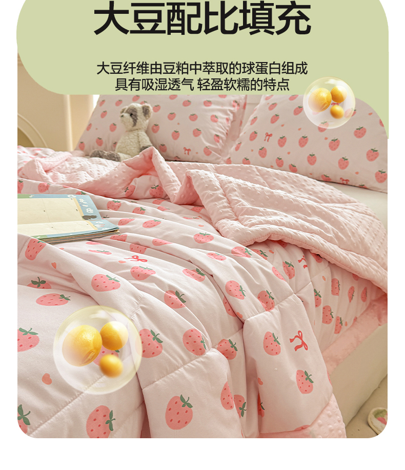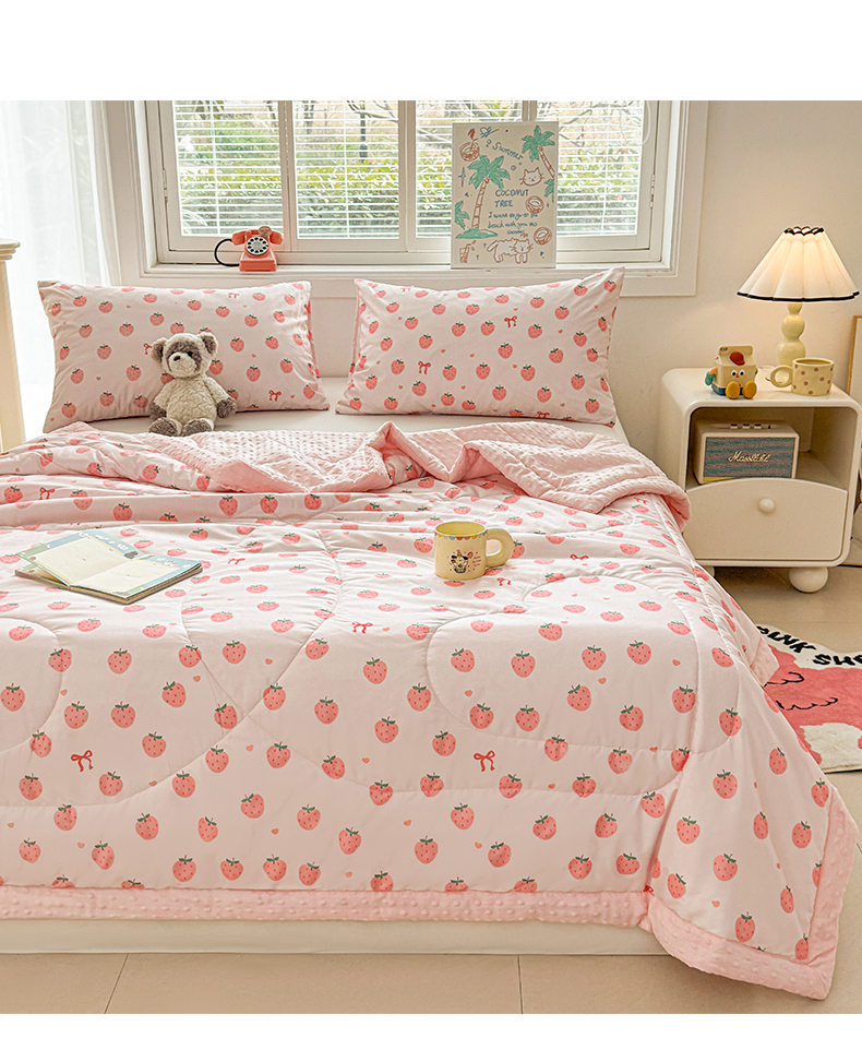 商品名称:悦织语 2026新款A类水洗棉双层纱豆豆被大豆夏凉被 草莓波波