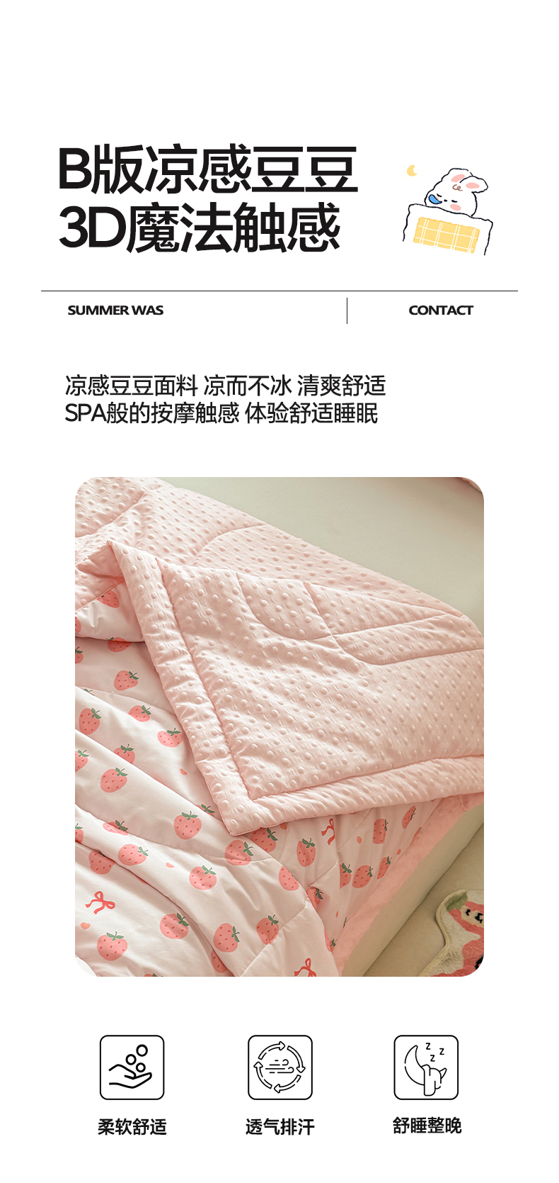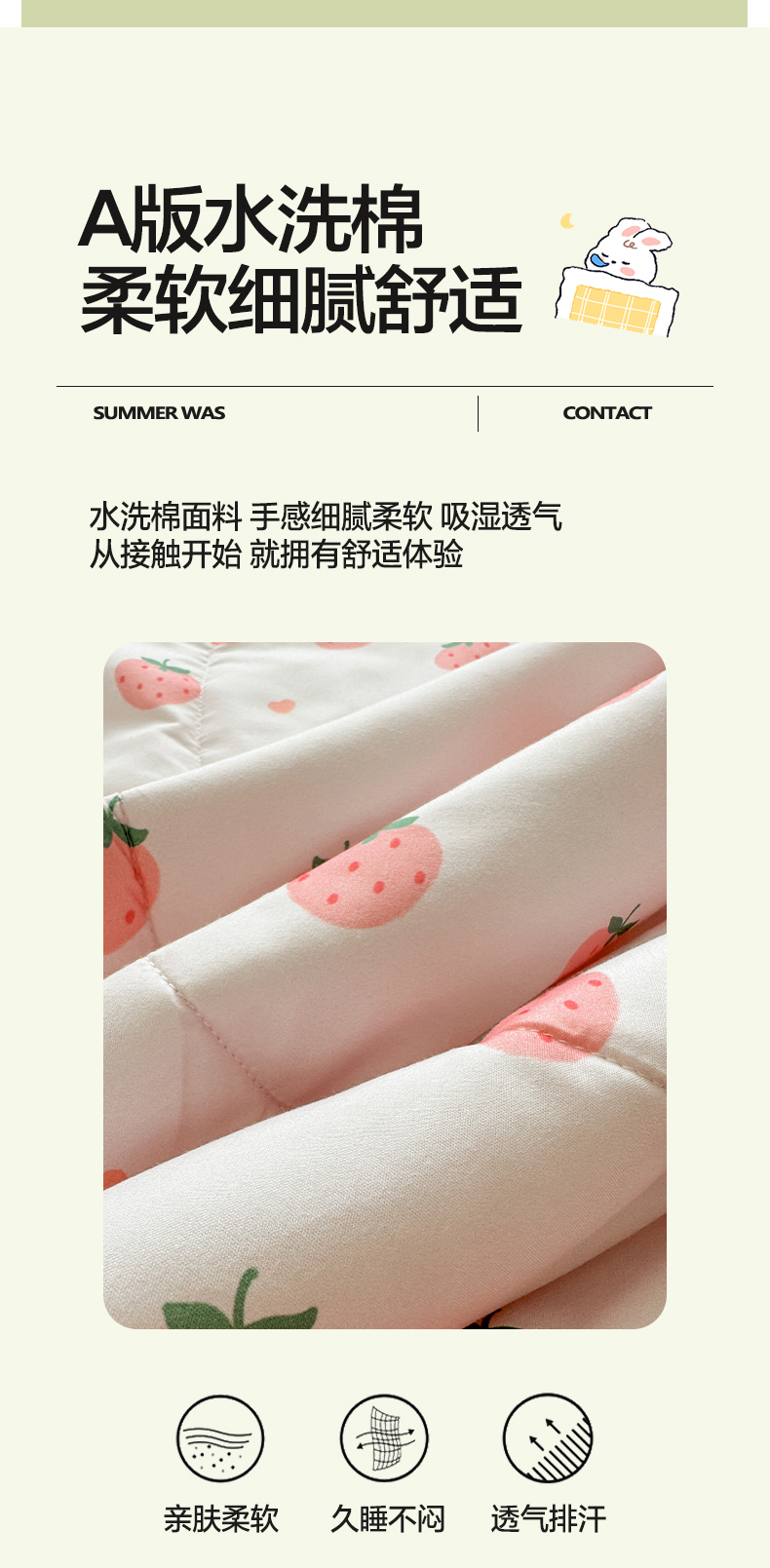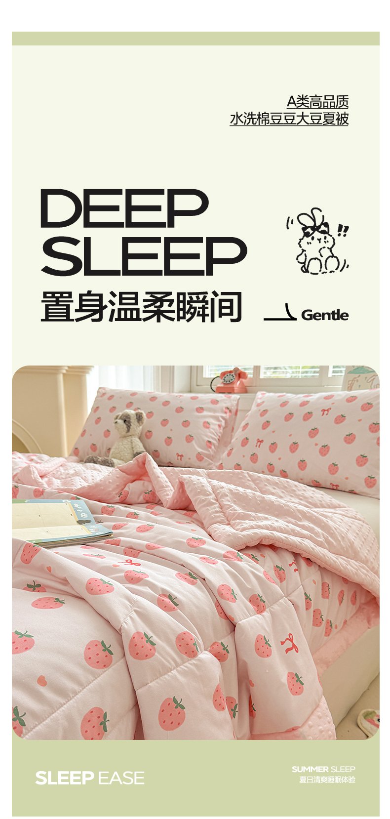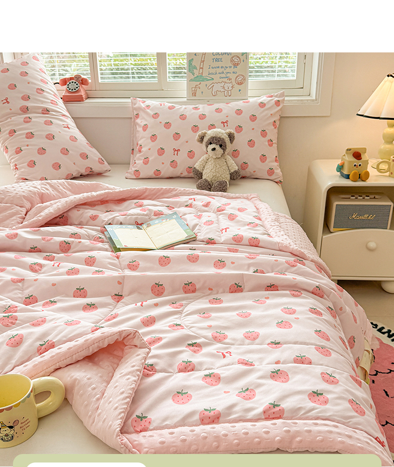 商品名称:悦织语 2026新款A类水洗棉双层纱豆豆被大豆夏凉被 草莓波波