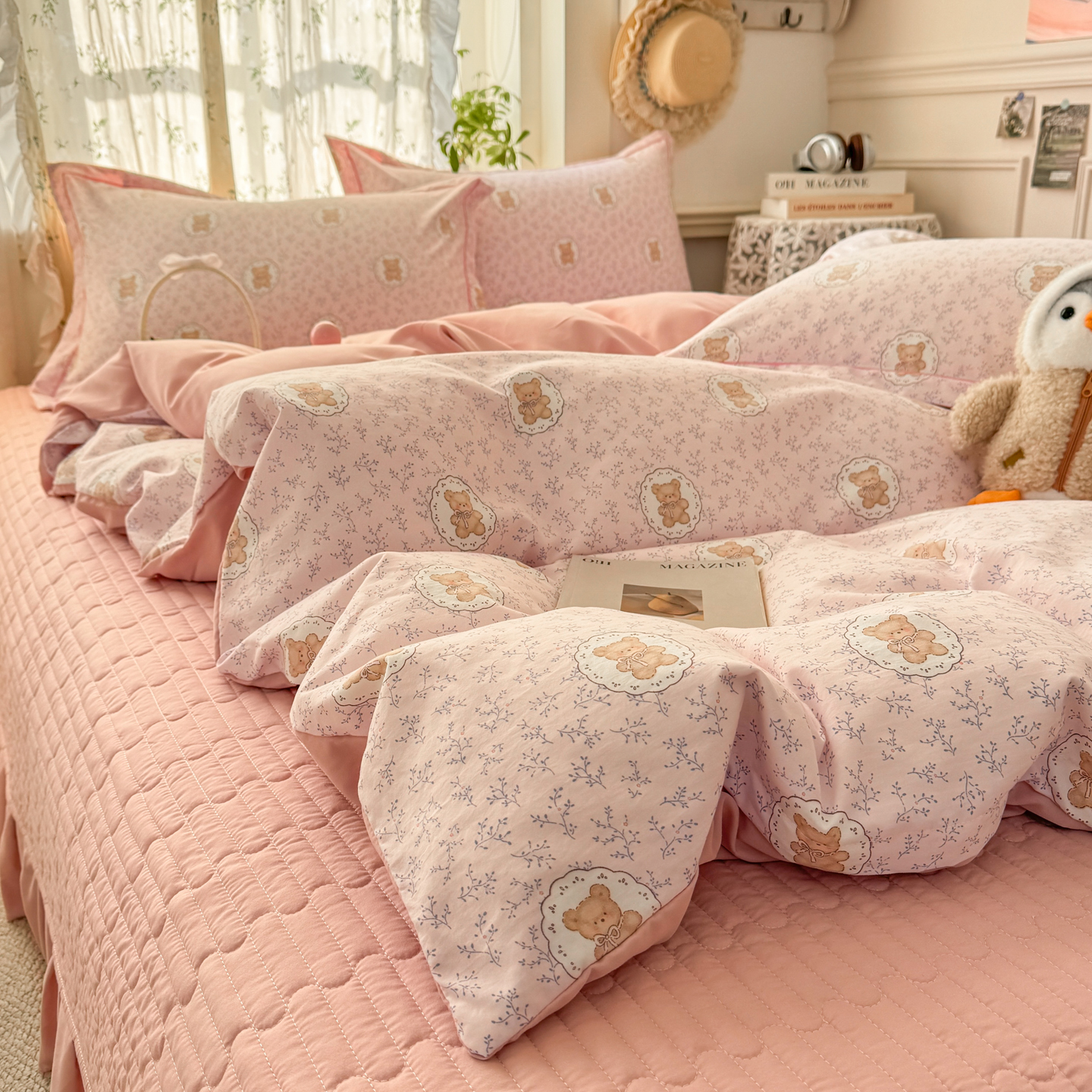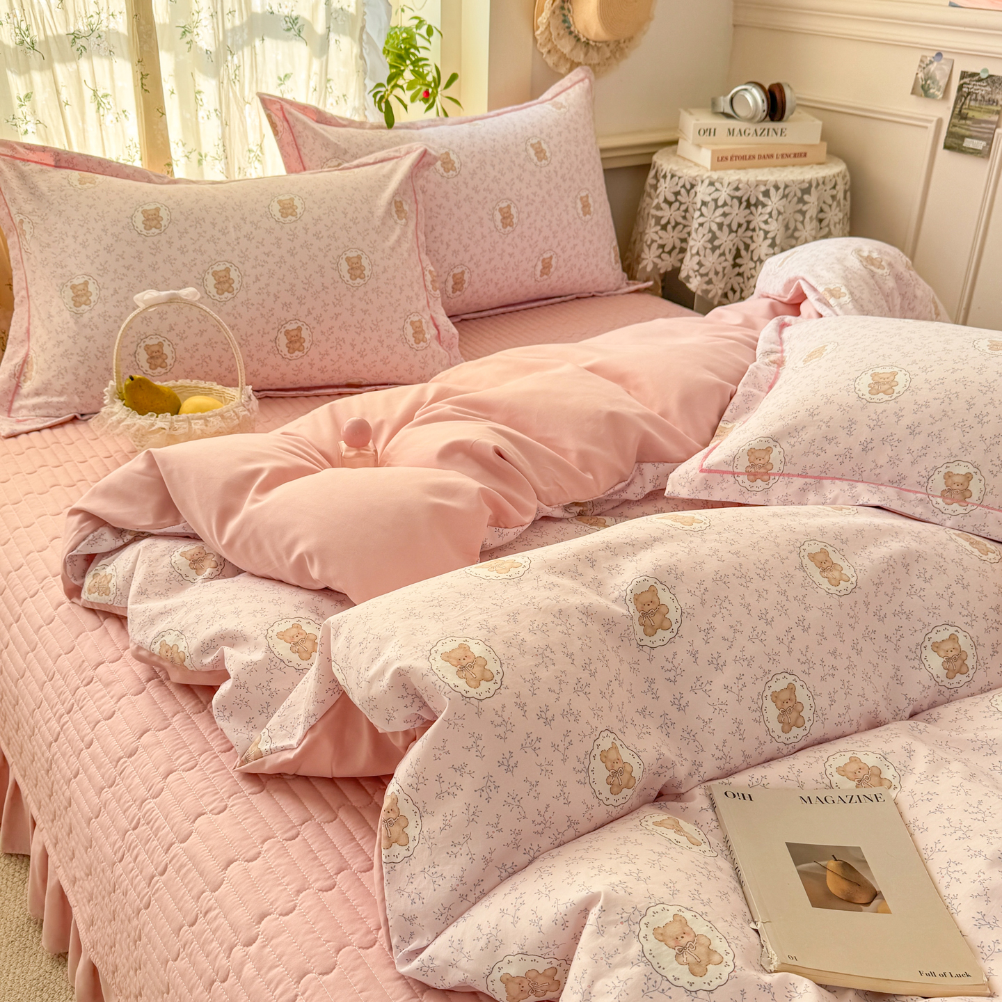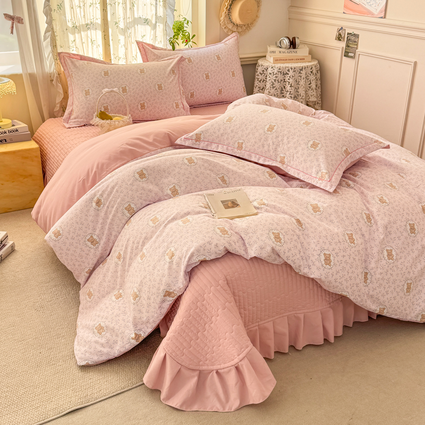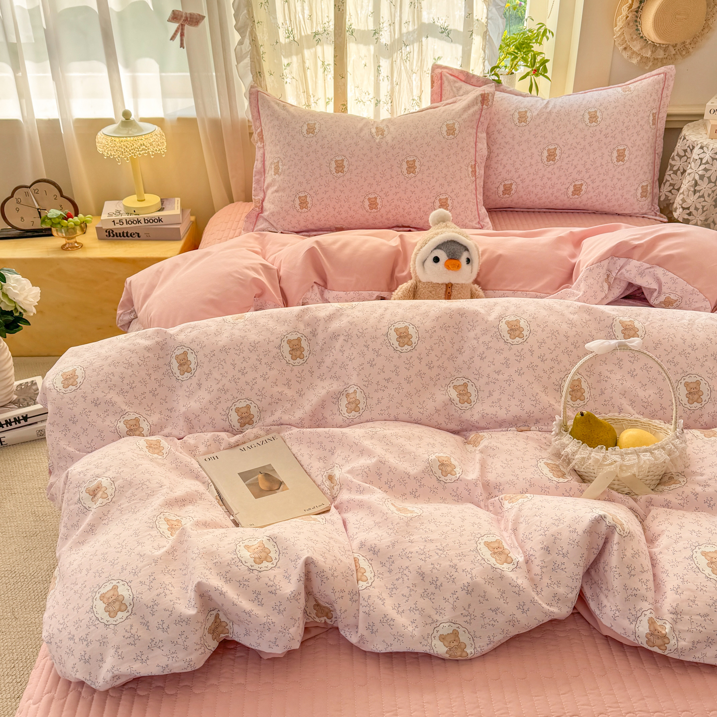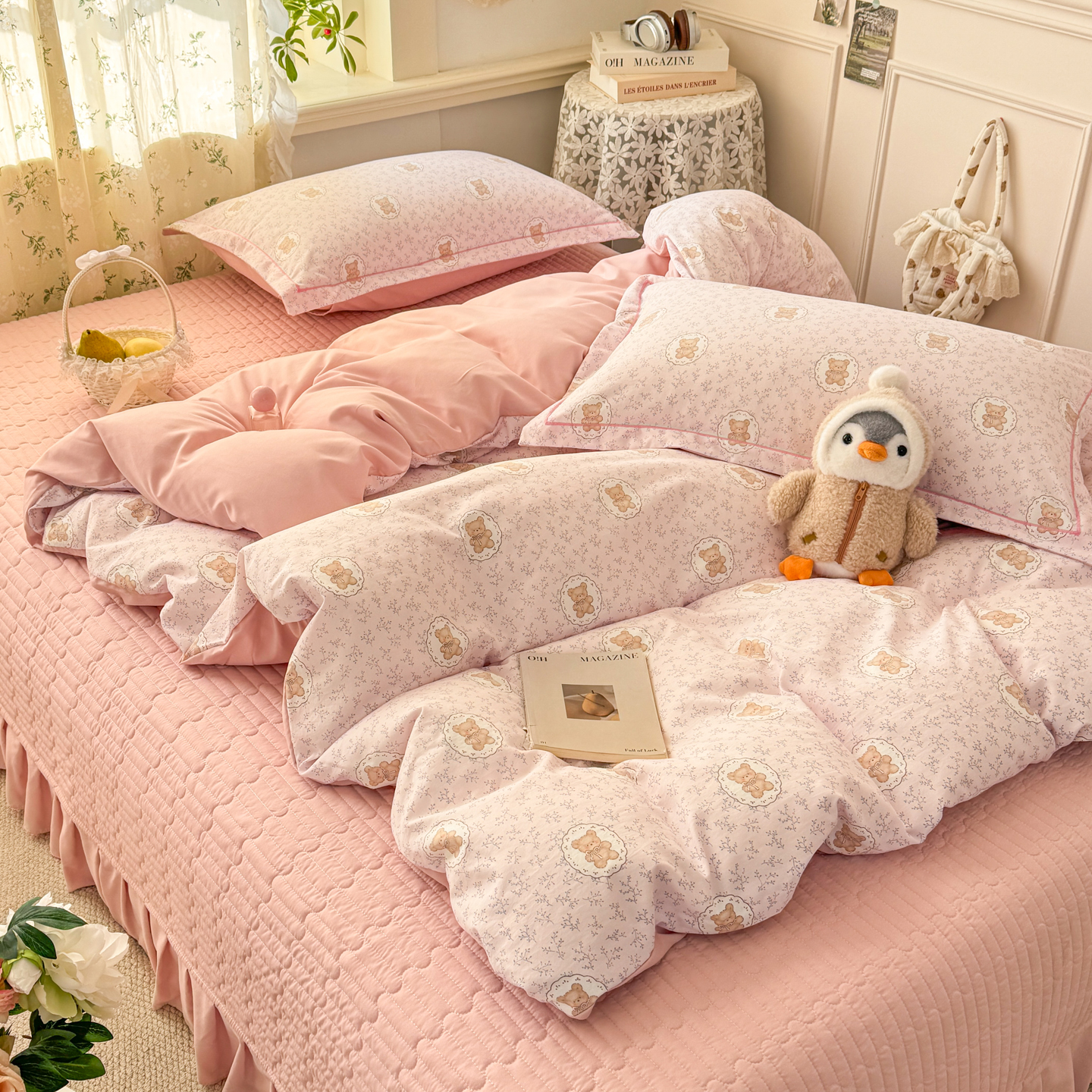 富之航家纺 2026新款小清新床盖四件套 花园萌熊