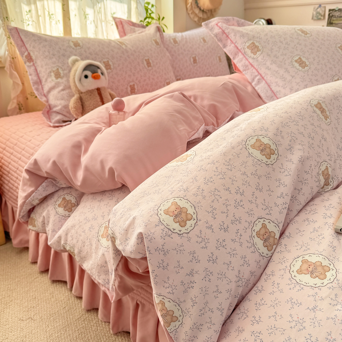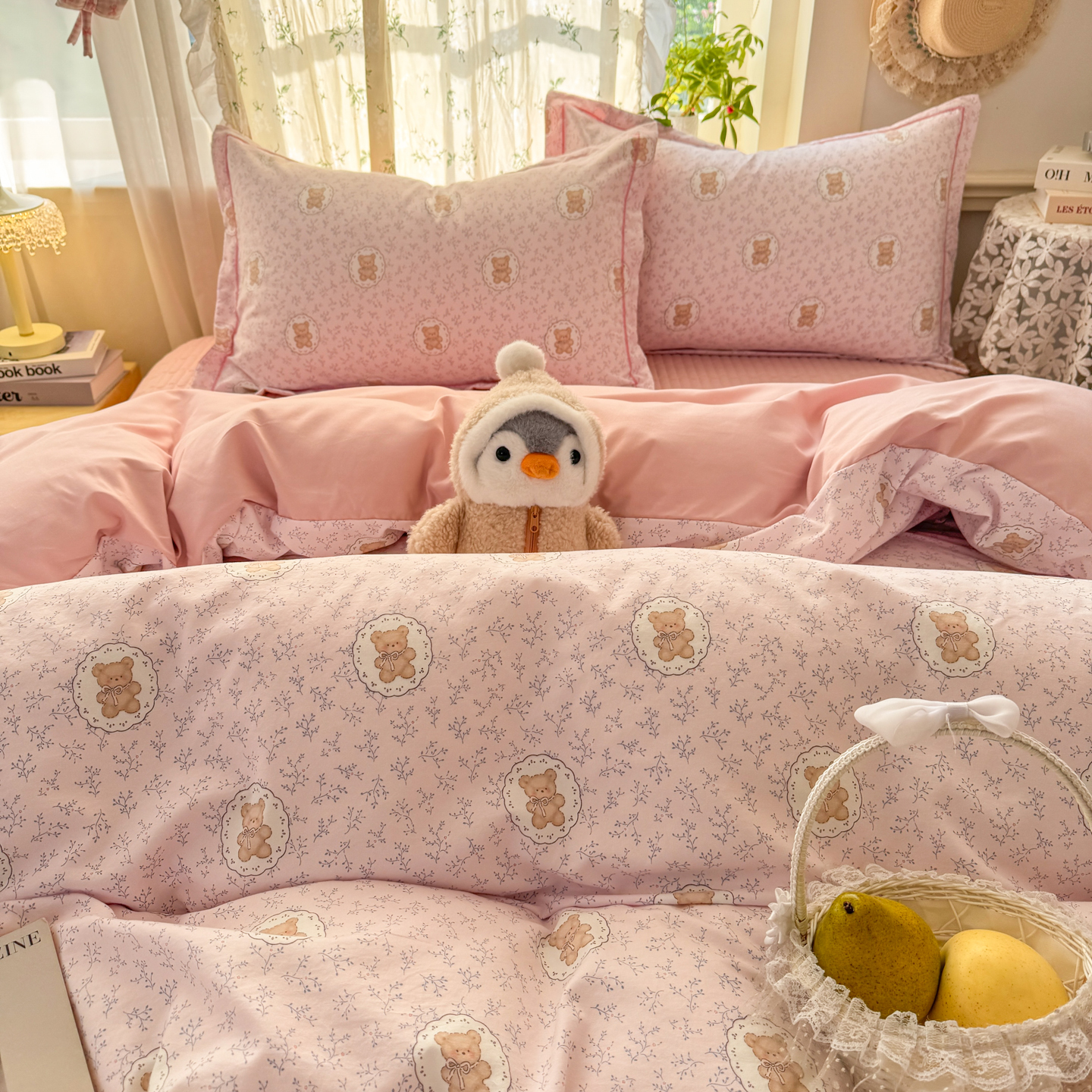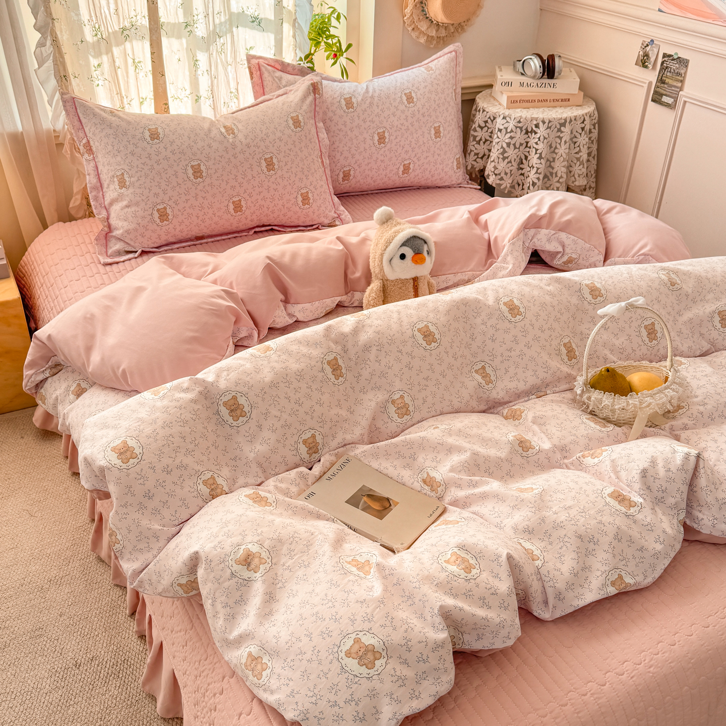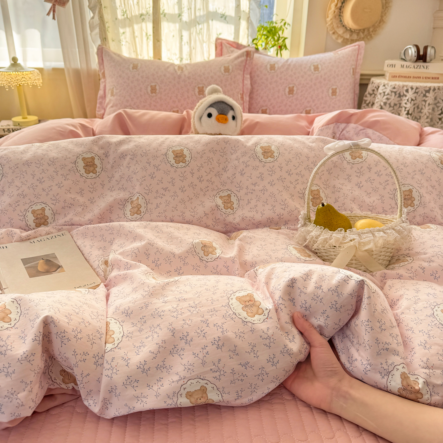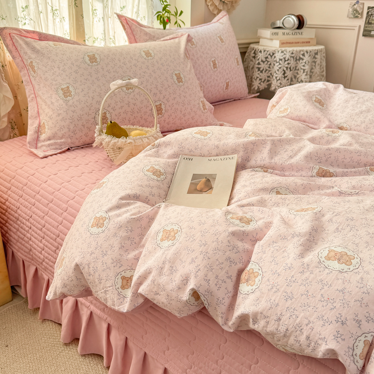 富之航家纺 2026新款小清新床盖四件套 花园萌熊