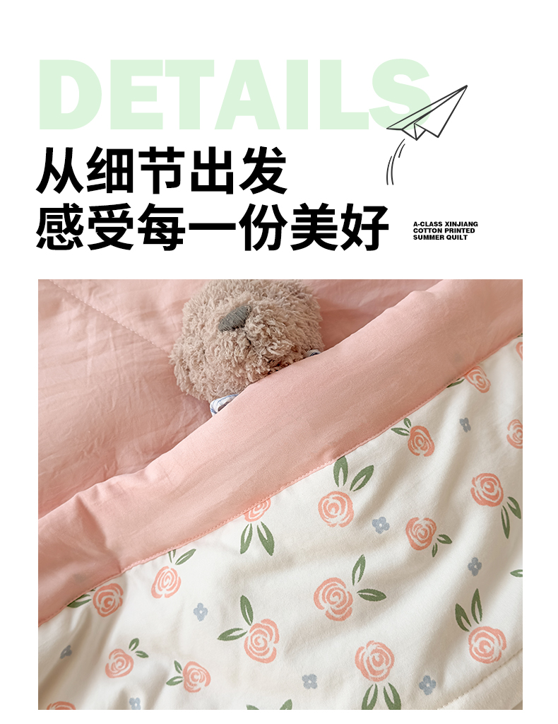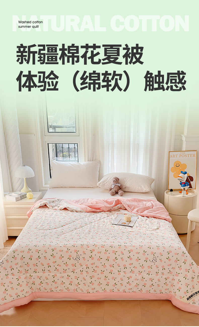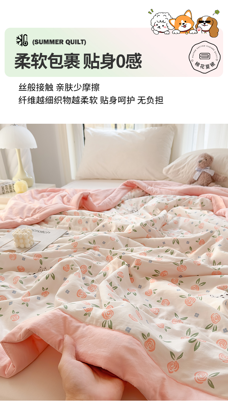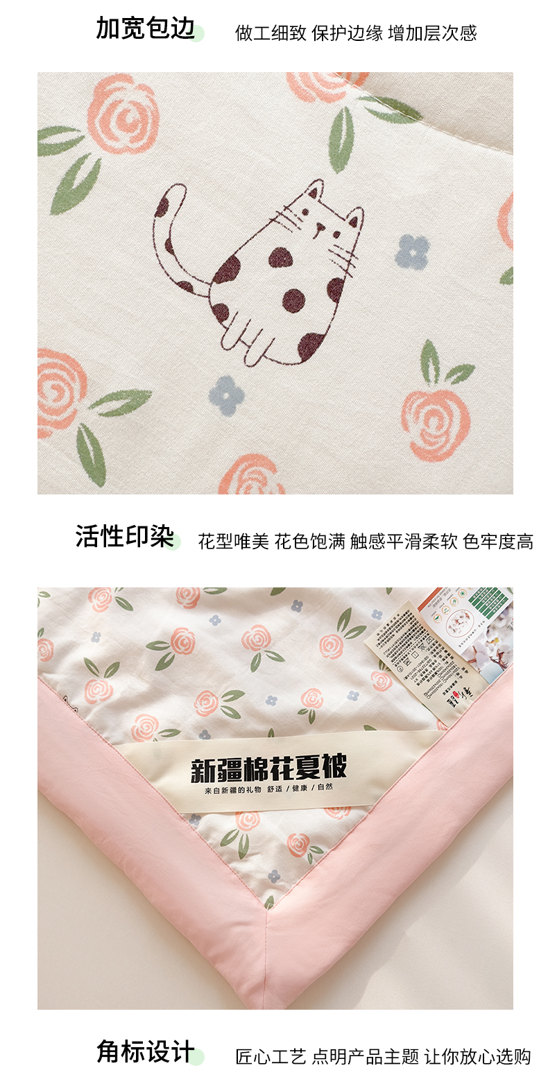 商品名称:2026新款A类新疆棉花夏凉被加宽包边水洗棉卡通印花吸湿透气棉花夏被空调被 凌香 花语