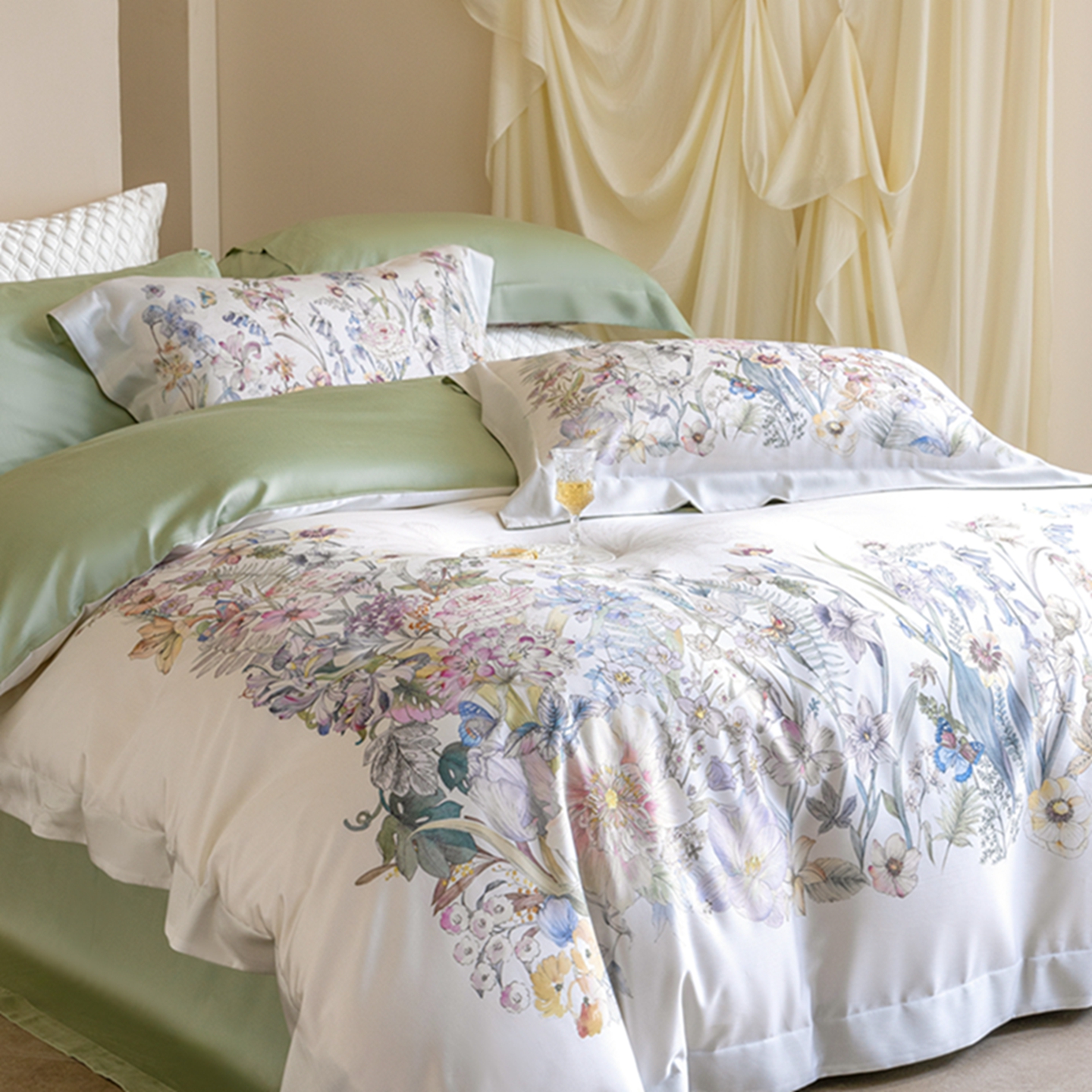 (总)时亿 2023新款金太阳天丝棉磨毛四件套,碧影,德鲁维,繁花 绿,卡里,情调,素音