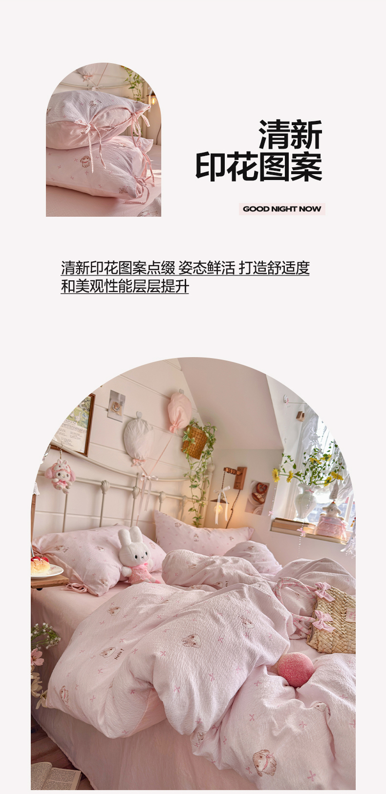 当前位置: 91家纺网 > 商品网购 > 床品套件 > 四件套 > 双层纱四件套 > 优选良品 2026新款小清新直播热卖款云感双层纱木棉四件套系列(小红书热款推荐) 萌萌免