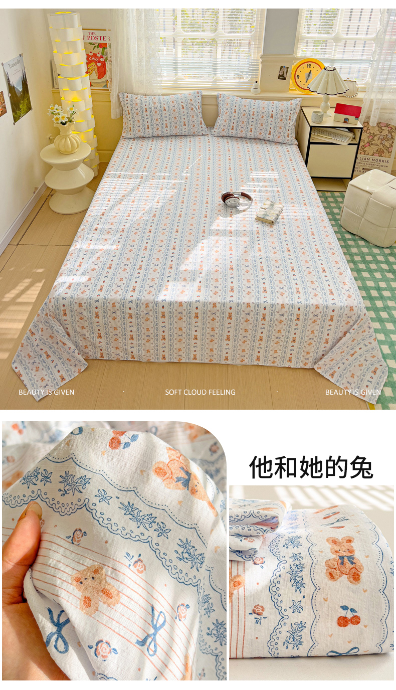 (总)纽缦家纺 2024水洗双层纱床单,半眠日记,南岛小镇,嗨皮狗,夹心果冻,小兔堡,小南瓜,小橘子,小熊猫,小熊院长,小绿鸭,小黑球,心动兔兔,捉迷藏,撞进晚风,日记小姐,旧岛望海,曼塔玫瑰,桃你喜欢,甜茶日记,甜酥少女,童话小熊,素颜捧花,莓天开心,蓝小鸭,蓝海玫瑰,遇见米,遇见紫,香草薄荷