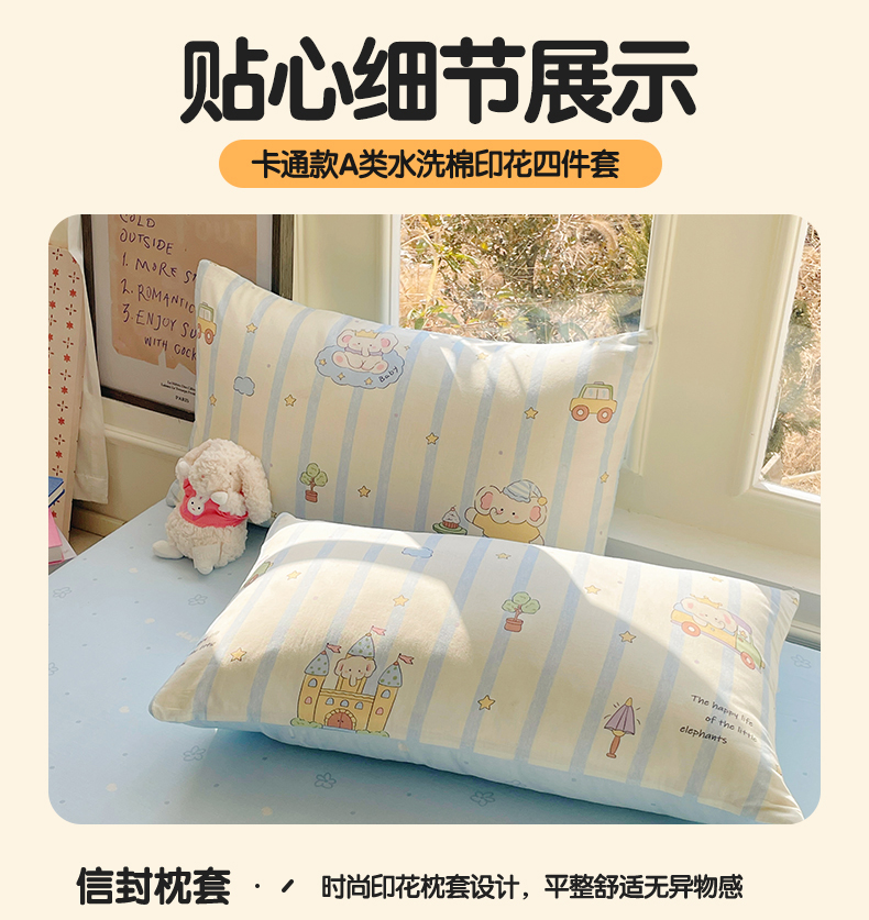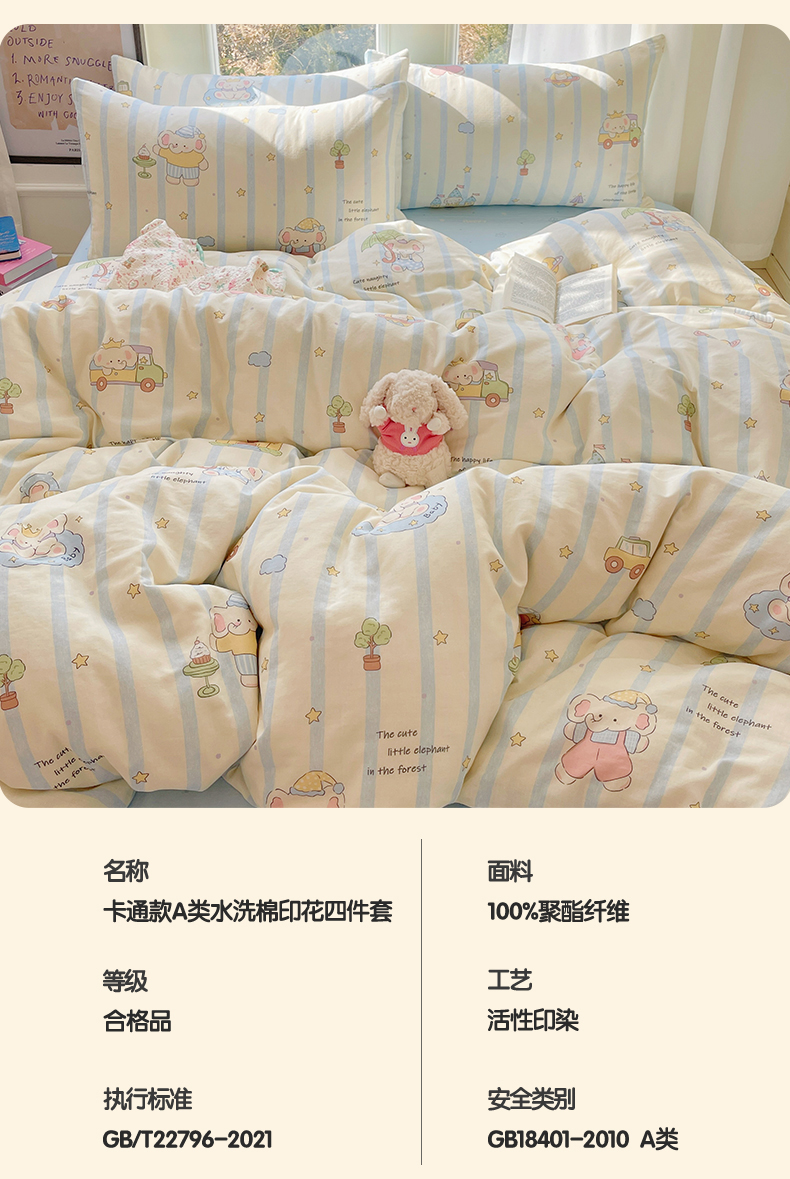 当前位置: 91家纺网 > 商品网购 > 床品套件 > 四件套 > 水洗棉四件套 > 盛秋家纺 2026新款水洗棉印花四件套-卡通系列二 森林小象蓝+花朵蓝