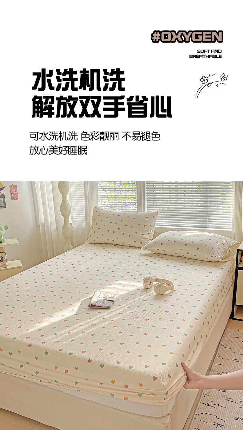 (总)优选 2026新款ins小清新木棉双层纱印花床笠床垫保护罩枕套三件套