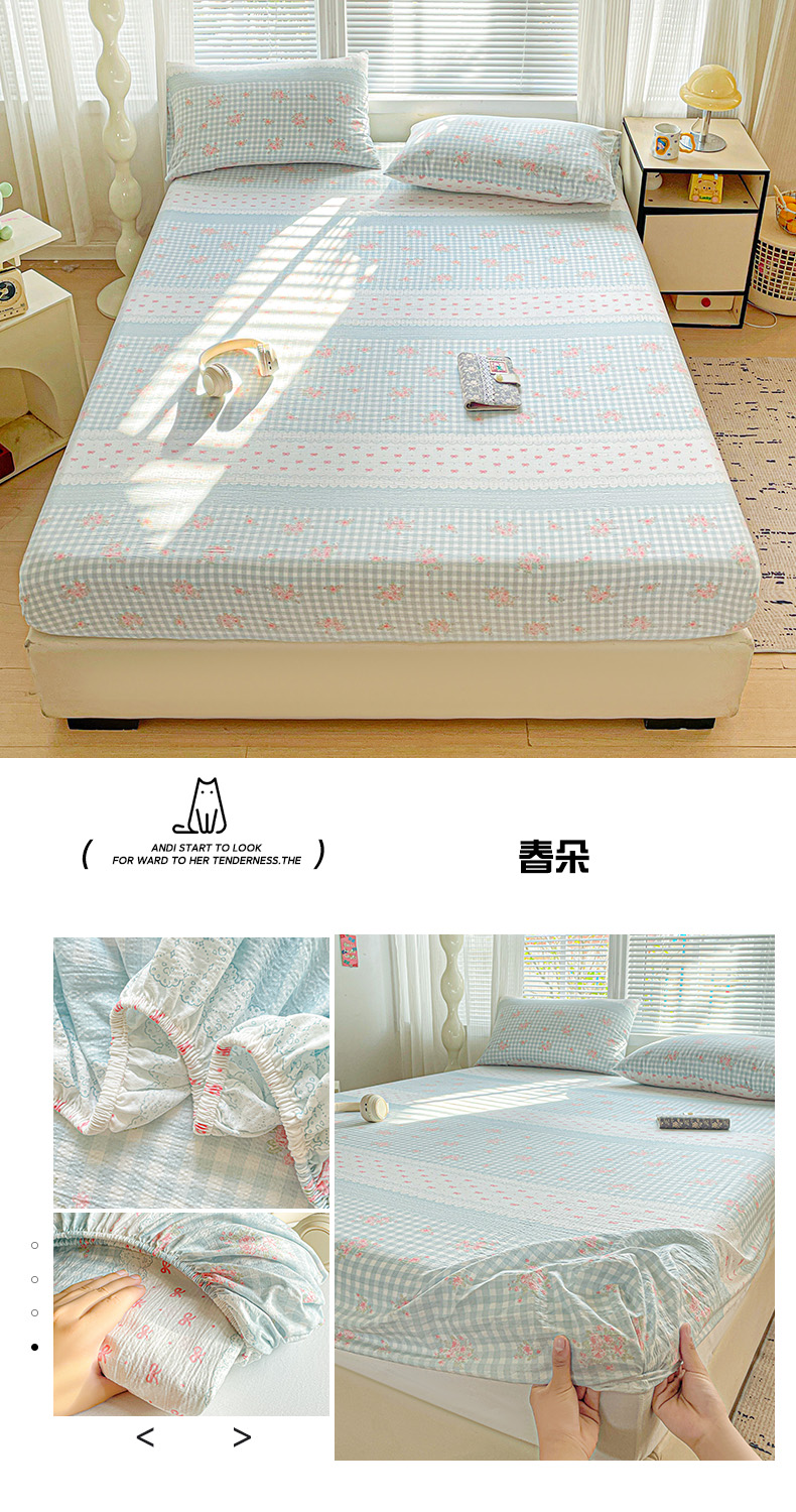 当前位置: 91家纺网 > 商品网购 > 床上用品 > 床笠 > (总)优选 2026新款ins小清新木棉双层纱印花床笠床垫保护罩枕套三件套