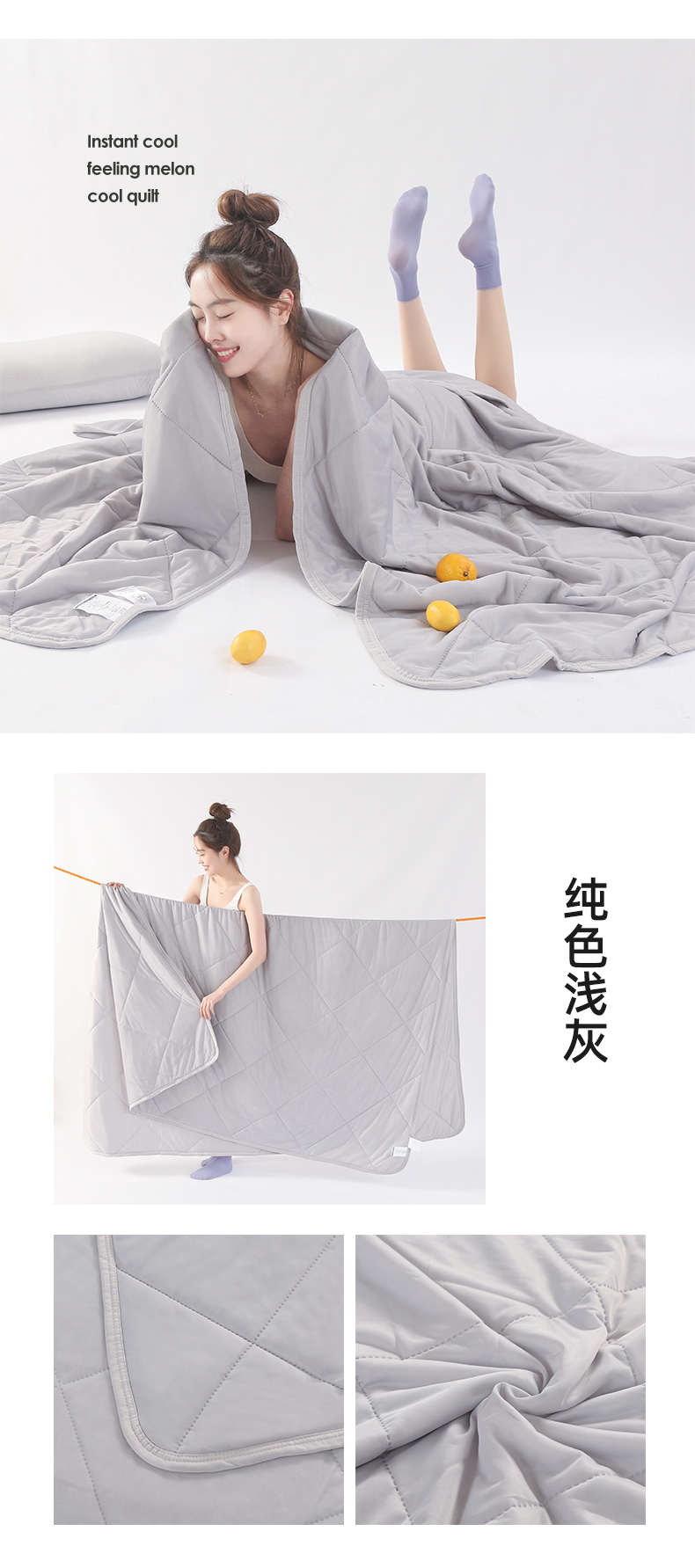 商品名称:薇玛仕 2026新款超声波带氨凉感丝纯色瓜瓜凉感夏被空调被 纯色浅灰
