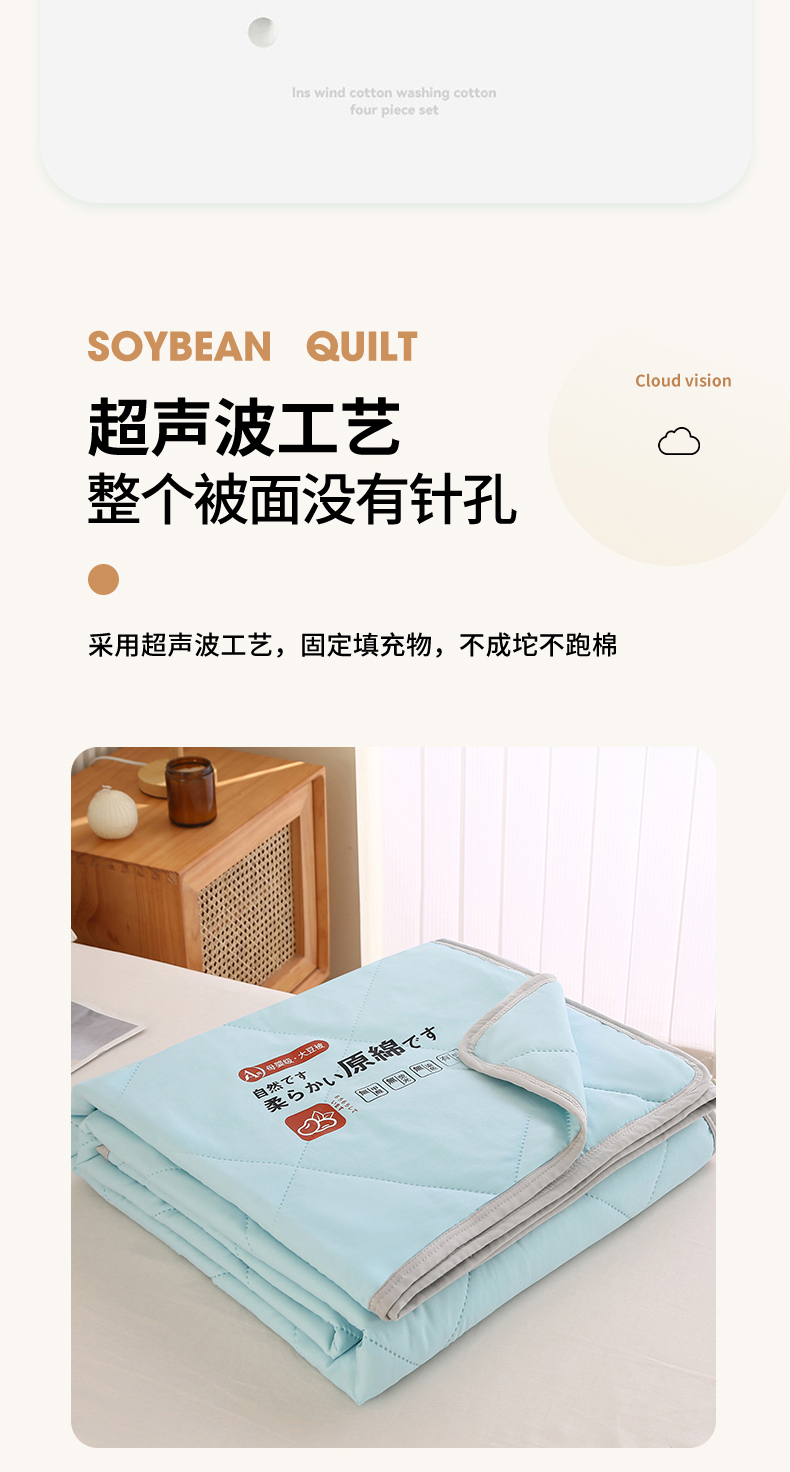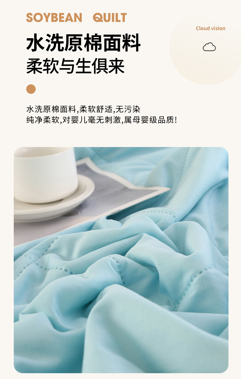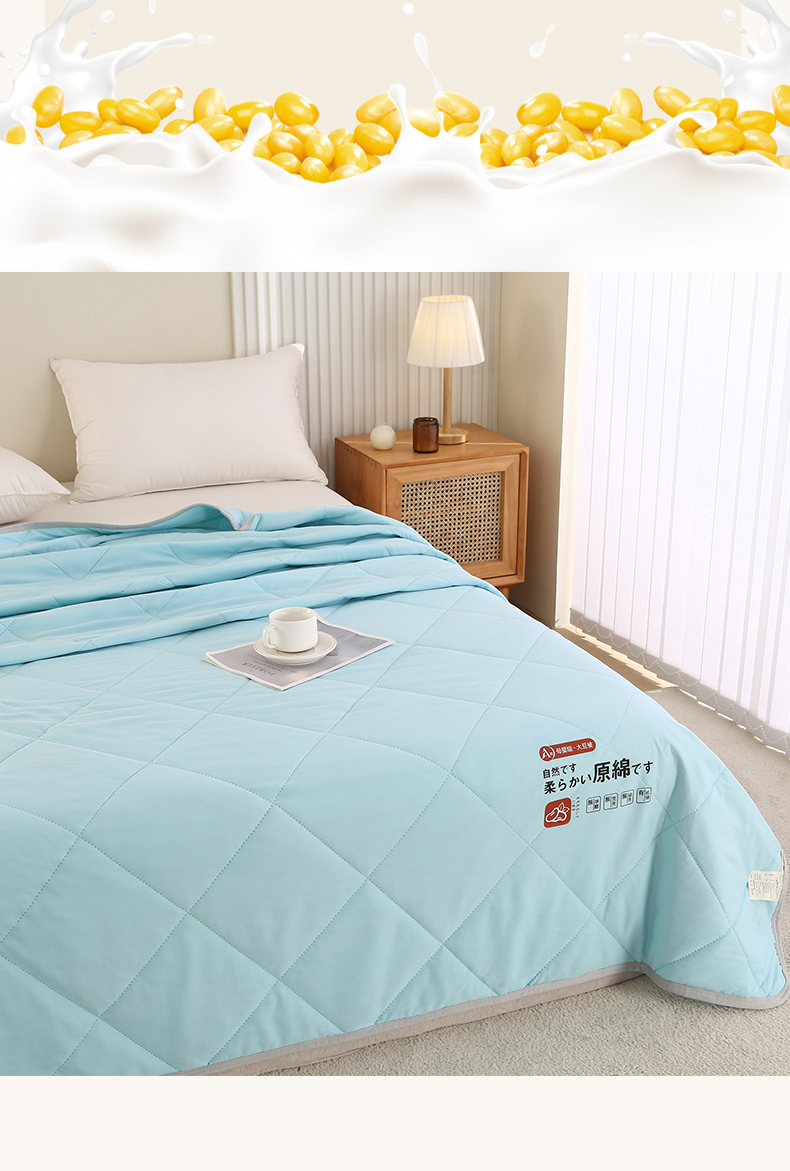 商品名称:薇玛仕 2026新款外贸跨境电商礼品烫画款超声波原棉大豆夏凉被空调被单双人薄被子 超声波--原棉天蓝