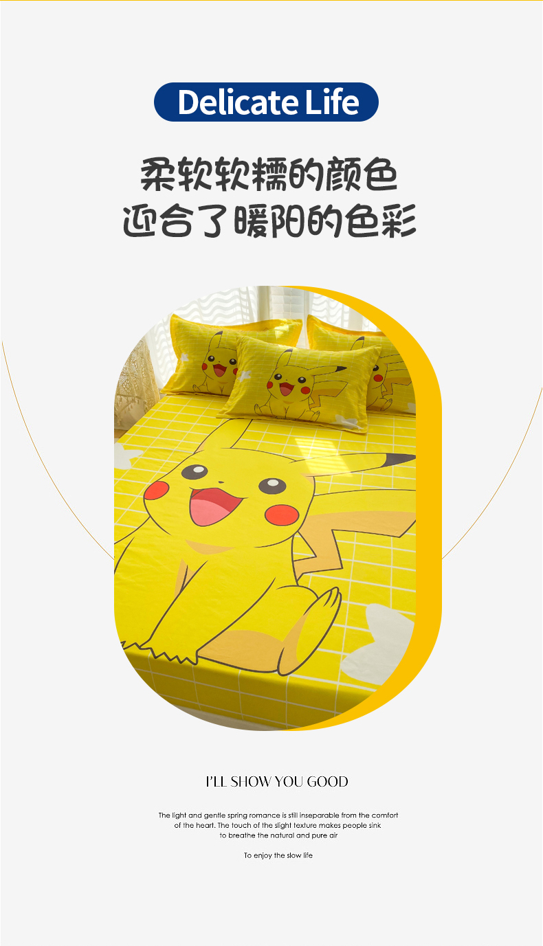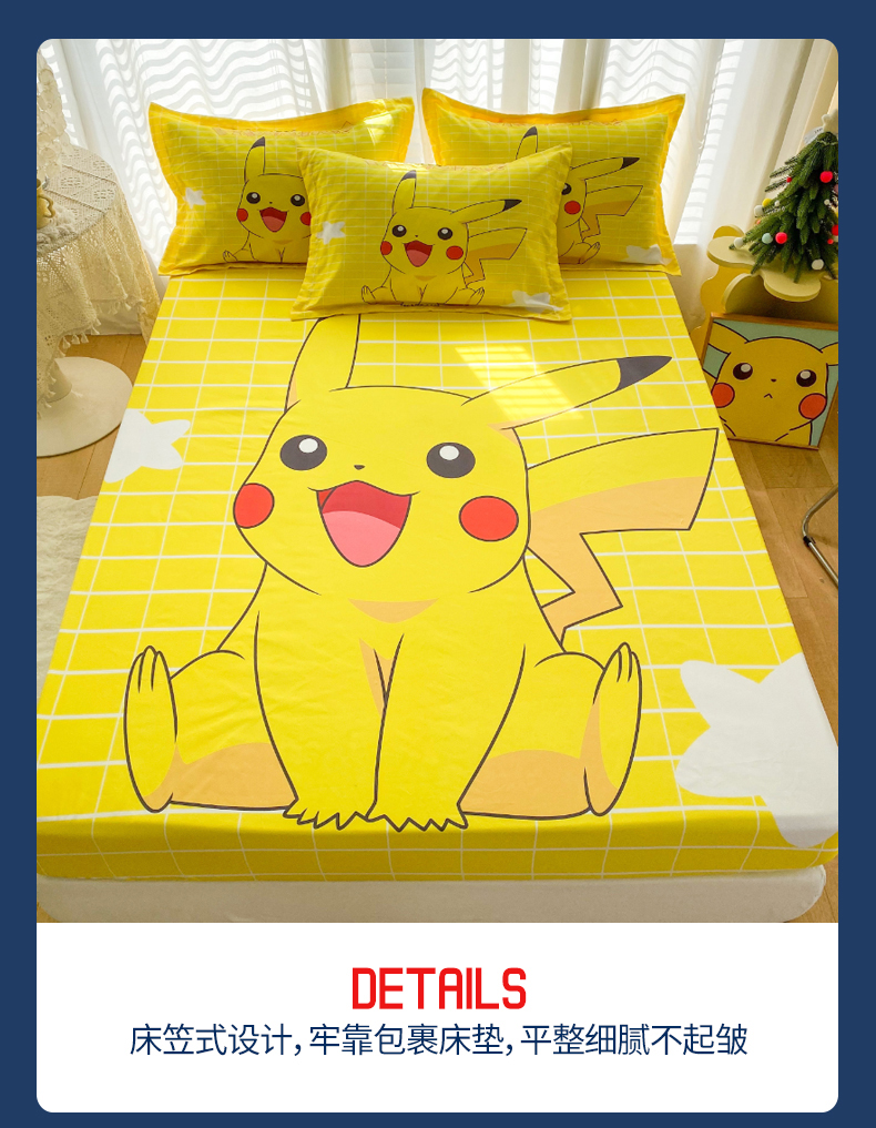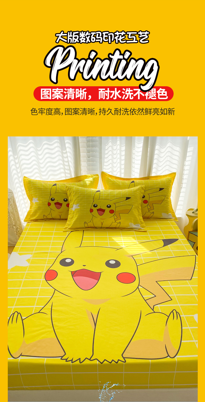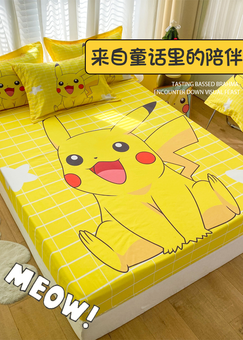 • 91家纺网 家纺一手货源 找家纺 一电 2026新品卡通床单床笠棕垫床套防尘罩席床垫保护套卡通儿童上下床床单床笠-第三批 网红皮卡丘