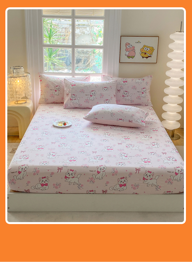 一电 2026新款跨境电商外贸四季卡通床笠单件床罩床垫套防滑套宿舍儿童床单定制-第八批 小咪