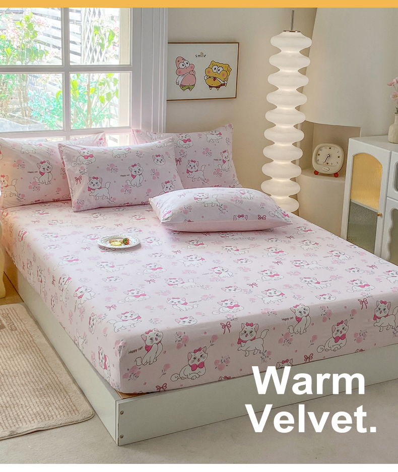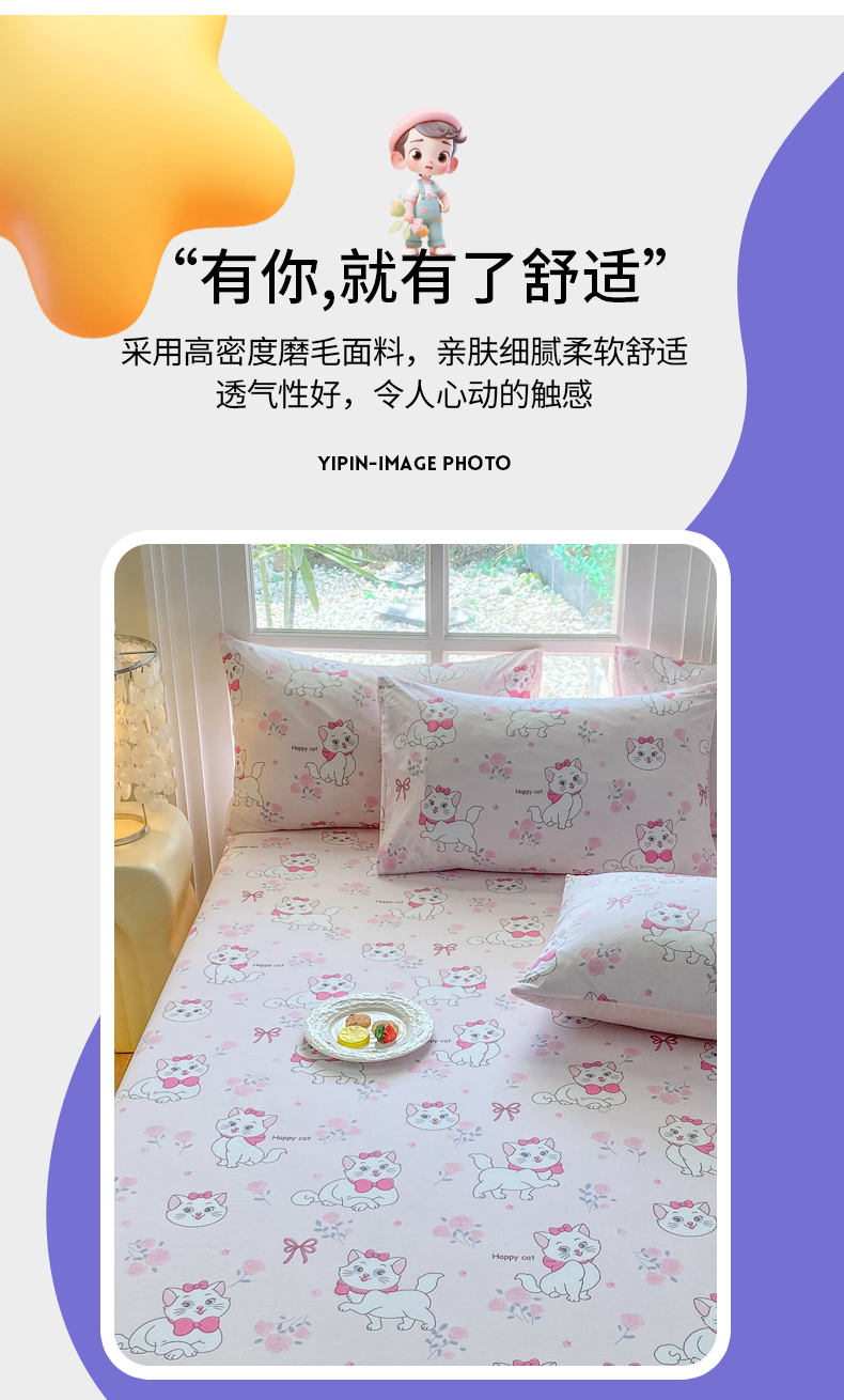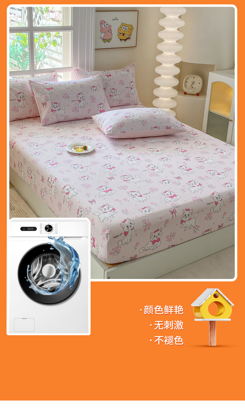 • 91家纺网 家纺一手货源 找家纺 一电 2026新款跨境电商外贸四季卡通床笠单件床罩床垫套防滑套宿舍儿童床单定制-第八批 小咪