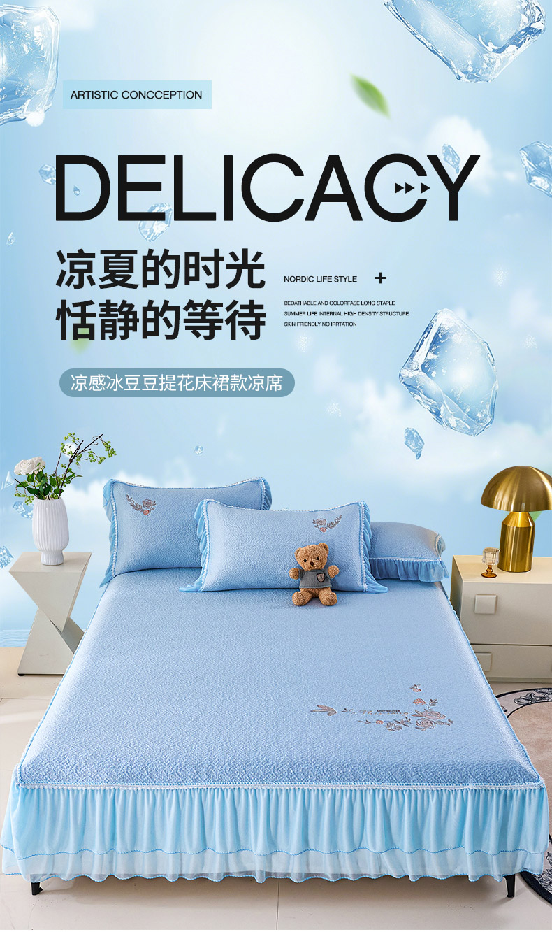 (总)青雅席业 2026年新款A类提花工艺(提花双面)凉感豆豆席床裙款,床裙款-雾里看花-粉,床裙款-雾里看花-灰,床裙款-雾里看花-香槟,床裙款-雾里看花-蓝,床裙款-雾里看花-绿