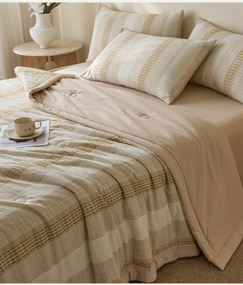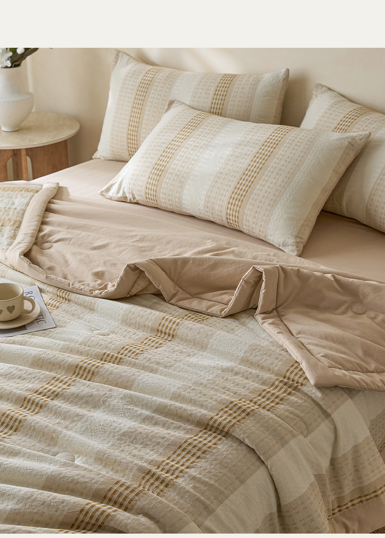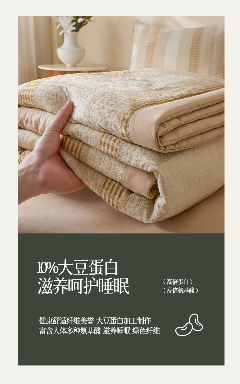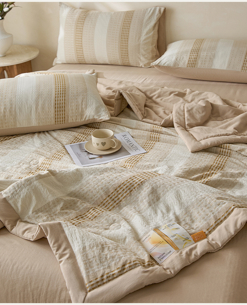 • 91家纺网 家纺一手货源 找家纺 一加一 2026新款凉感提花大豆夏被夏凉被空调被四件套-简约生活 简约生活-咖