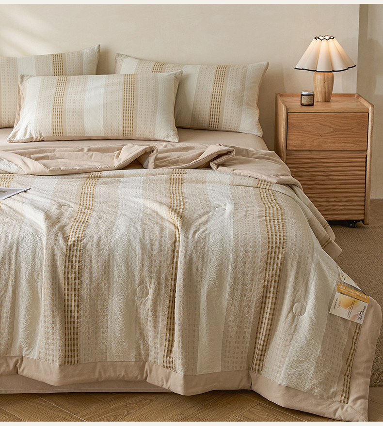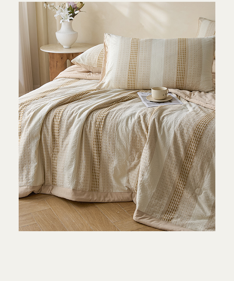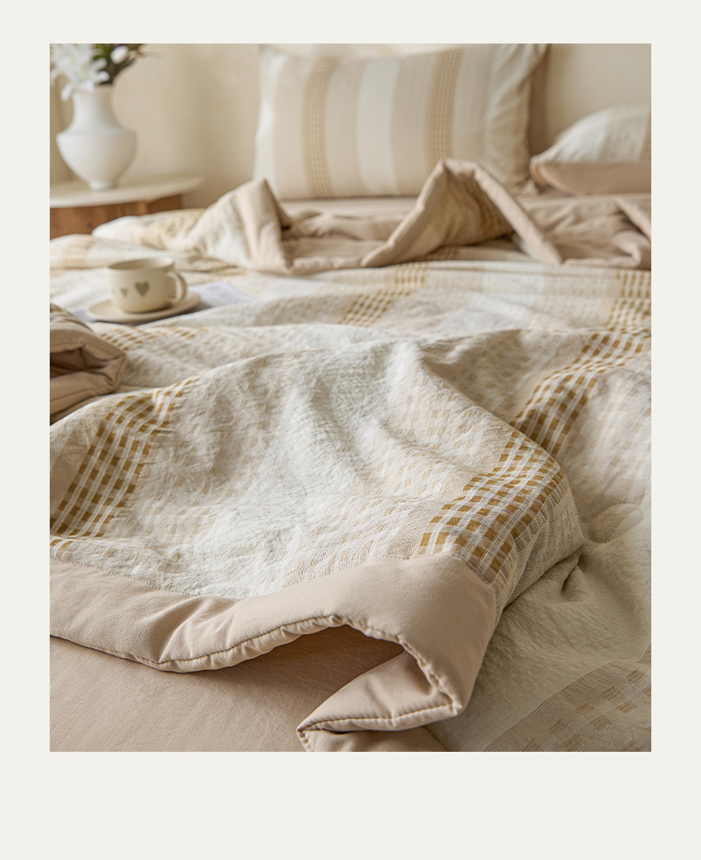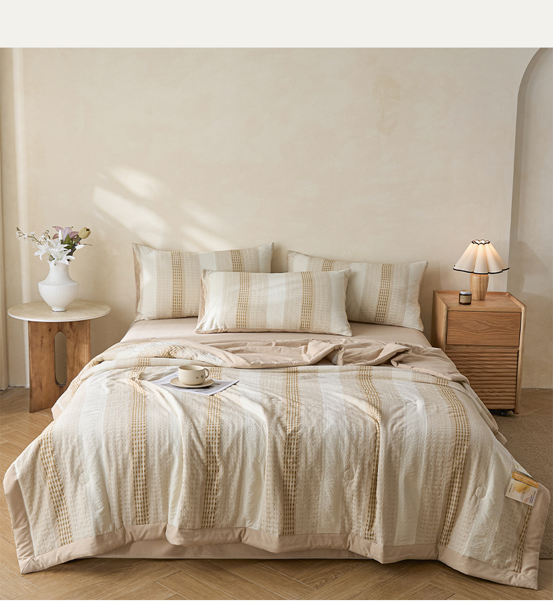 • 91家纺网 家纺一手货源 找家纺 一加一 2026新款凉感提花大豆夏被夏凉被空调被四件套-简约生活 简约生活-咖