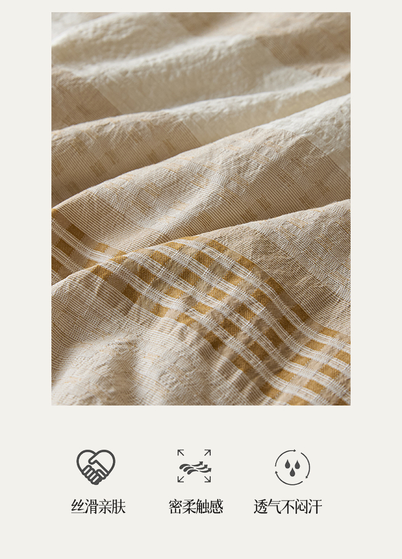 (总)一加一 2026新款全棉无印超柔水洗色织凉感夏被四件套-日式云柔,冬至白,秋分白,秋分咖,小满灰,小满棕