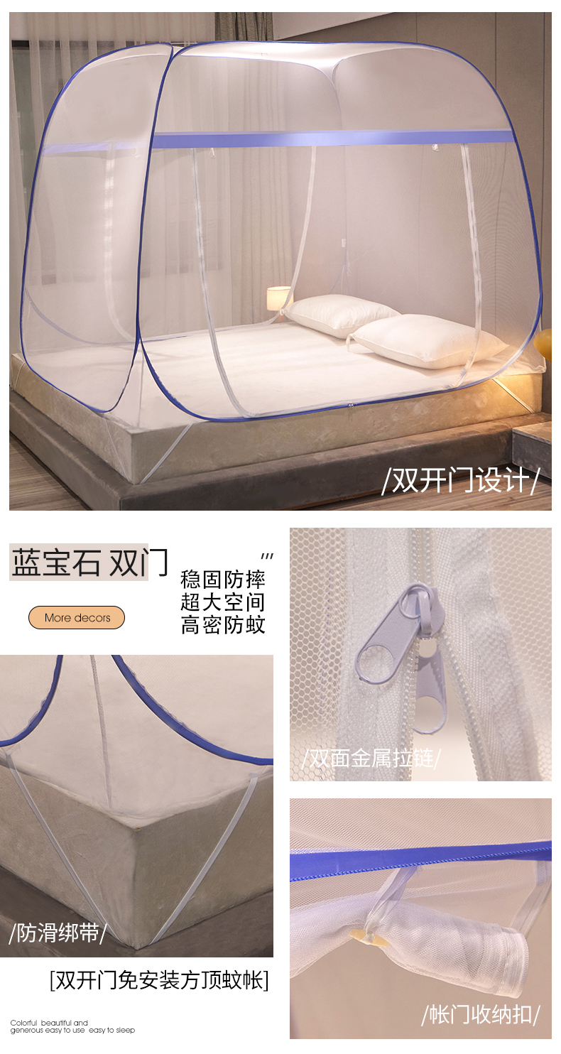 当前位置: 91家纺网 > 商品网购 > 床上用品 > 蚊帐 > 坐床式蚊帐 > 豪梦园蚊帐工厂店 2026新款免安装促量款加密方顶蚊帐 防尘顶-清新蓝