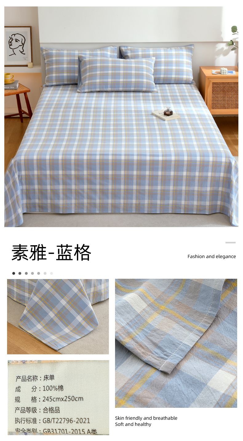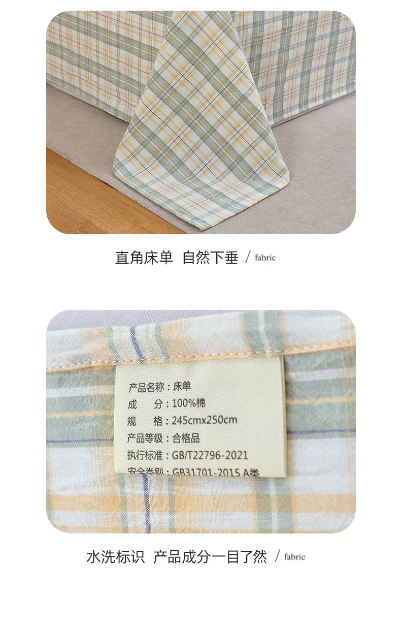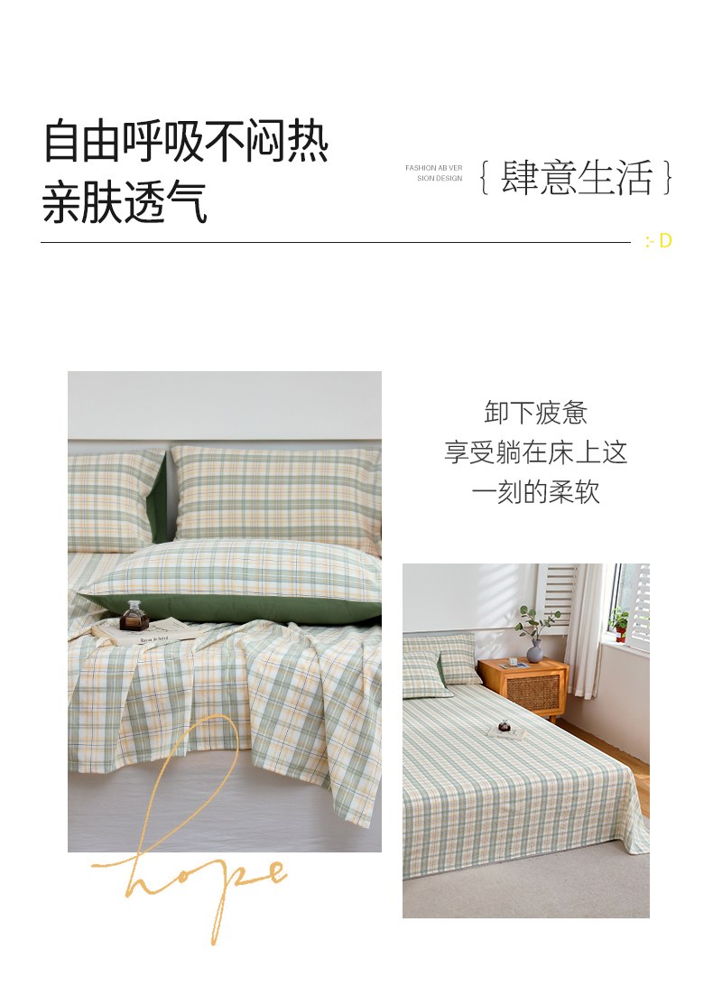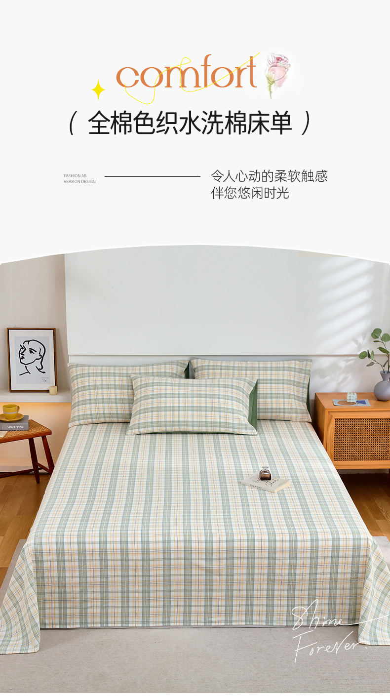 春皖家纺 2026新款色织AB版水洗棉三件套四件套单品系列(单床单-A版风格一) 翠竹-果条