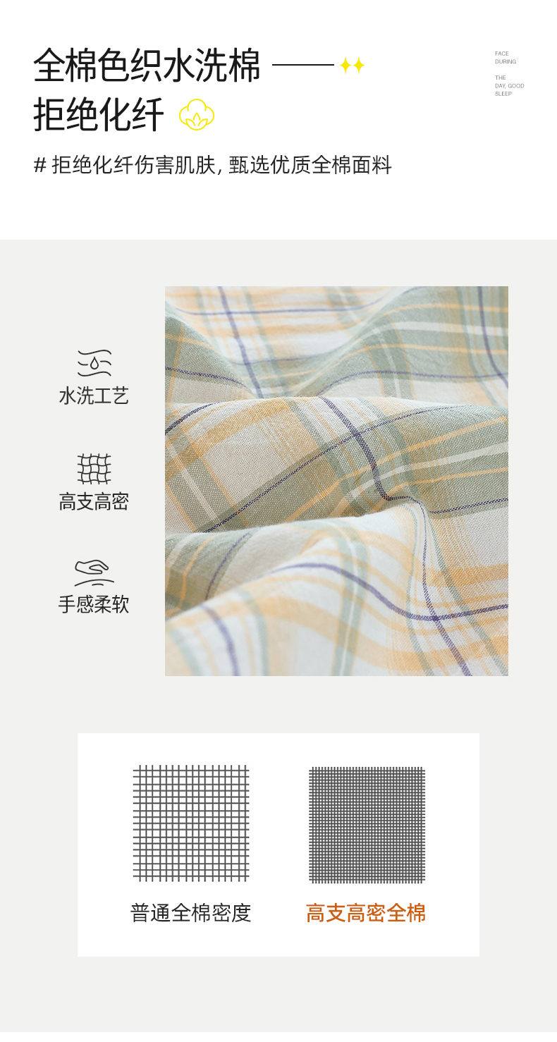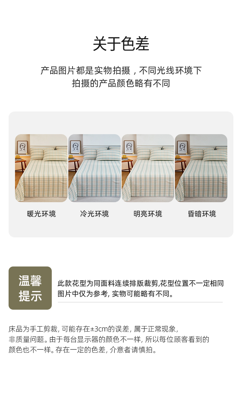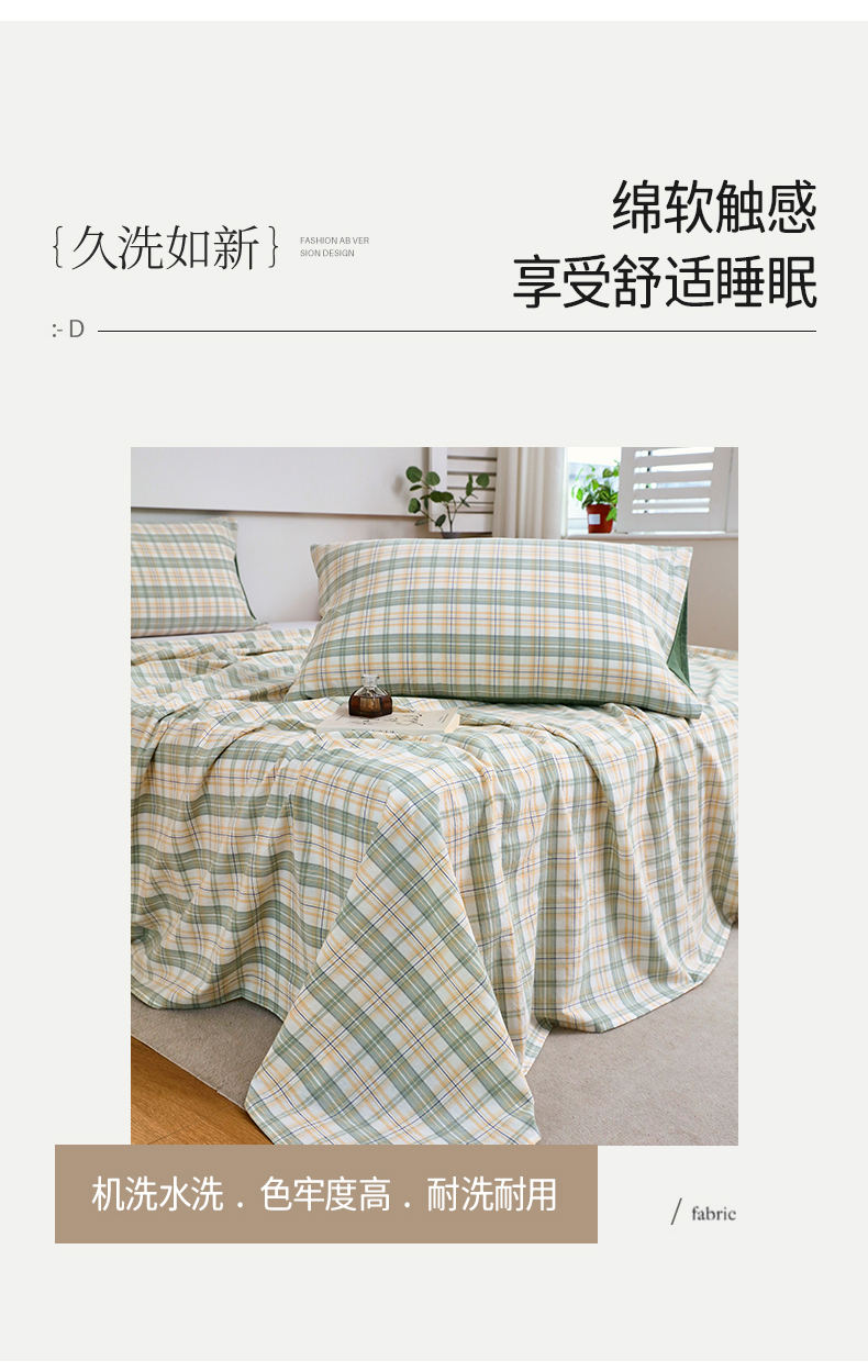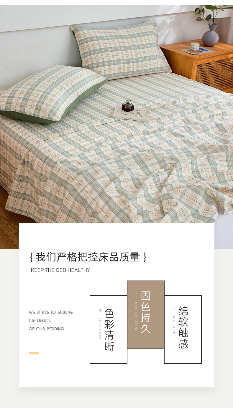 商品名称:春皖家纺 2026新款色织AB版水洗棉三件套四件套单品系列(单床单-A版风格一) 翠竹-果条