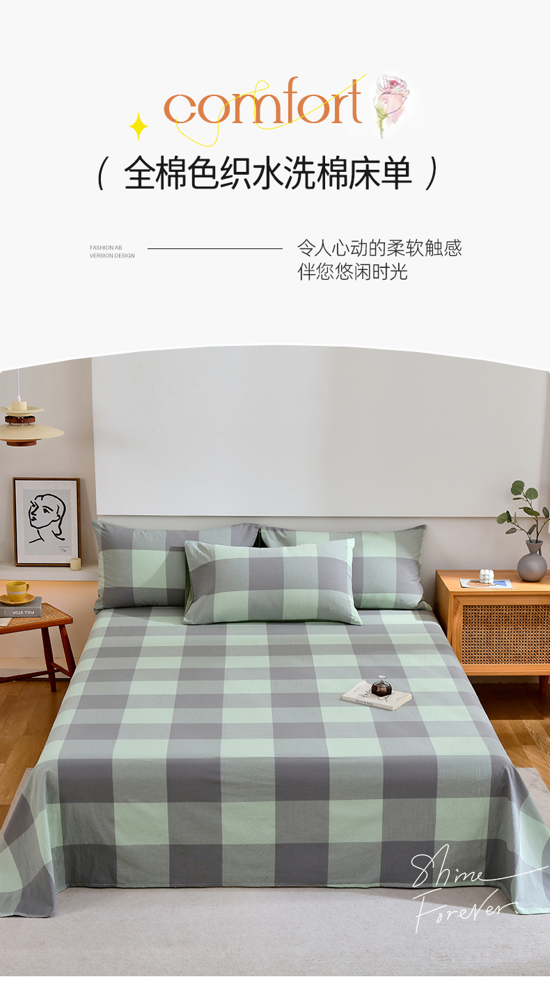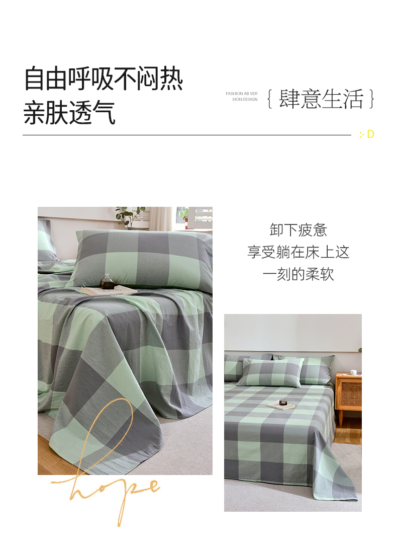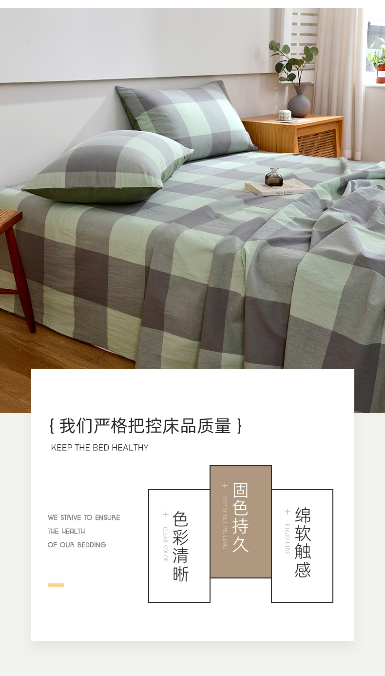 商品名称:春皖家纺 2026新款色织AB版水洗棉三件套四件套单品系列(单床单-A版风格一) 素雅-清格